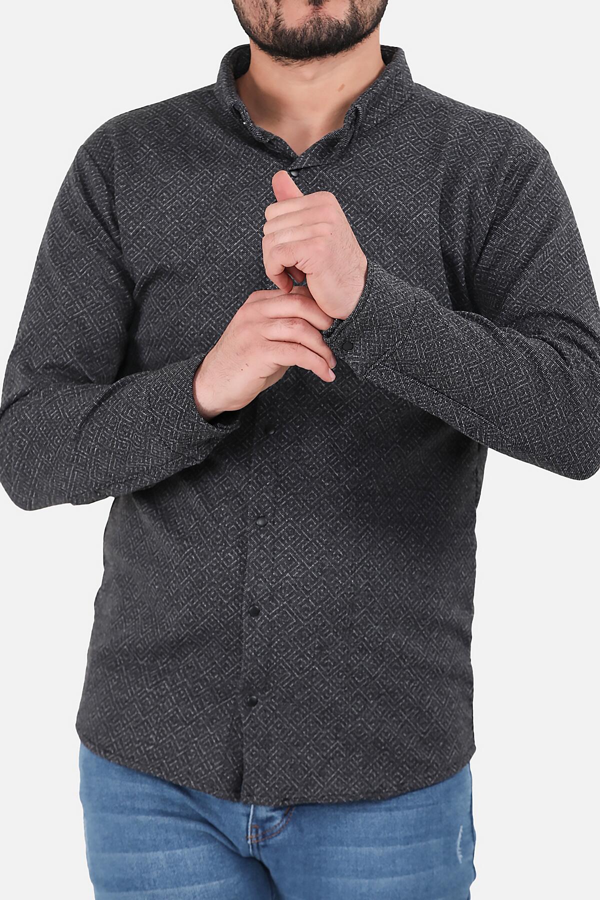 Erkek Desenli Uzun Kollu Gömlek Antrasit