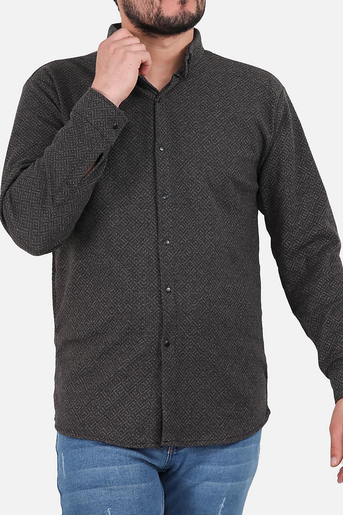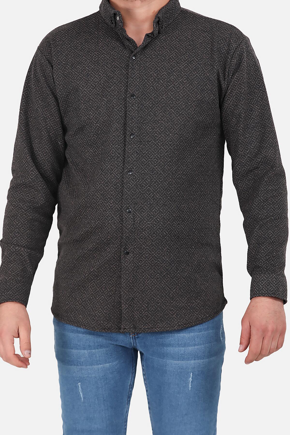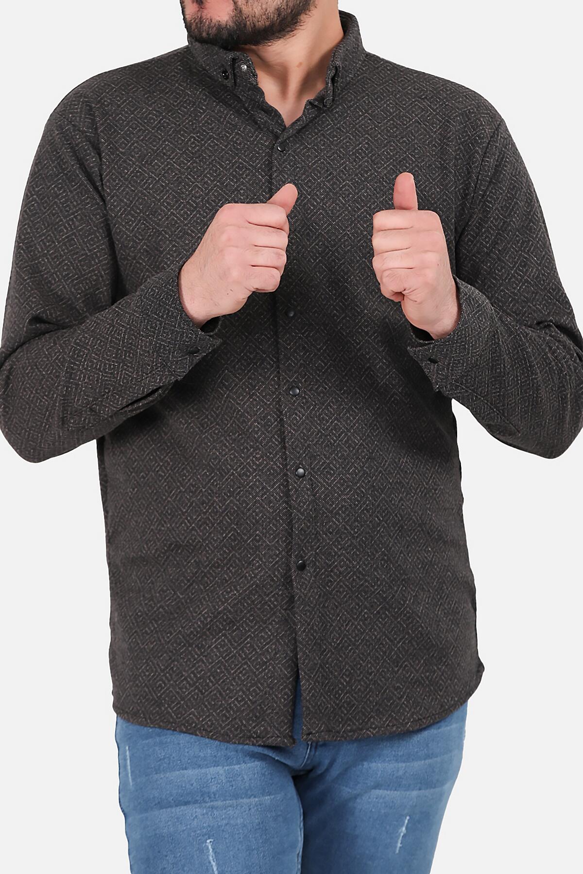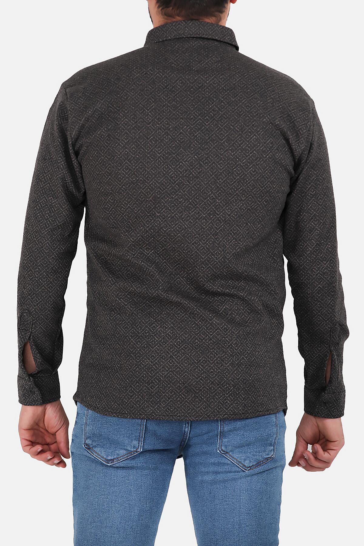 Erkek Desenli Uzun Kollu Gömlek Kahverengi