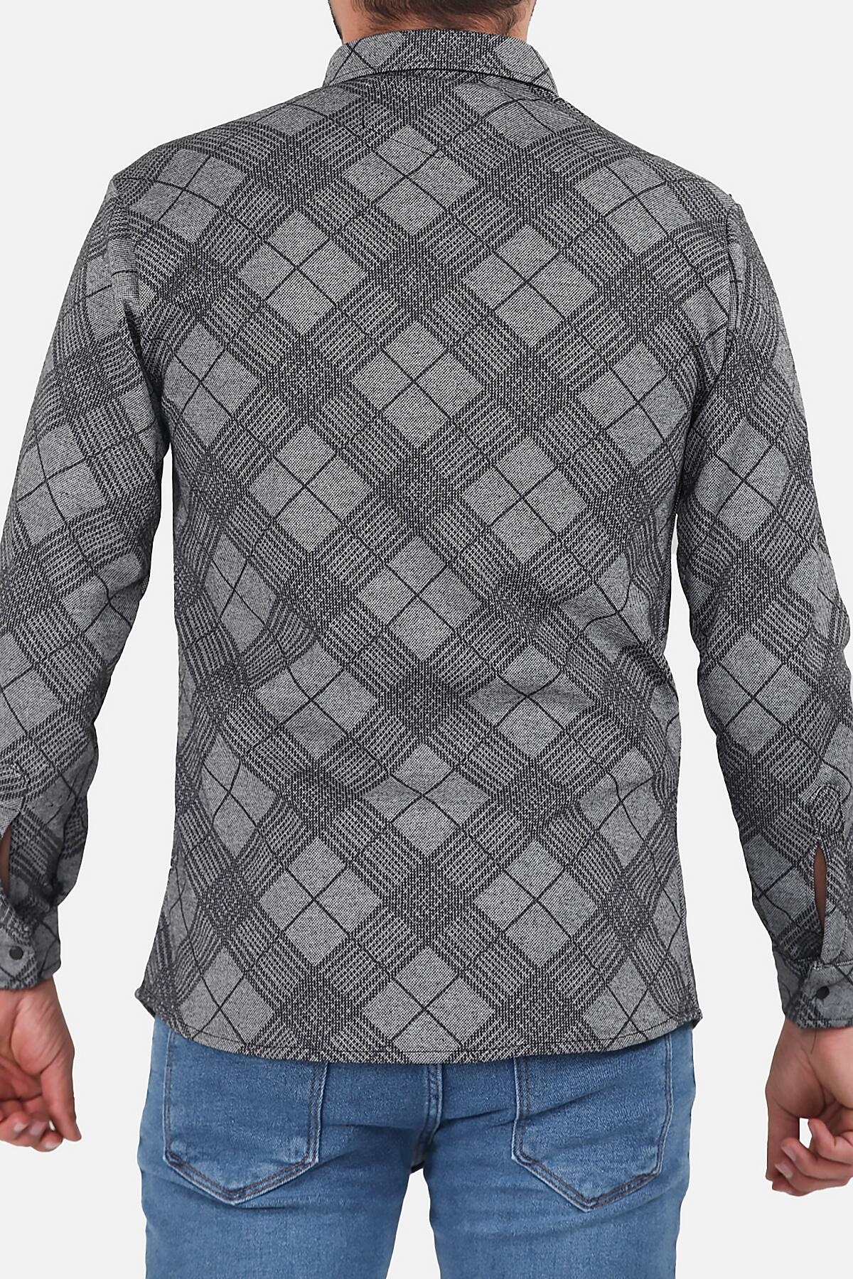 Erkek Desenli Uzun Kollu Gömlek Koyu Gri