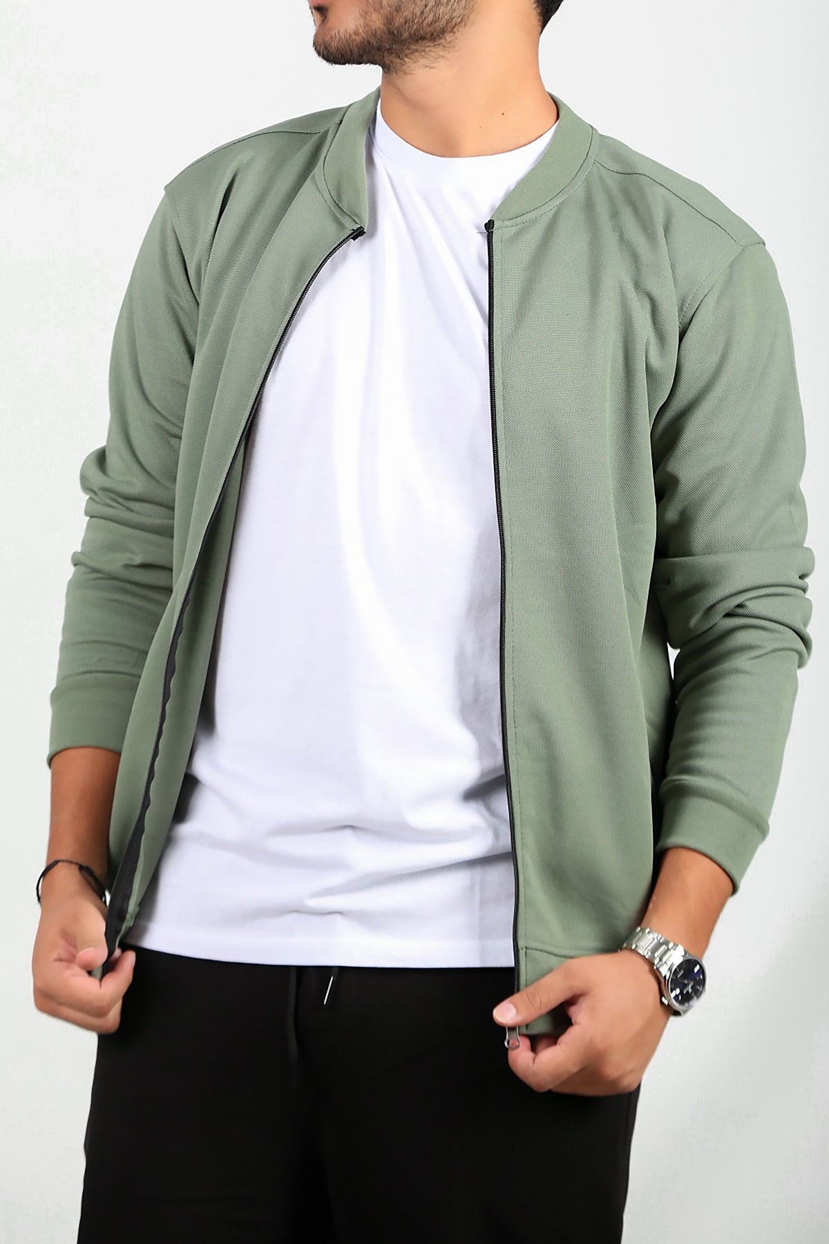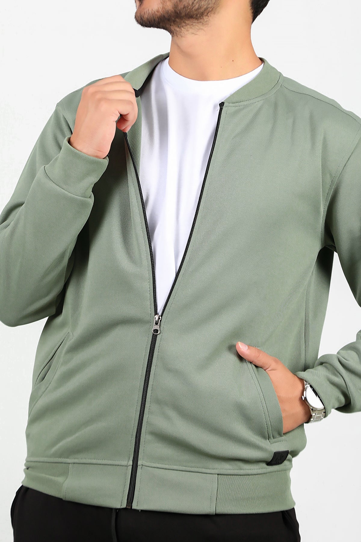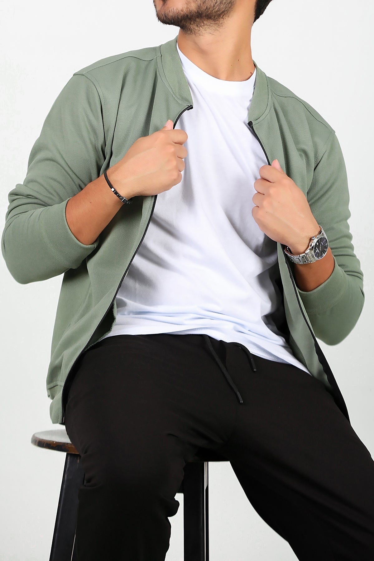 Erkek Fermuarlı Kolej Ceket Haki
