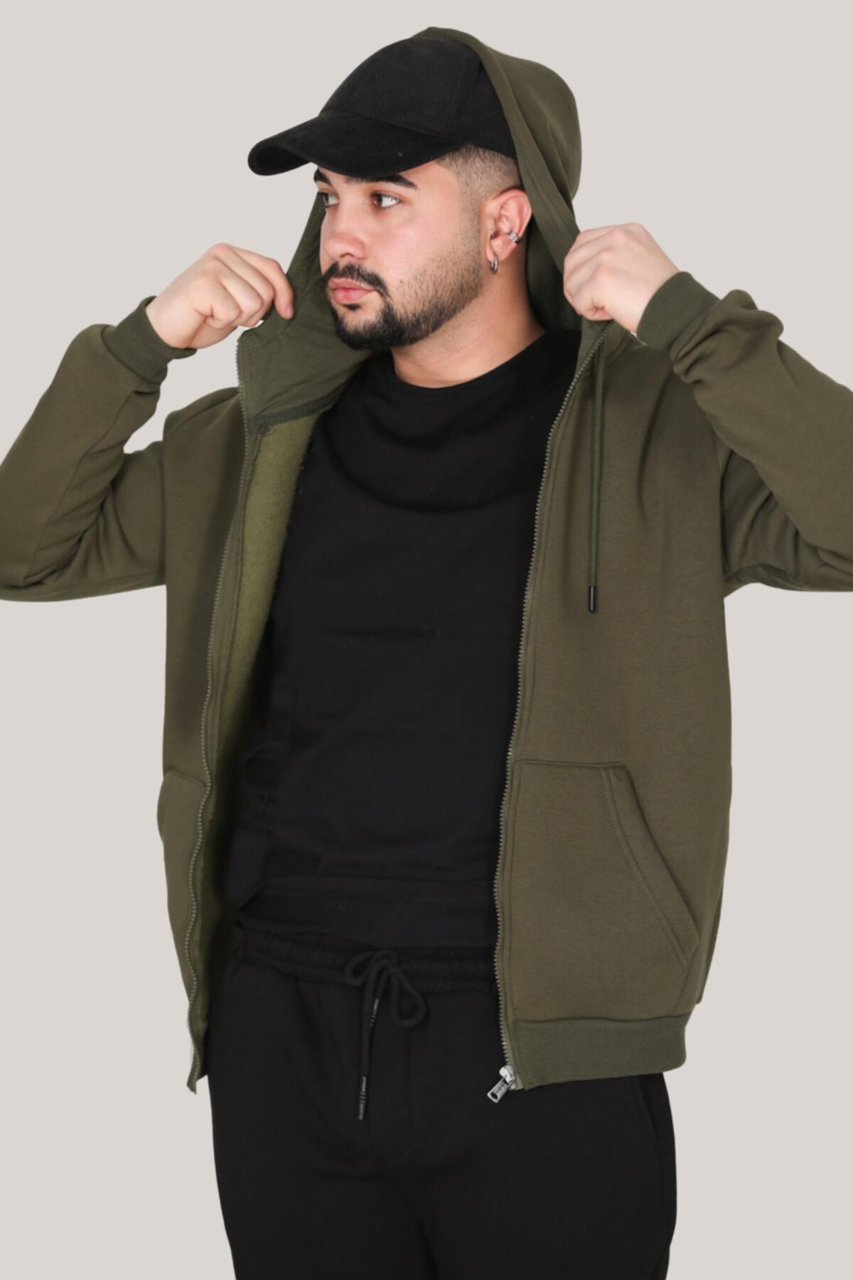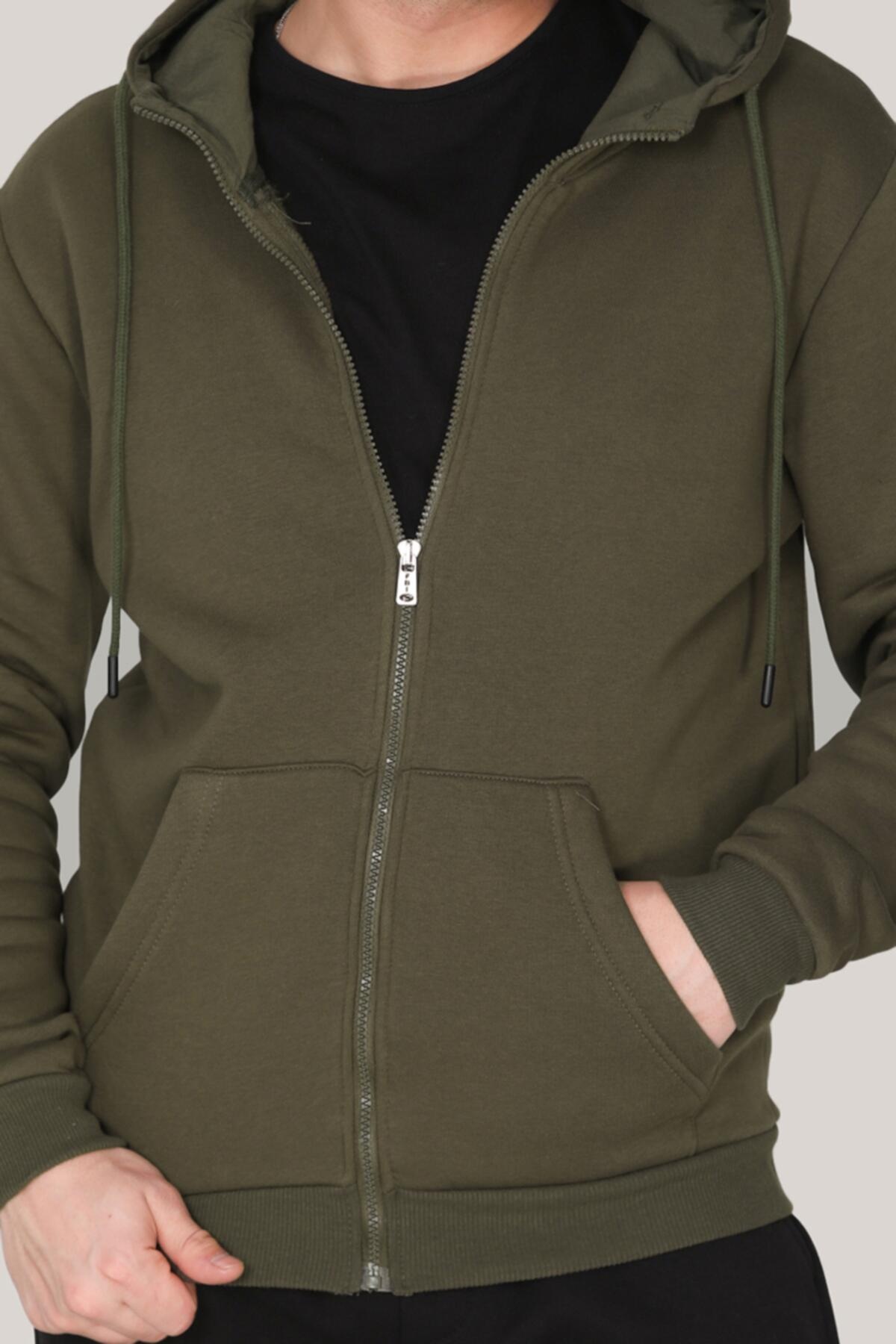 Erkek Fermuarlı Sweat Haki