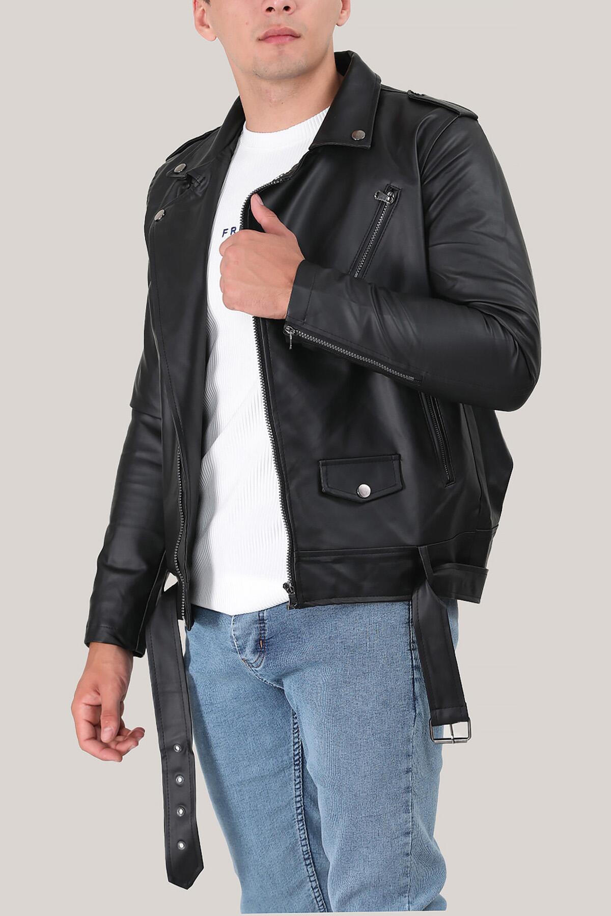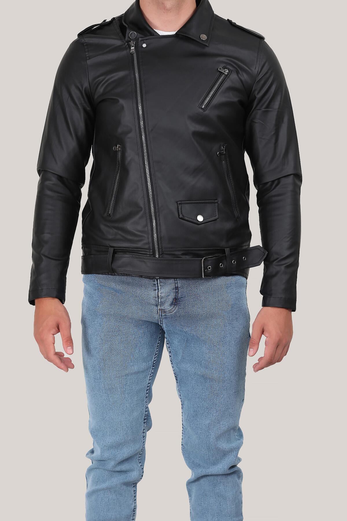 Erkek Büyük Beden Fermuarlı Deri Mont