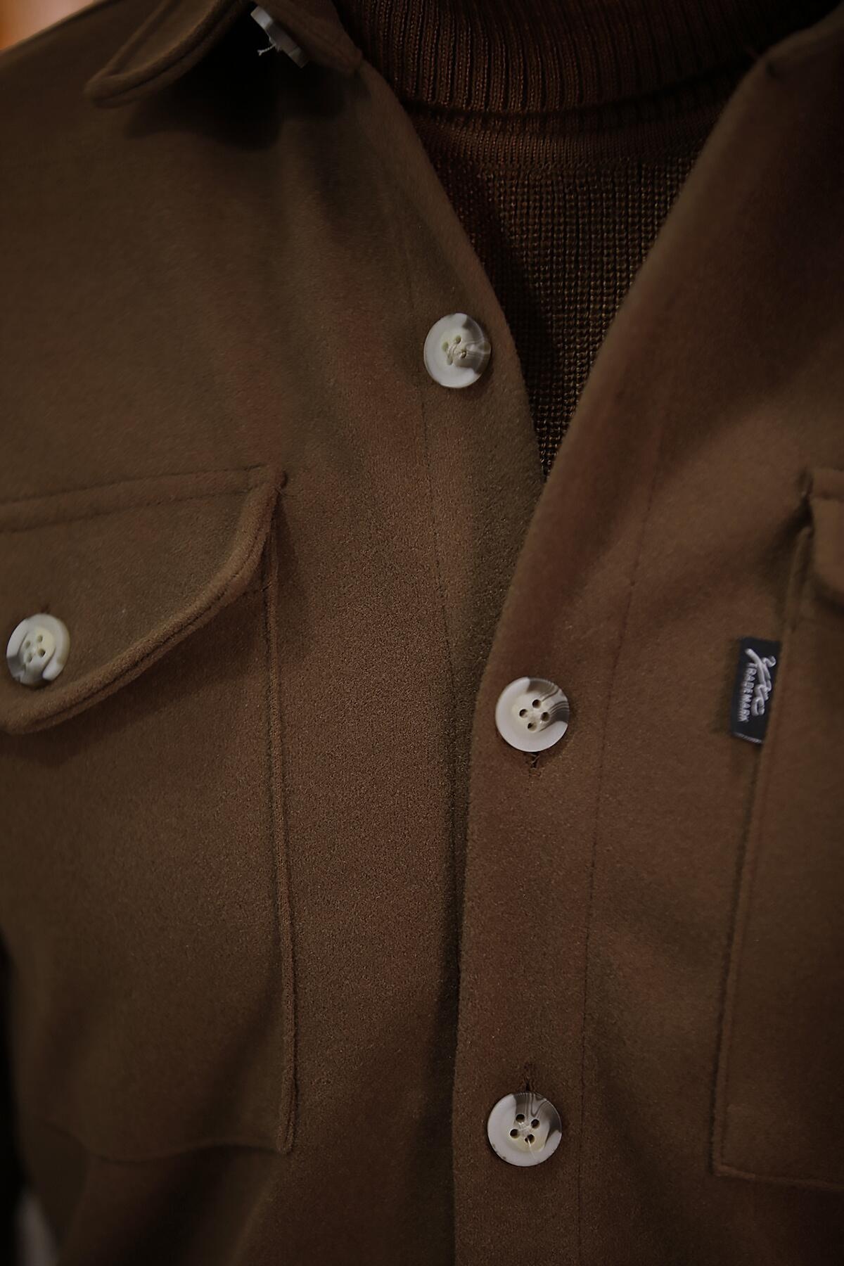 Erkek İki Cepli Düğmeli Kaşe Gömlek Kahverengi