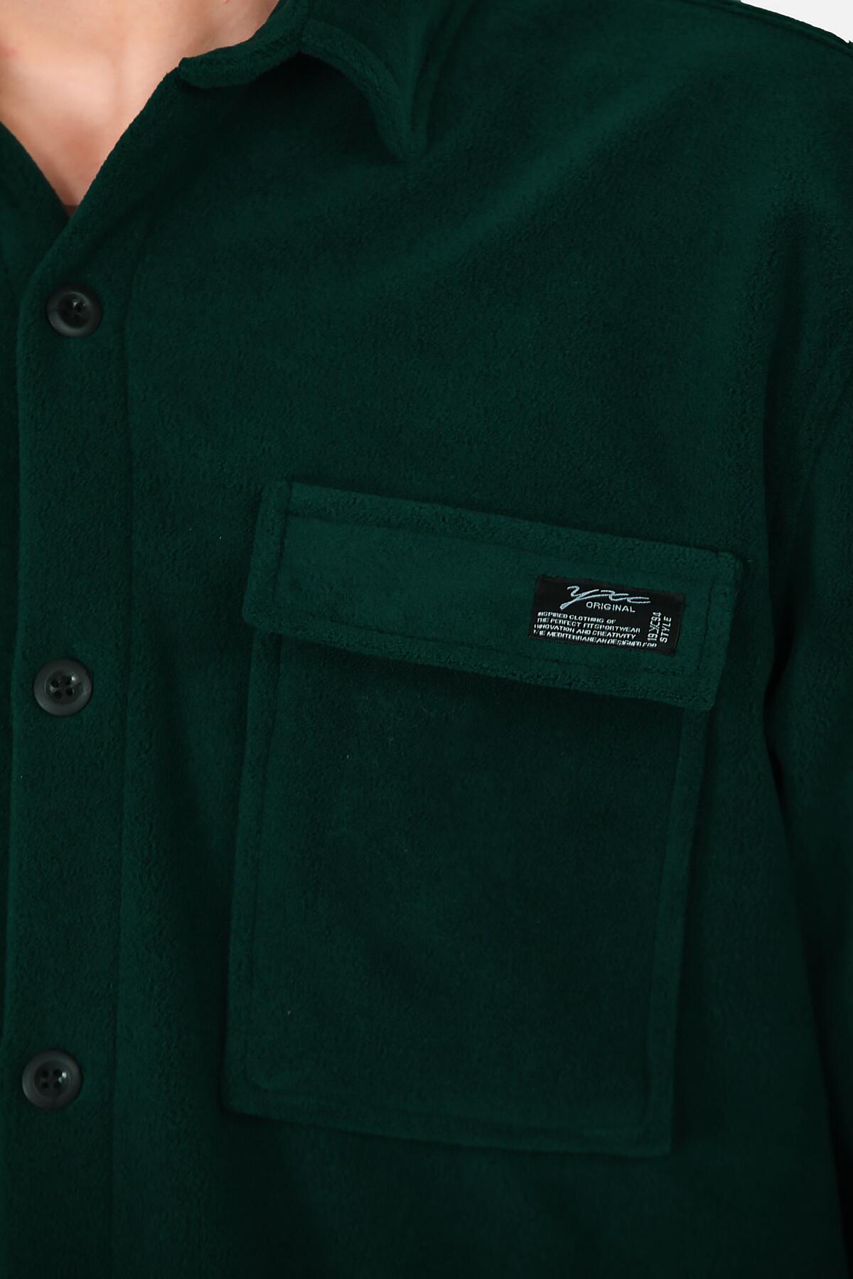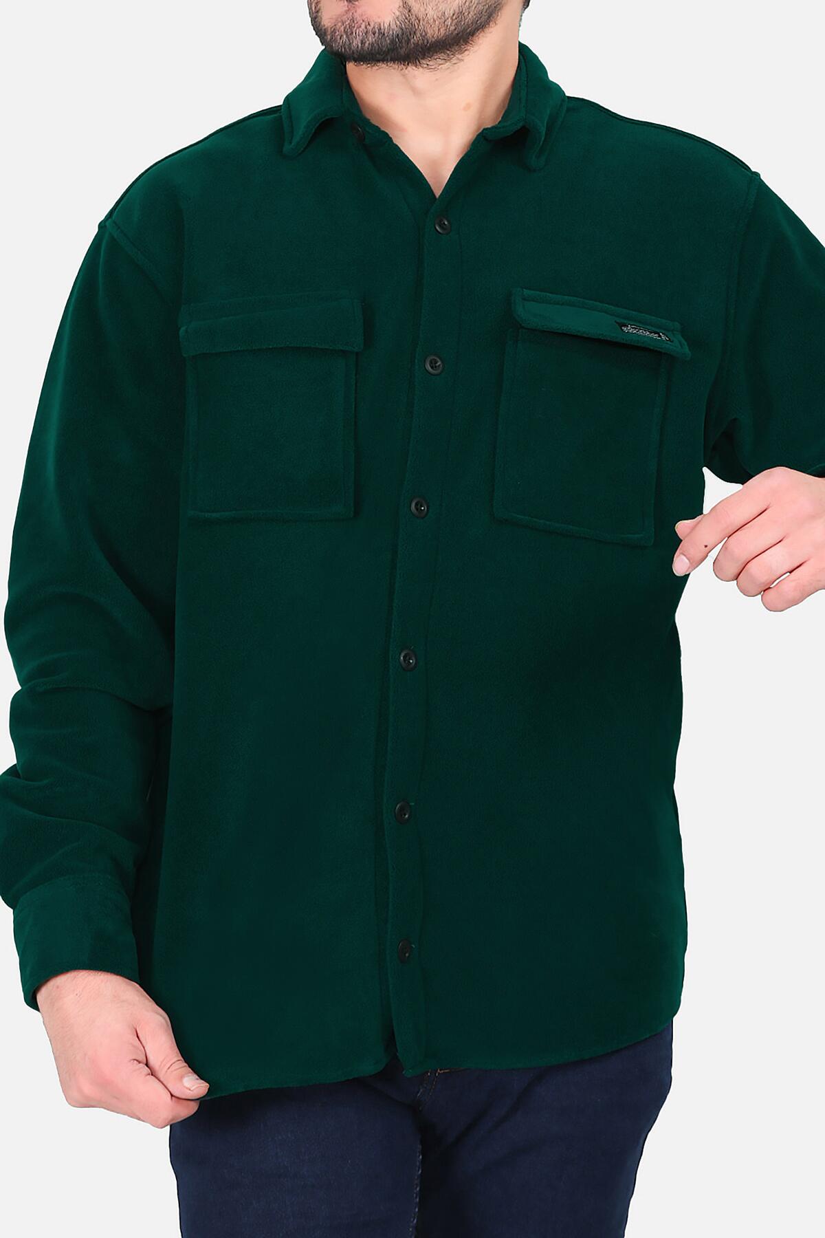 Erkek İki Cepli Polar Gömlek Zümrüt
