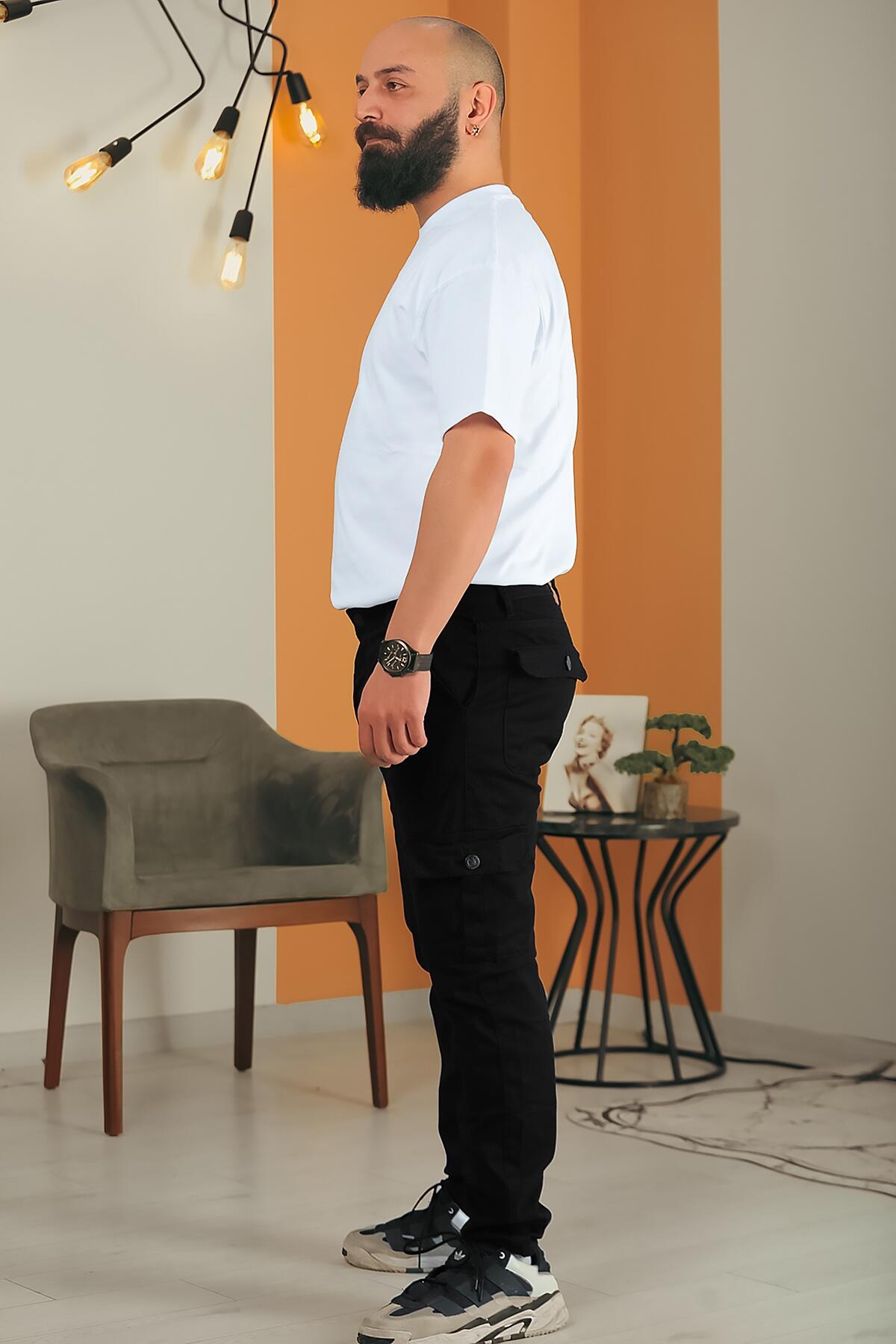 Erkek Kargo Cepli Boru Paça Pantolon Siyah
