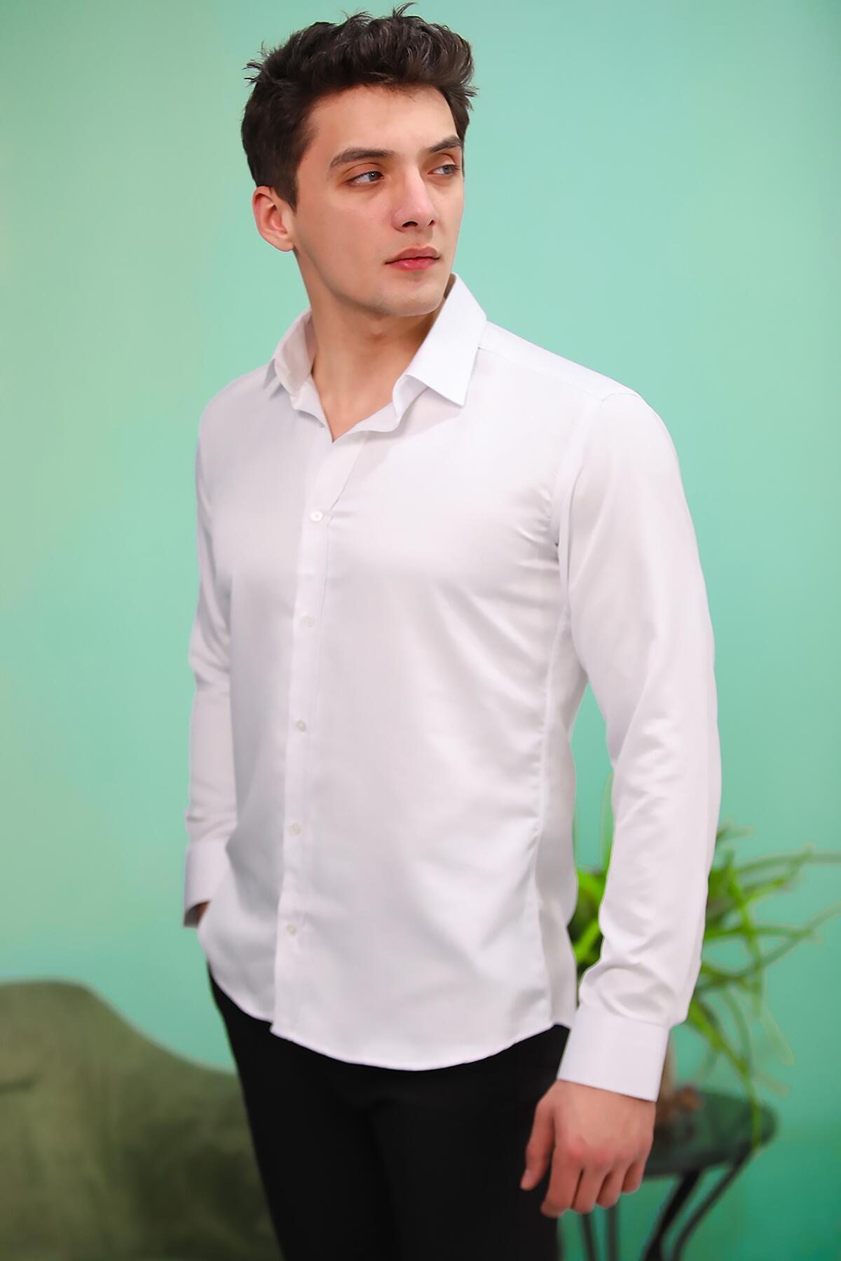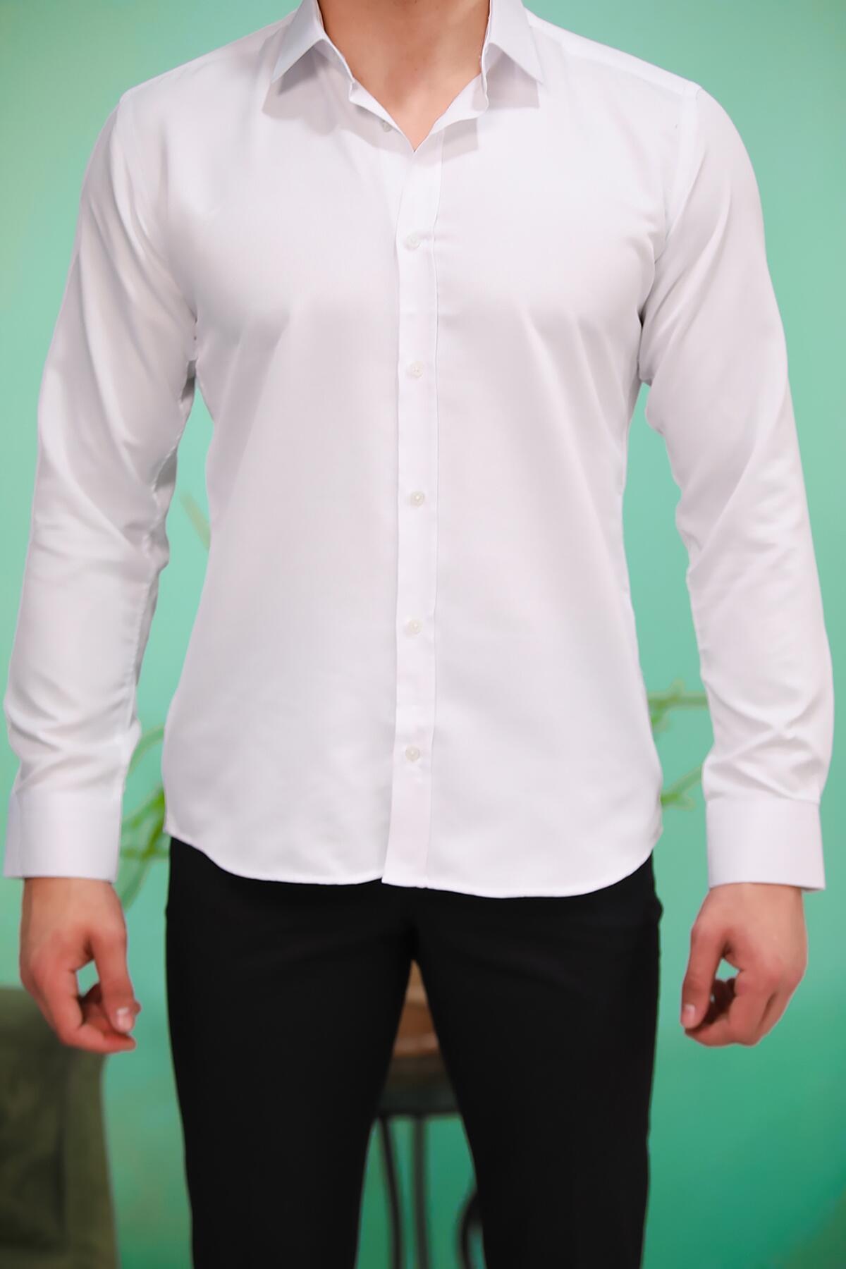 Erkek Mikro Armürlü Erkek Gömlek Beyaz