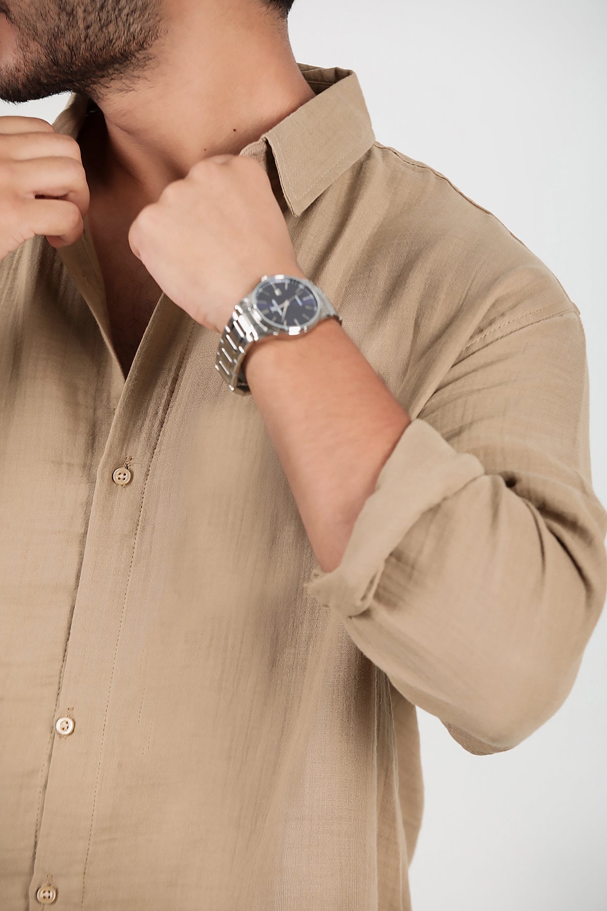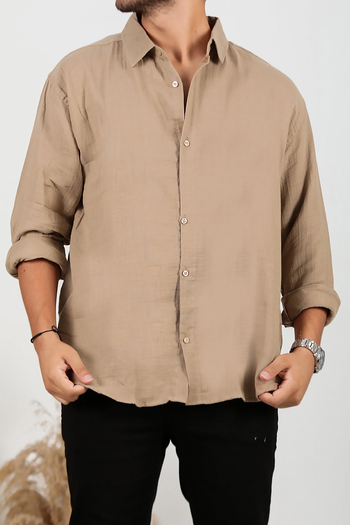 Erkek Oversize Uzun Kol Gömlek Bej