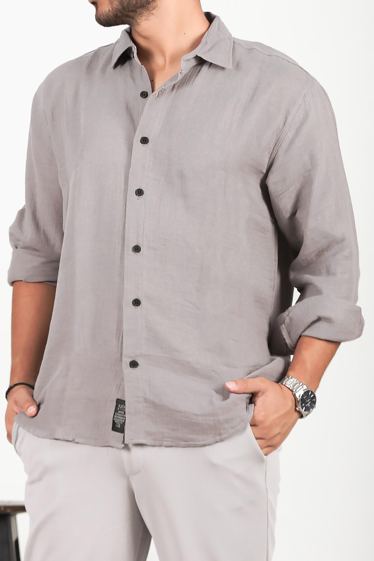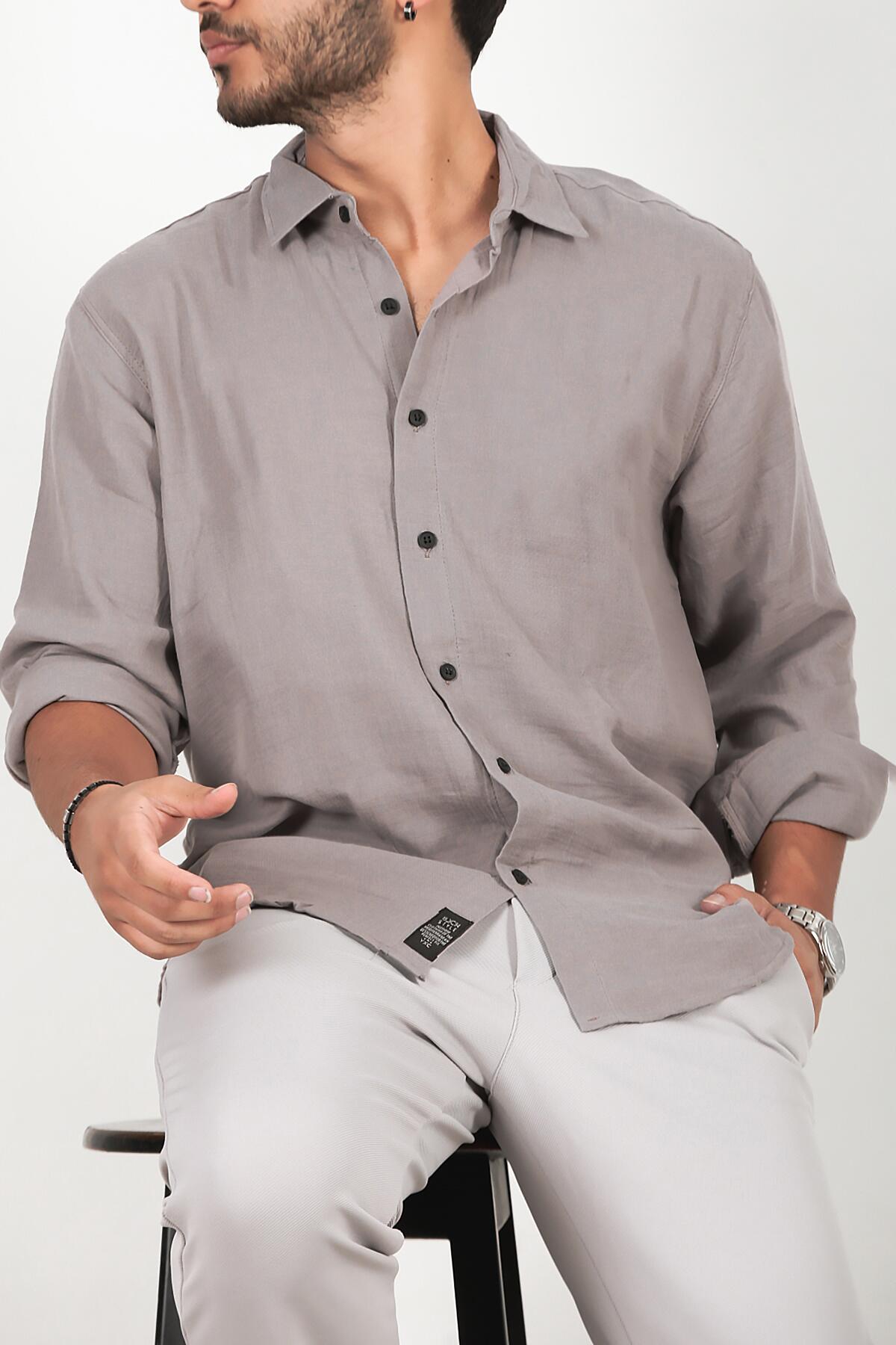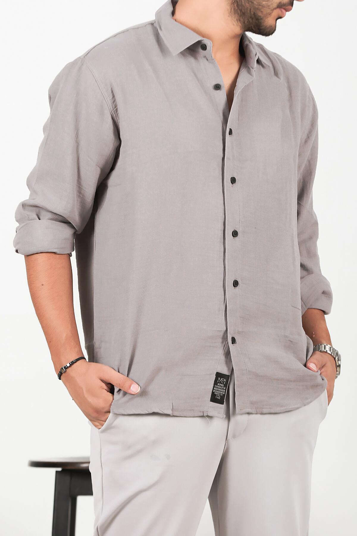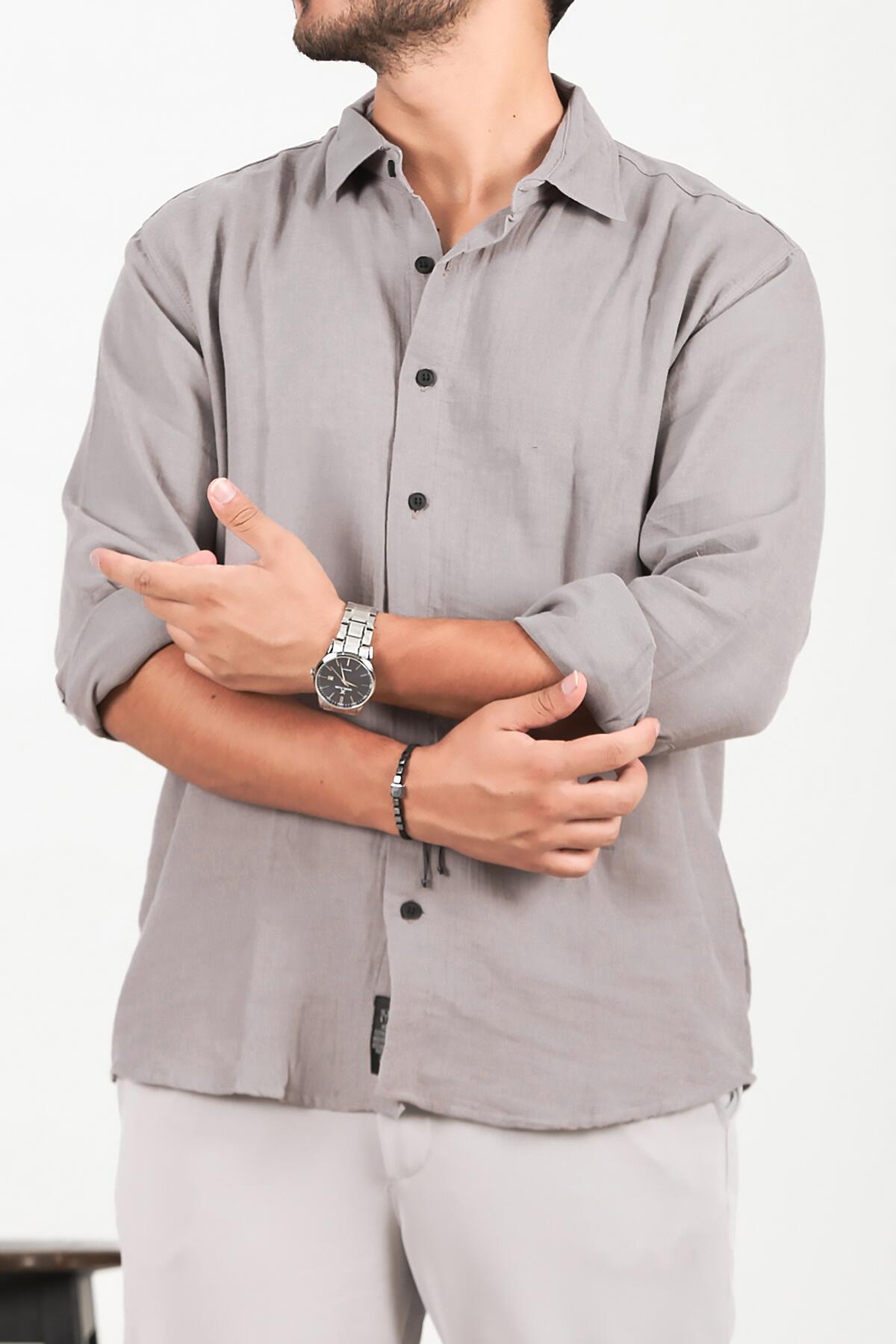 Erkek Oversize Uzun Kol Gömlek Gri