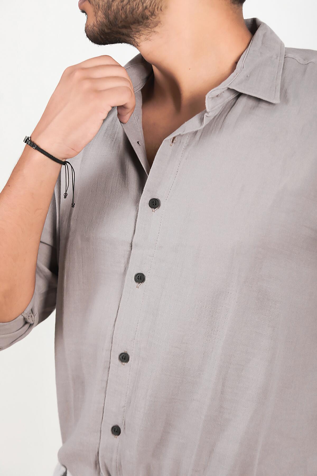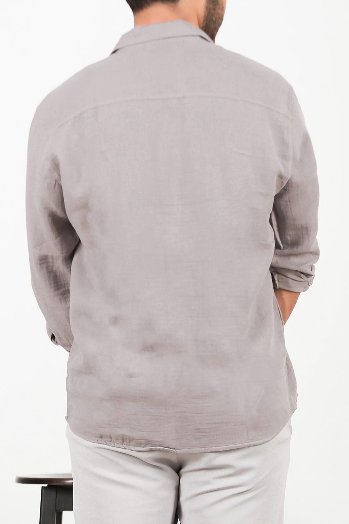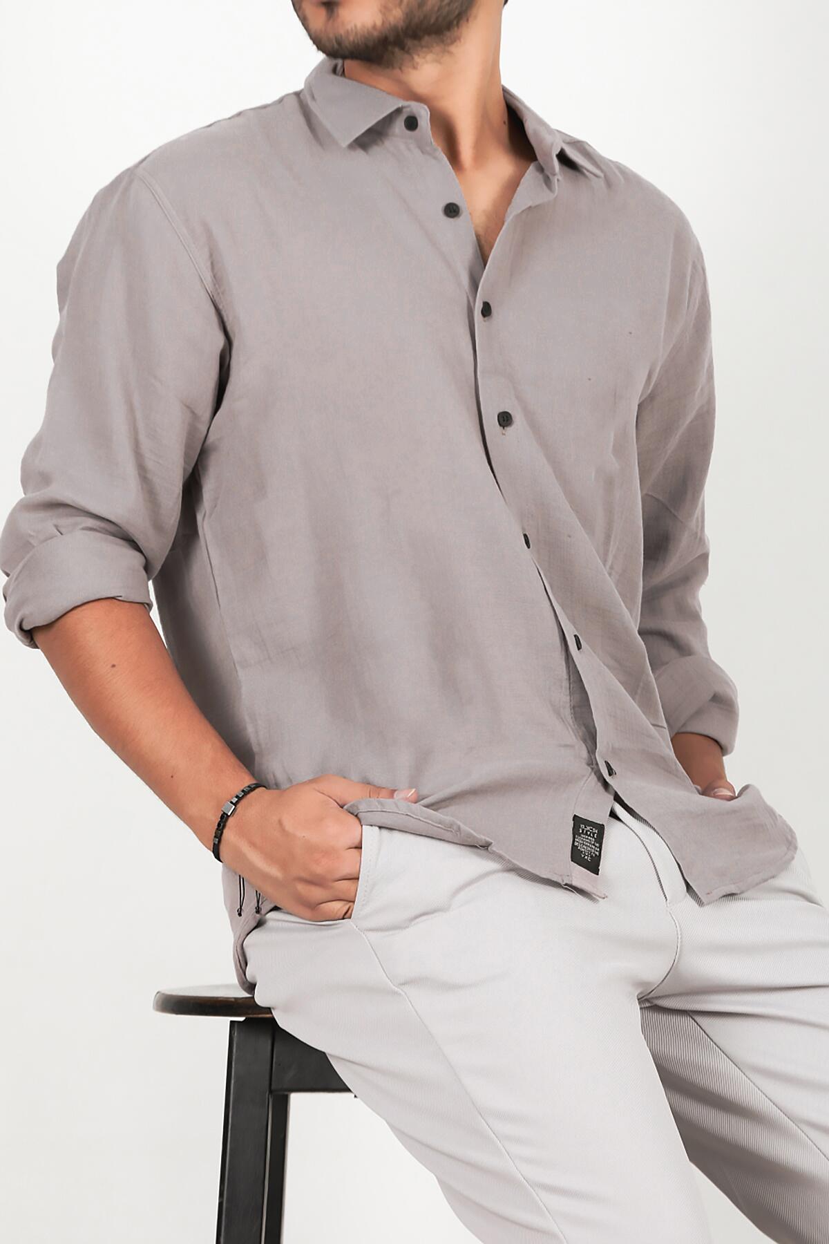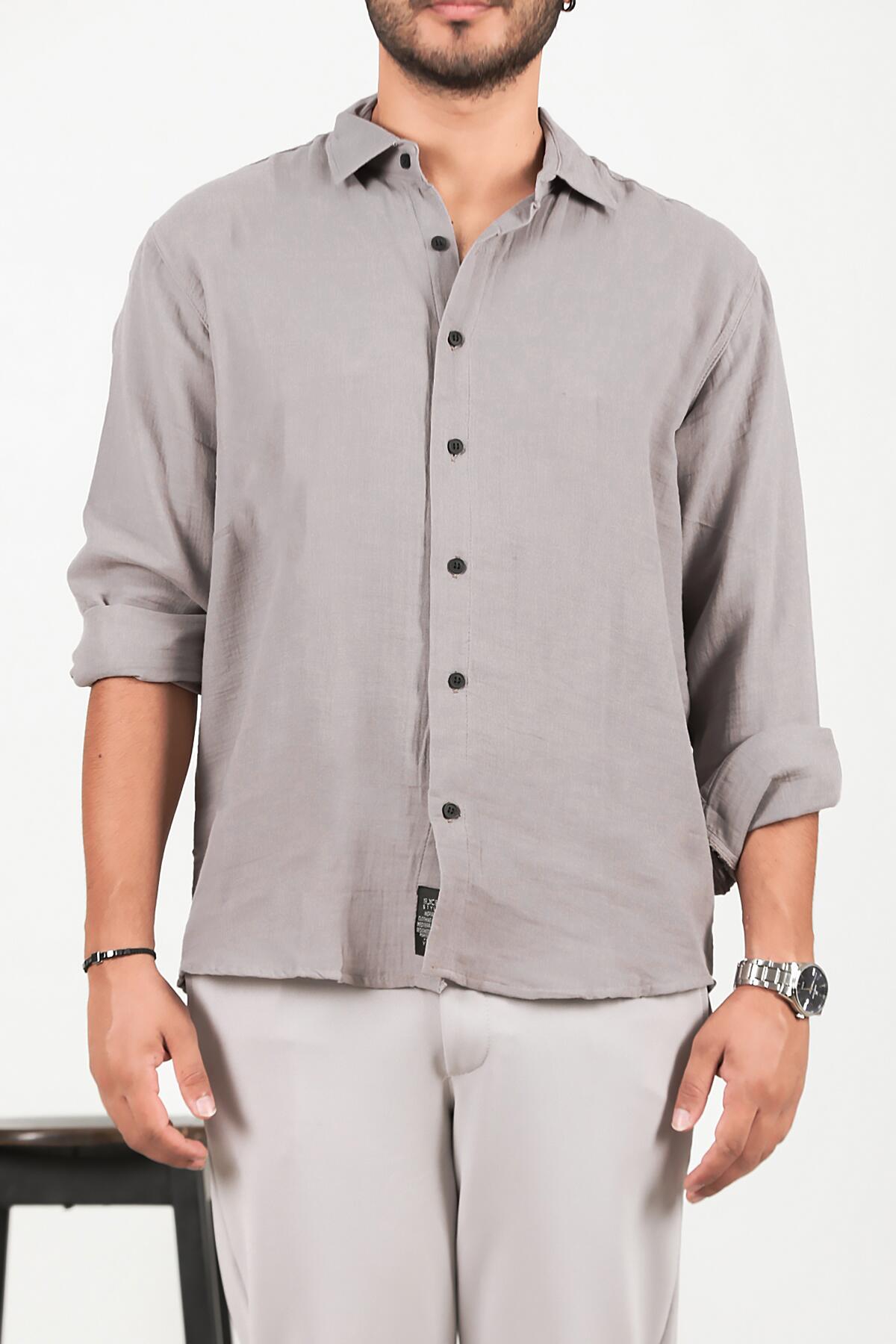 Erkek Oversize Uzun Kol Gömlek Gri