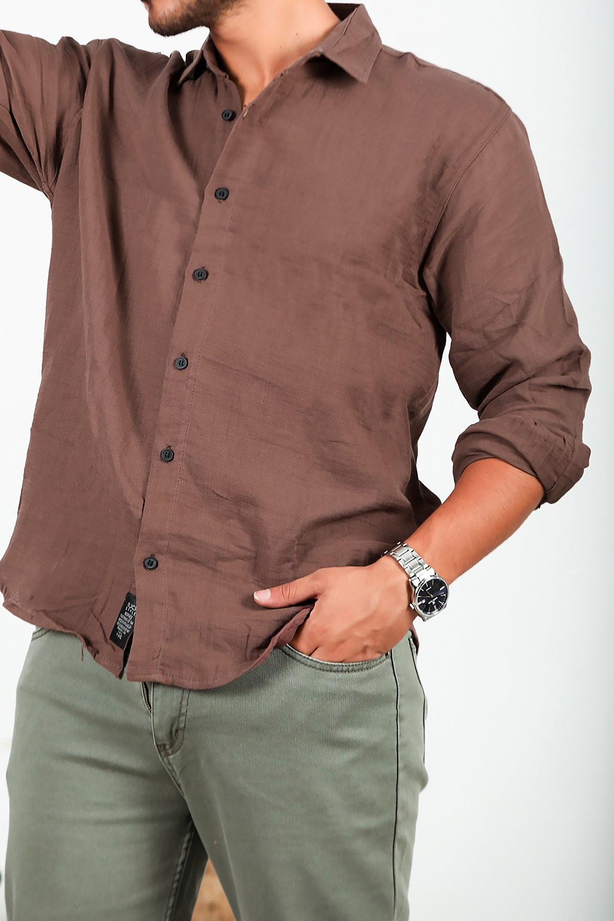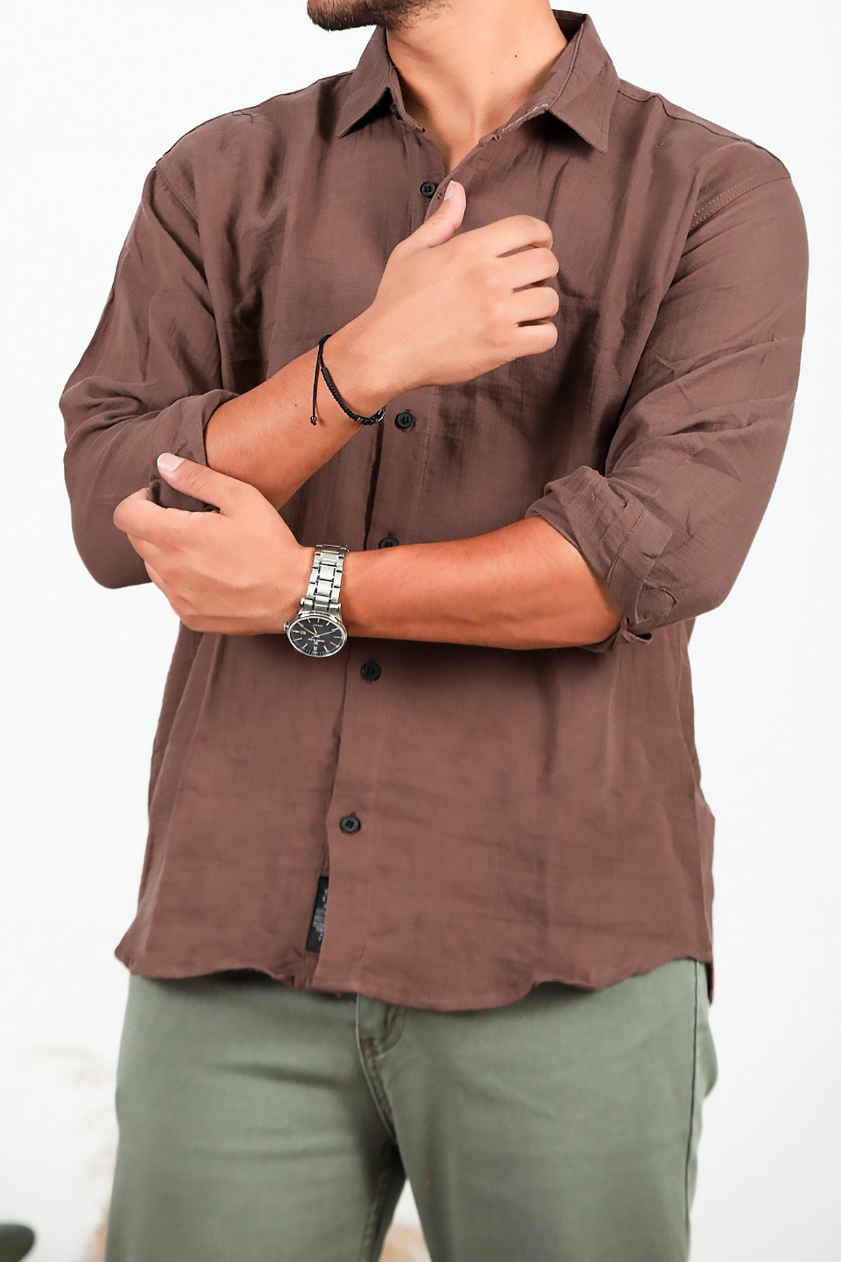 Erkek Uzun Kol Keten Gömlek