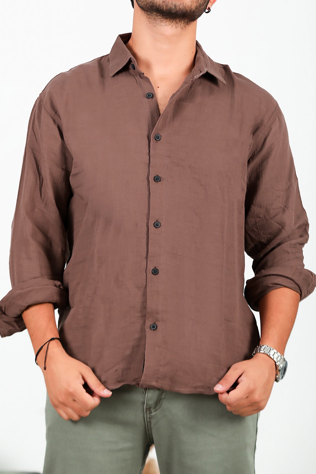 Erkek Oversize Uzun Kol Gömlek Kahverengi
