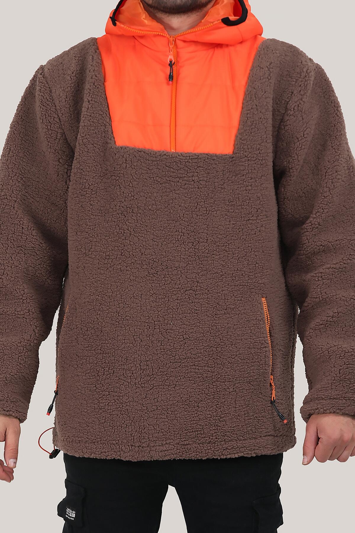 Erkek Peluş Kapşonlu Sweat Kahverengi
