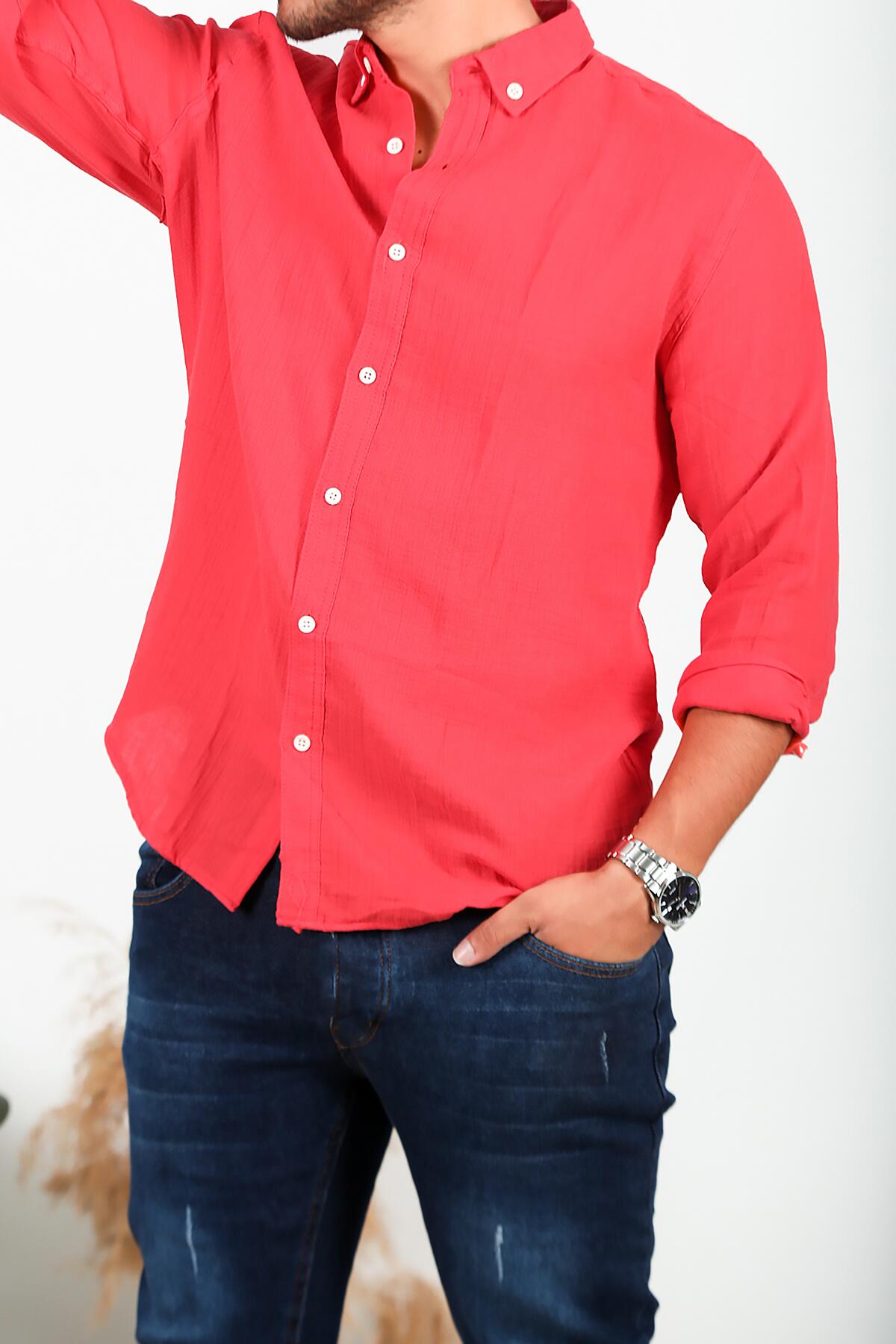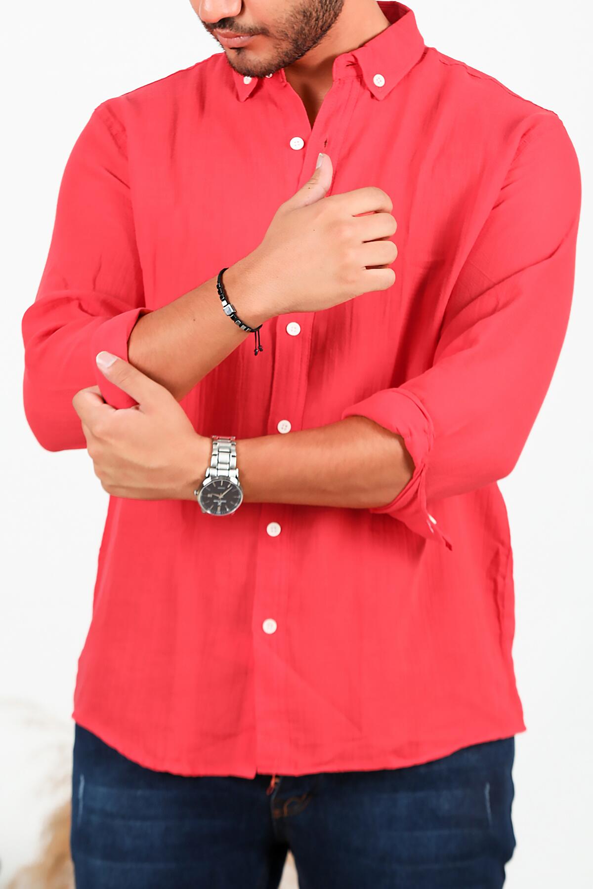 Erkek Uzun Kol Keten Gömlek Nar