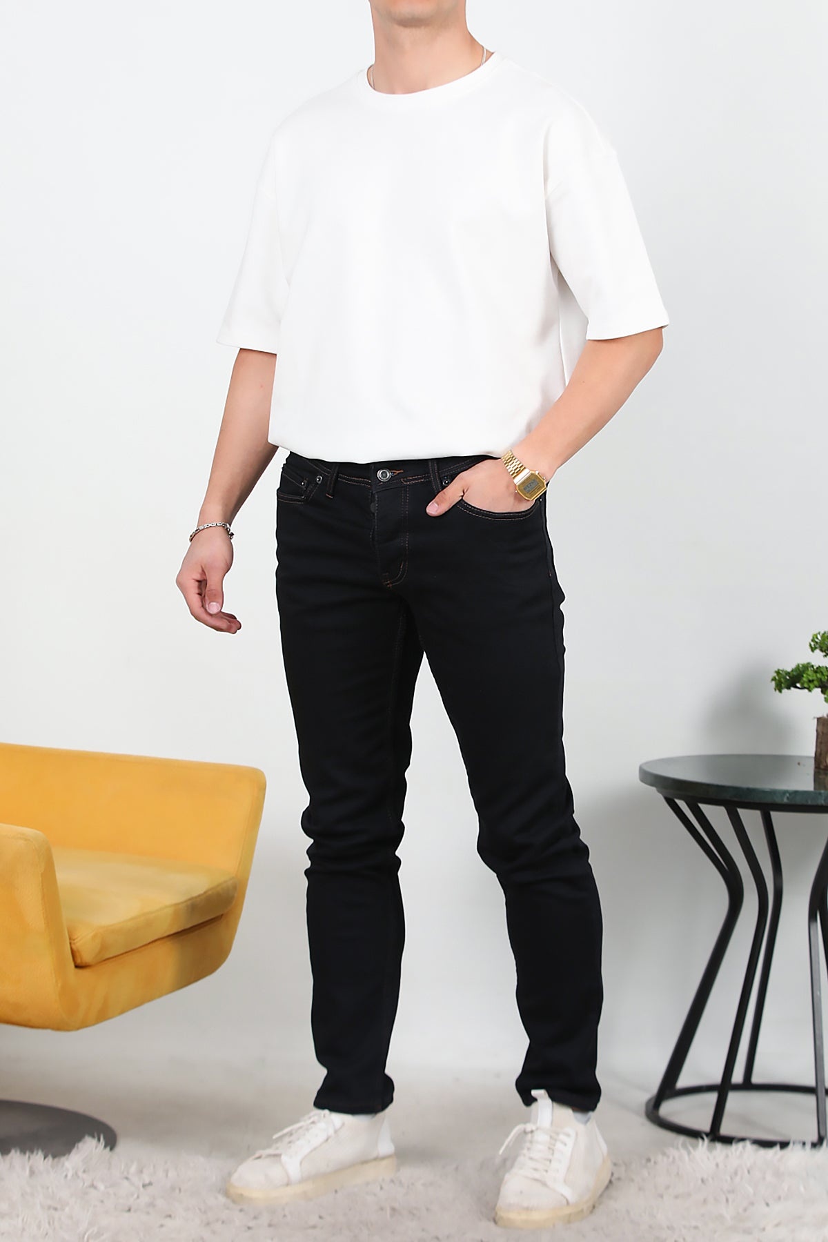 MODEL BİLGİLERİ Boy: 180 cm Omuz: 121 cm Göğüs: 98 cm Bel: 85 cm Kalça: 100 cm