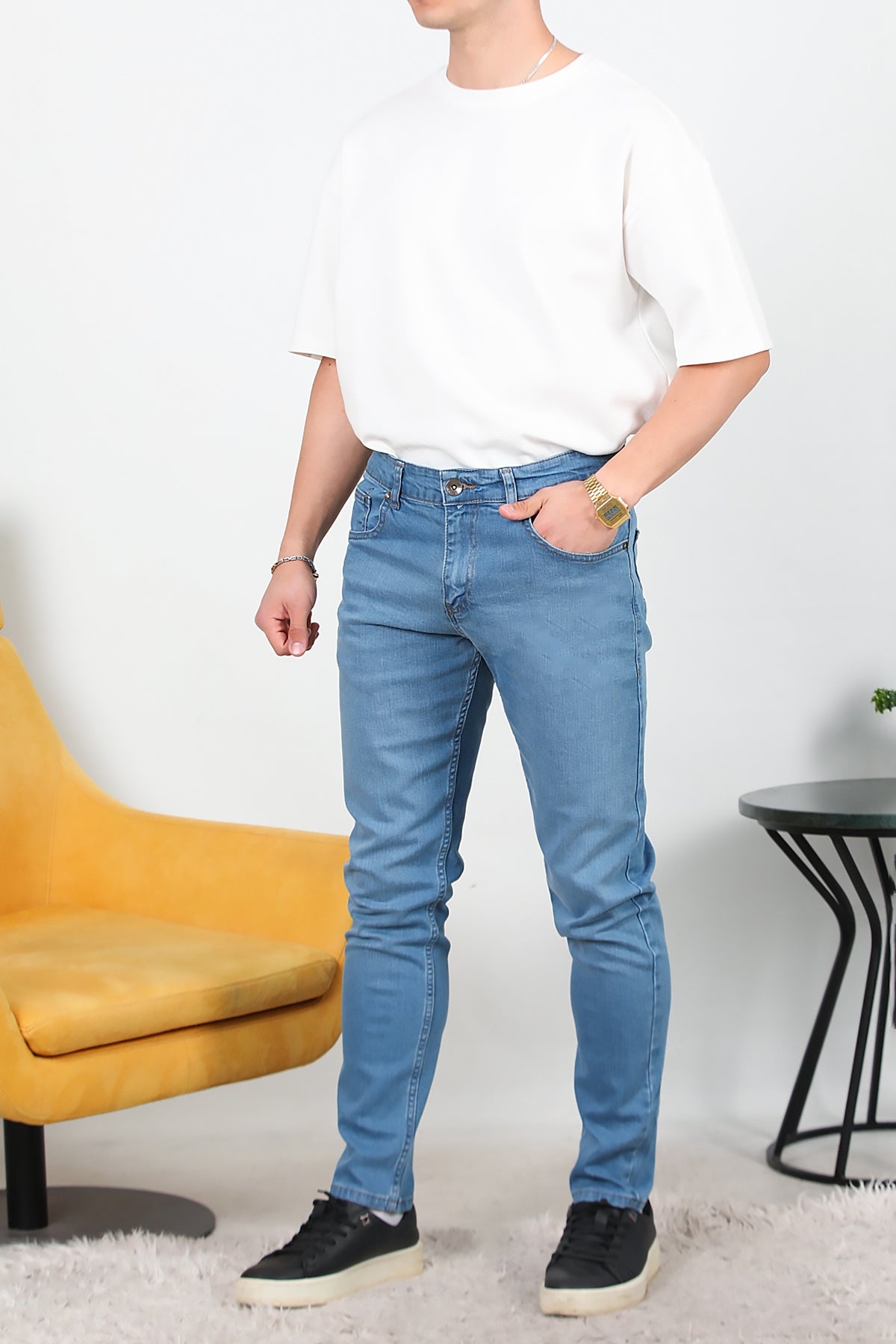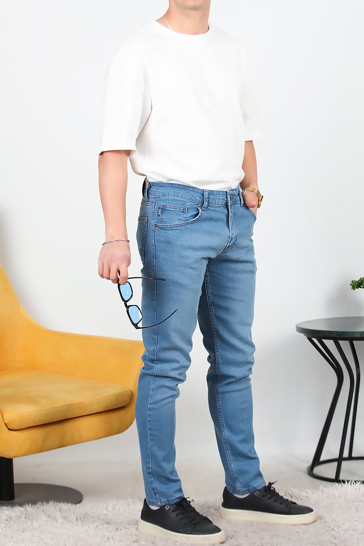 Erkek Slim Likralı Kot Pantolon Mavi