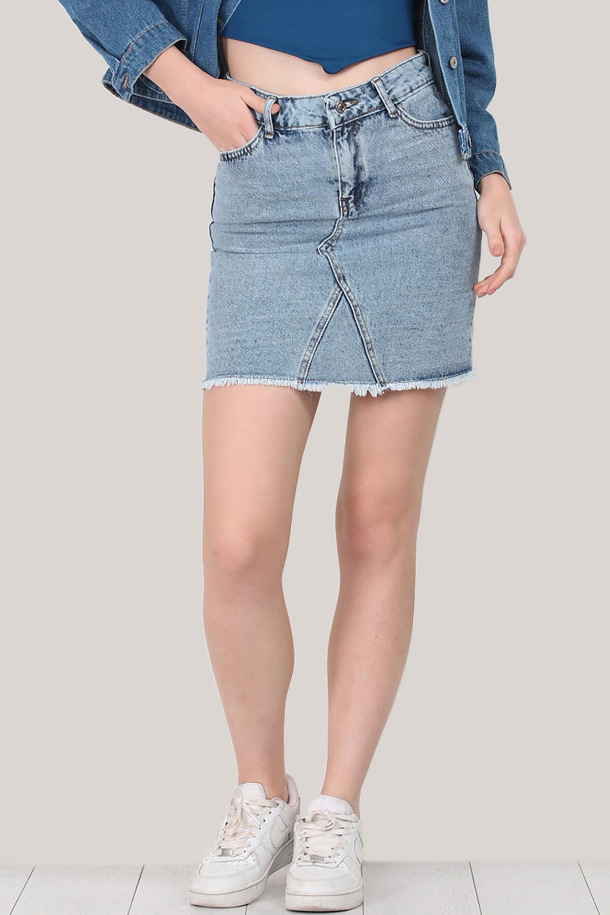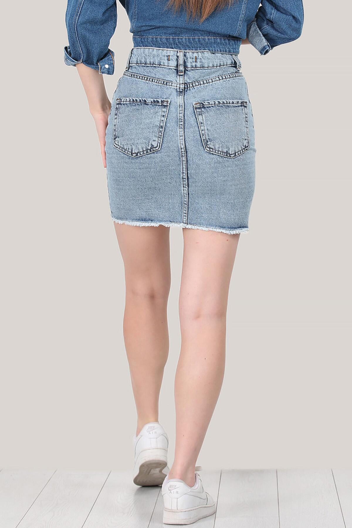 Kadın Kısa Kot Etek Kot