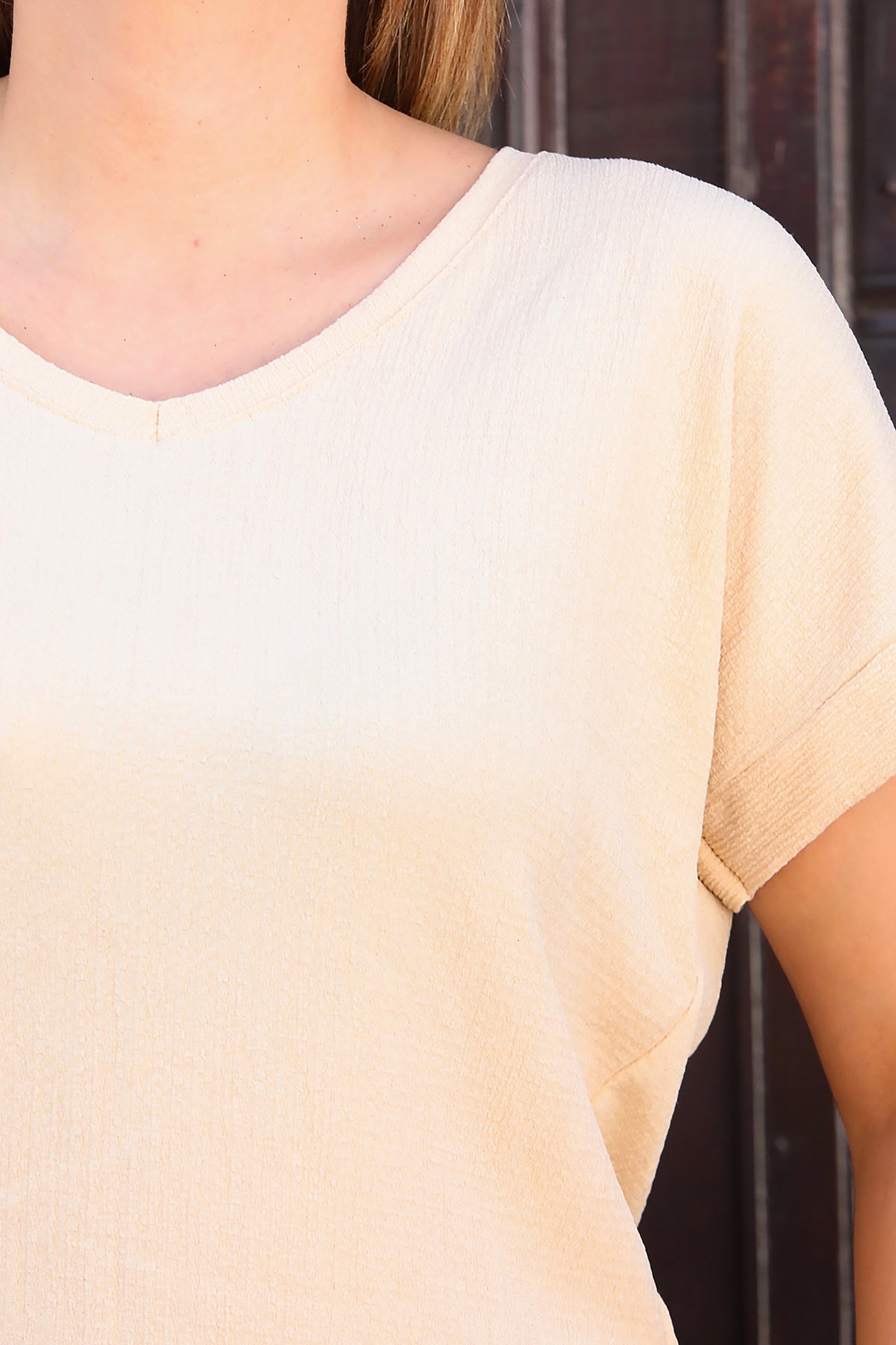 Büyük Beden V Yaka Bürümcük Bluz Bej