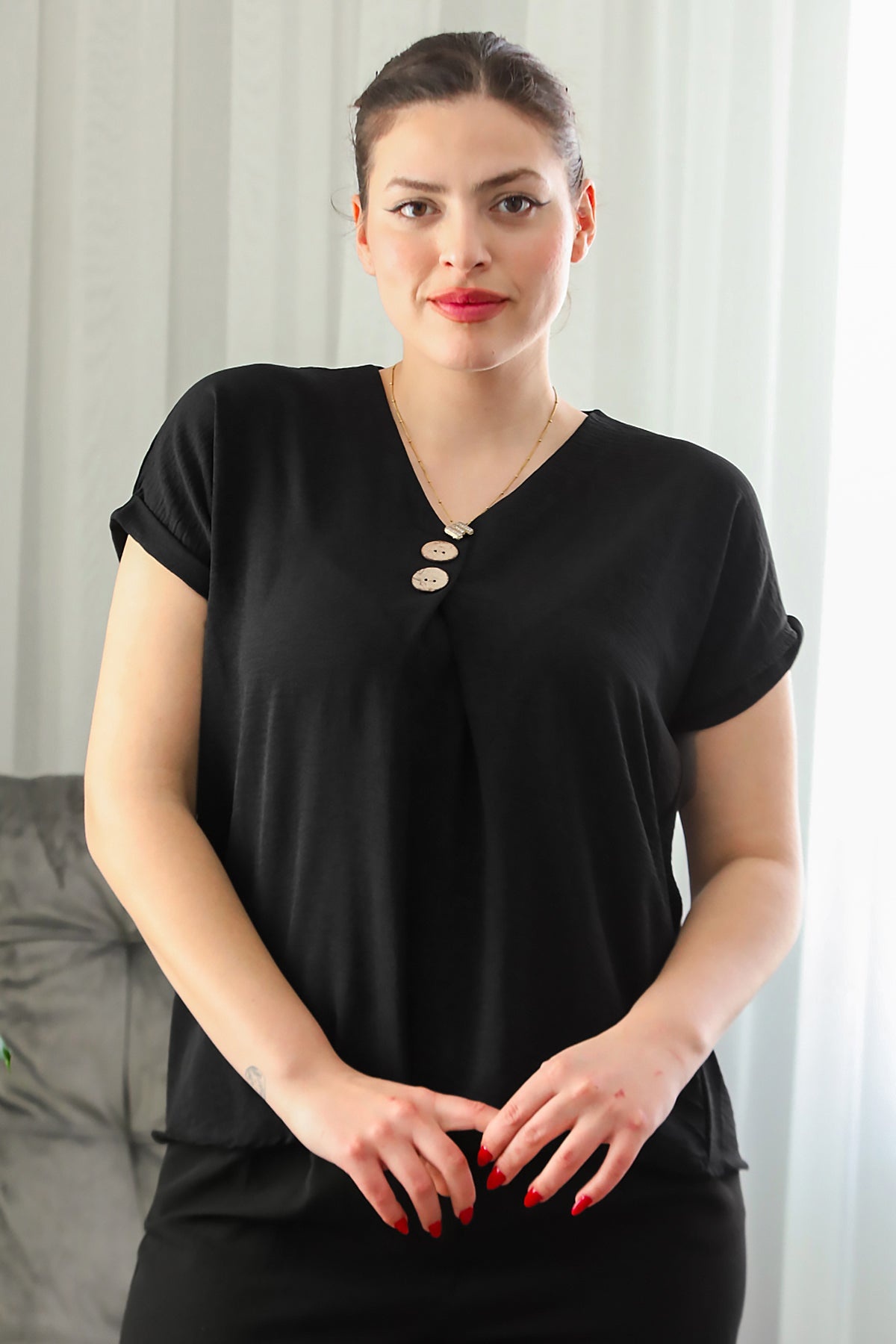 Numune Bedeni: 38Numune Boyu: 62 cmKumaş Tipi: %100 ViskonKol: Kısa Kol