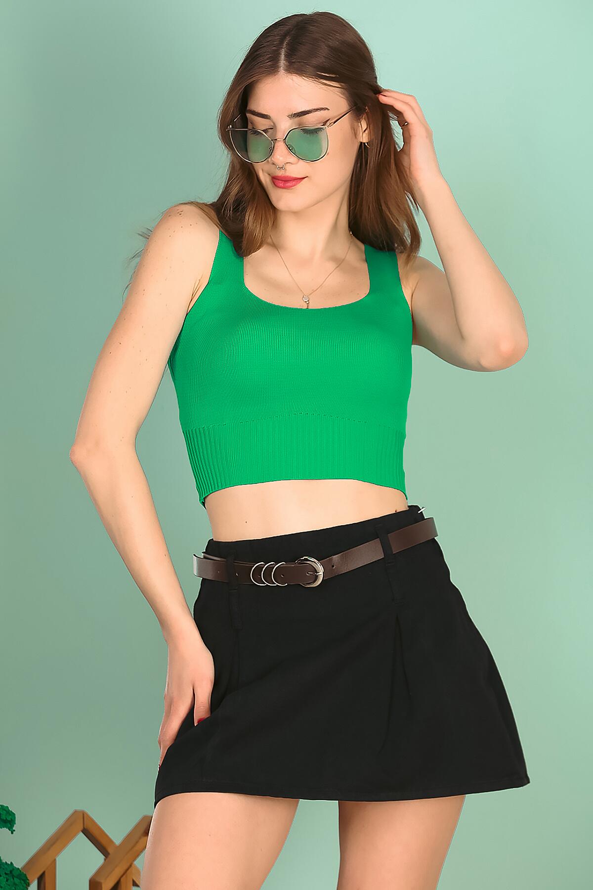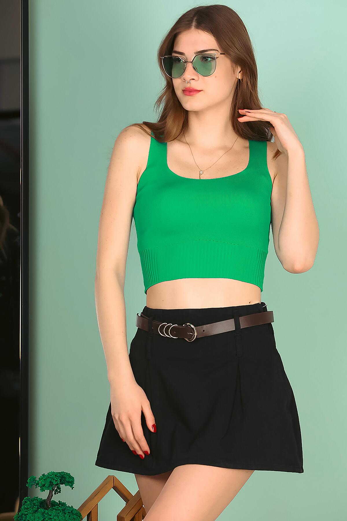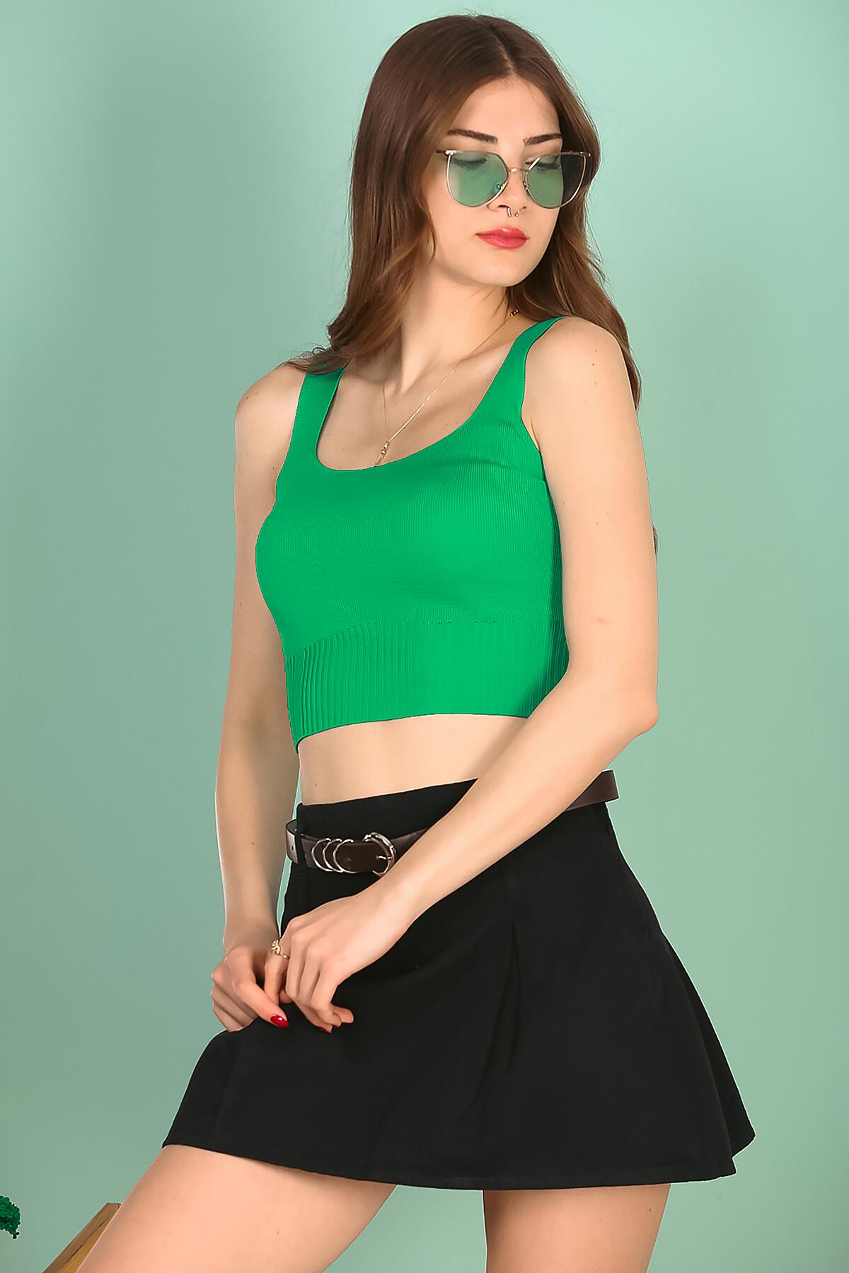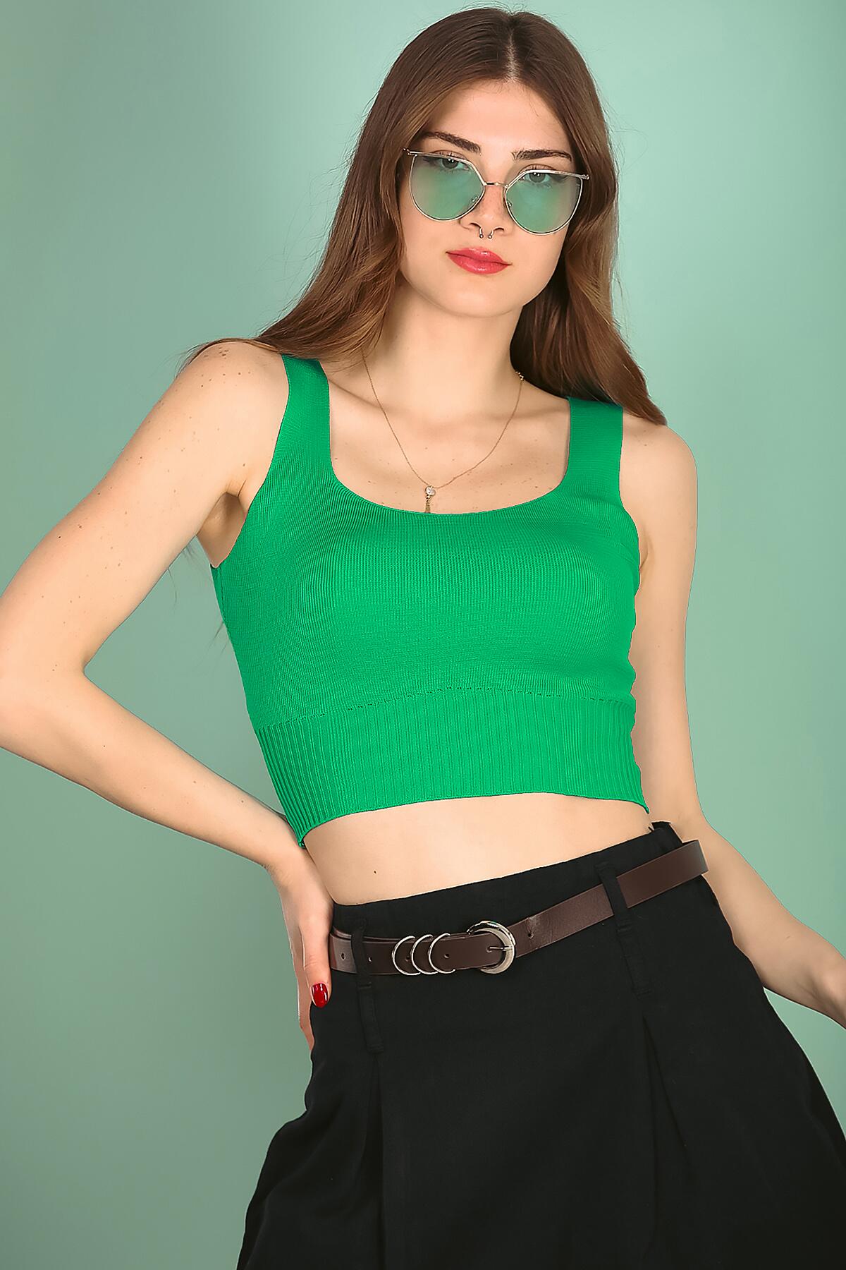 Kadın Askılı Crop Bluz Yeşil