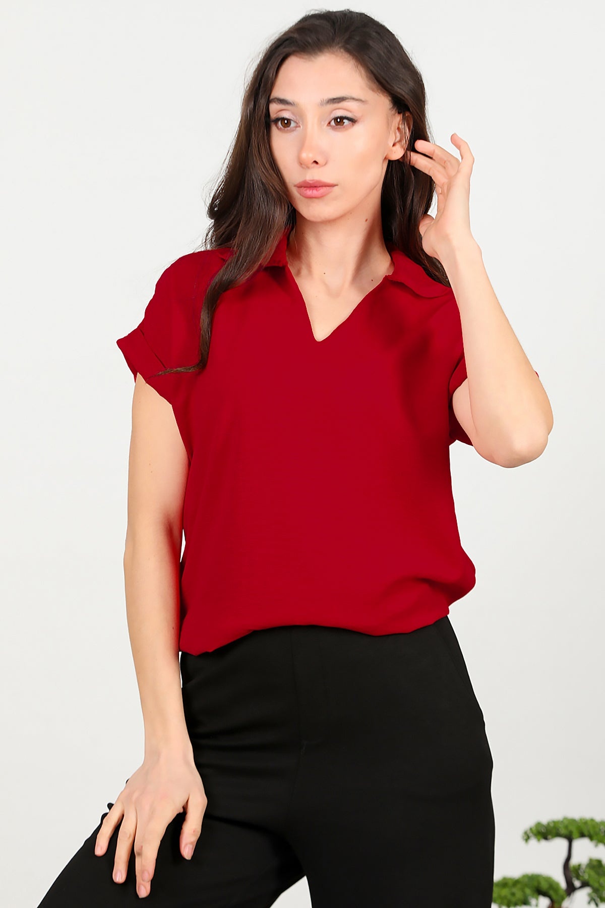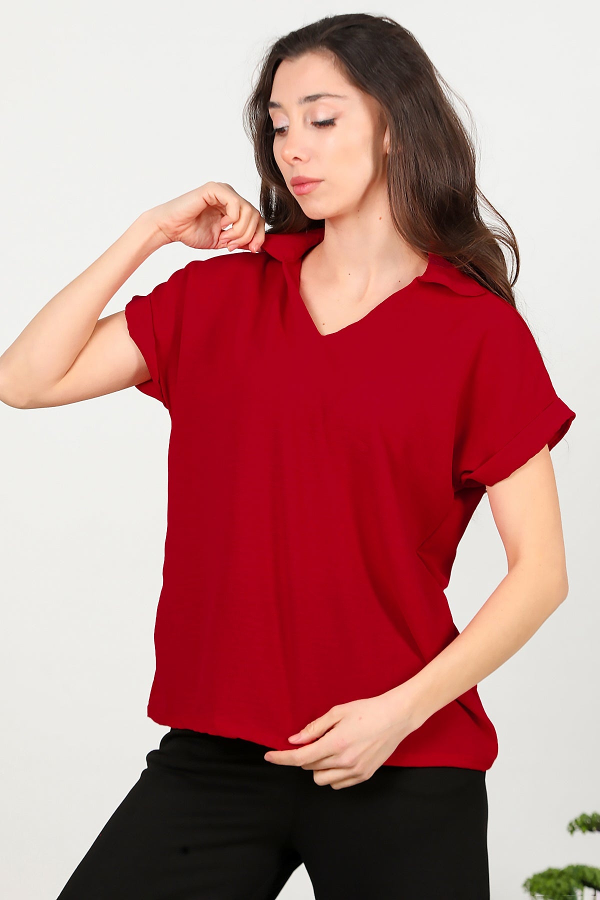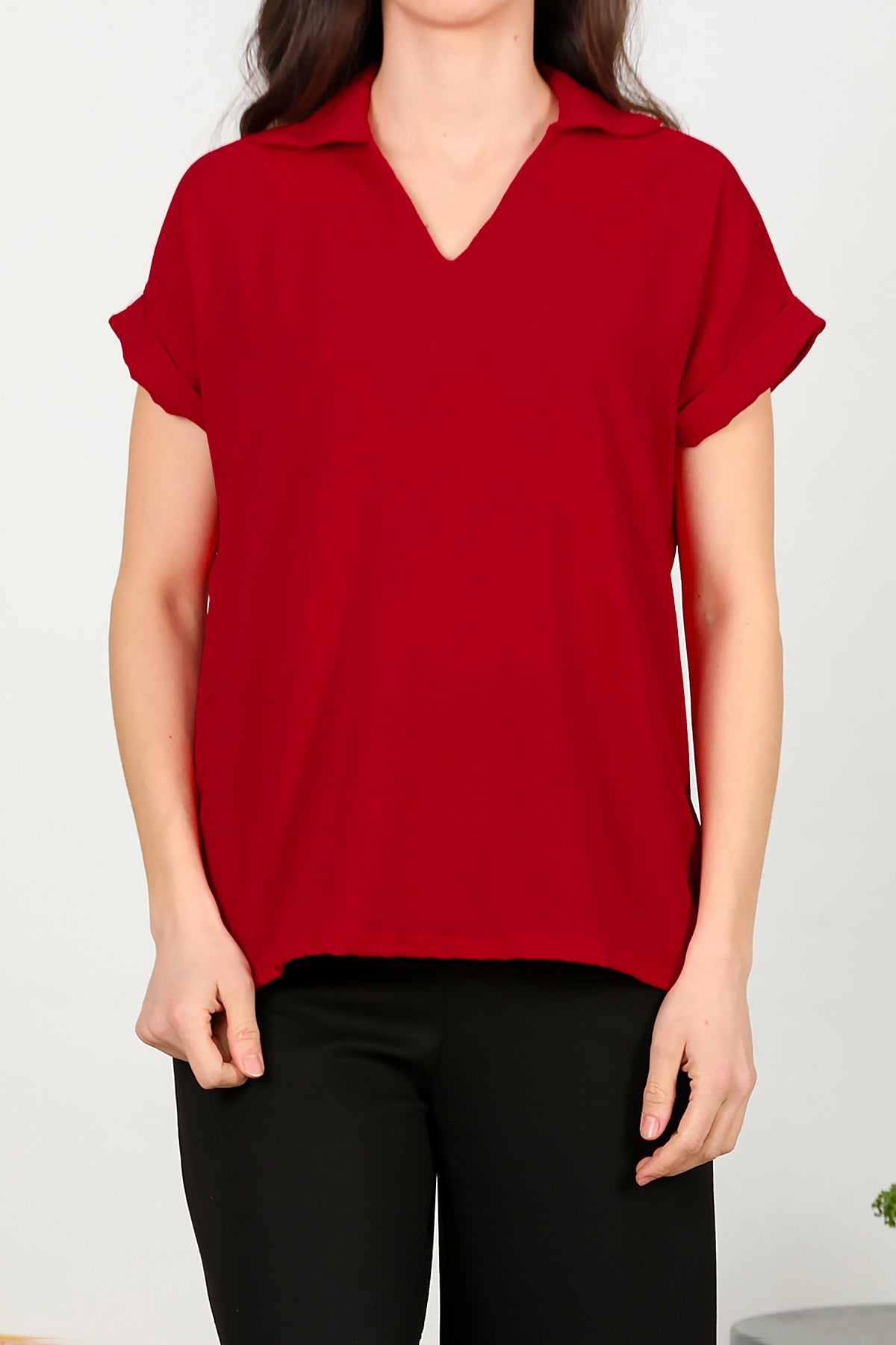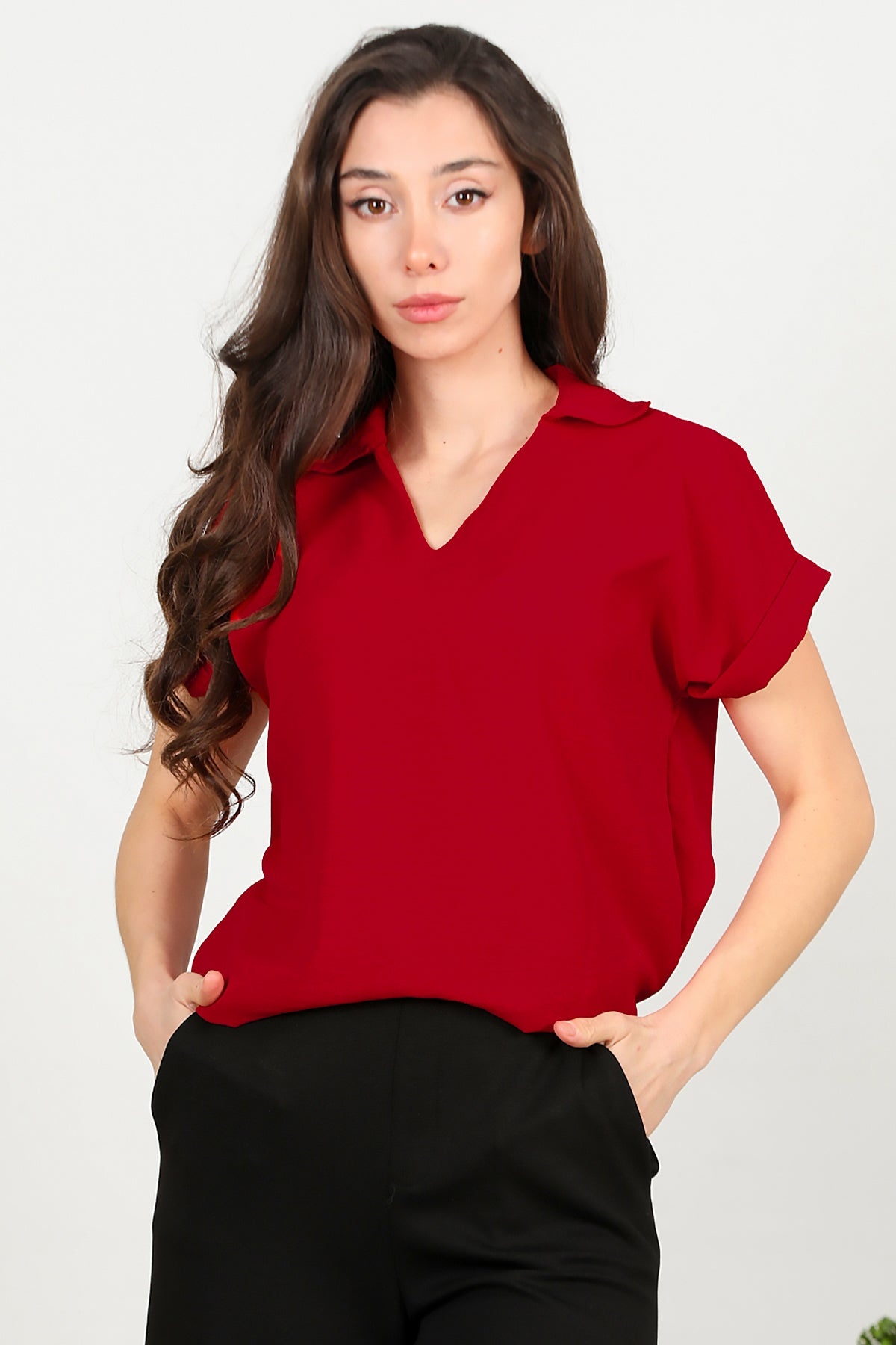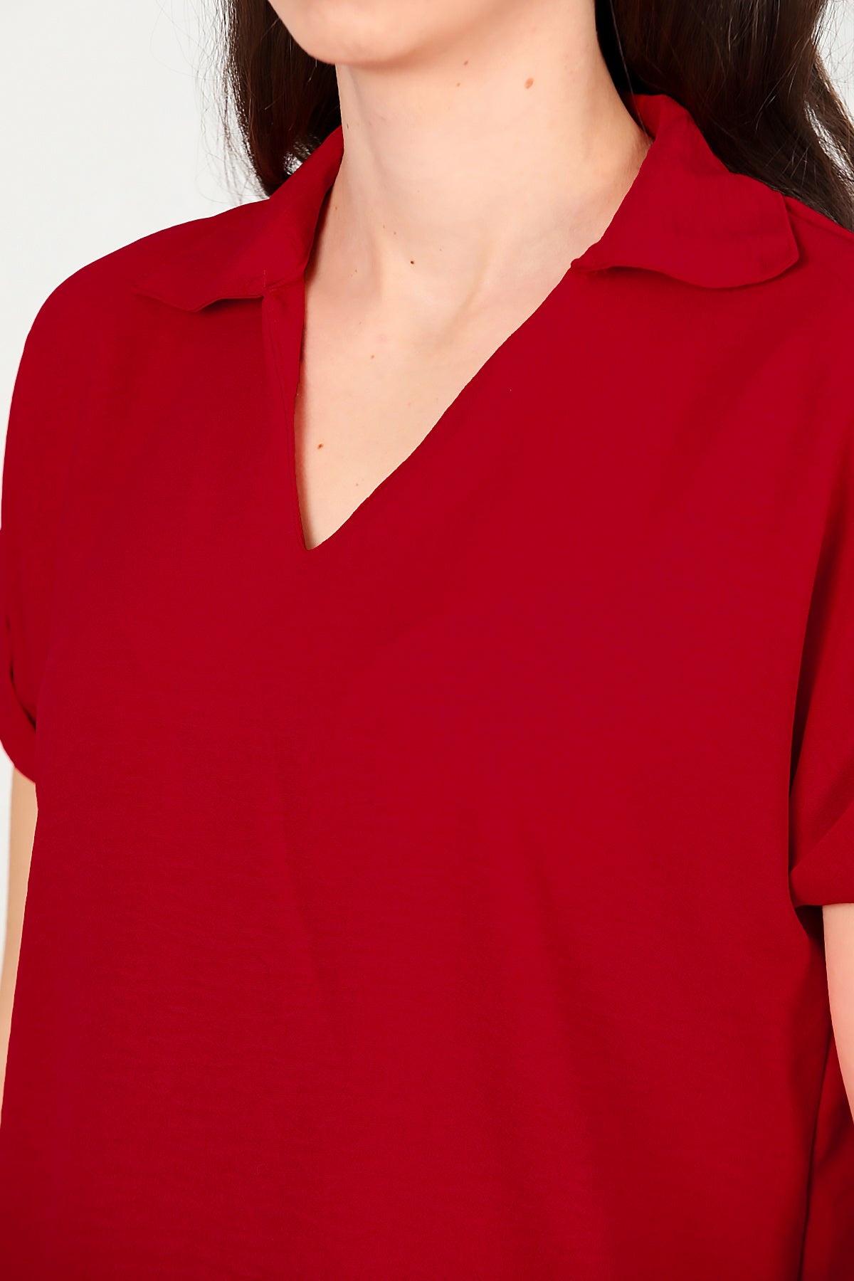 Kadın Ayrobin V Yaka Yakalı Bluz Kırmızı
