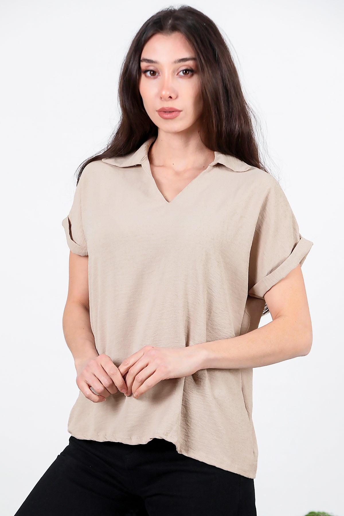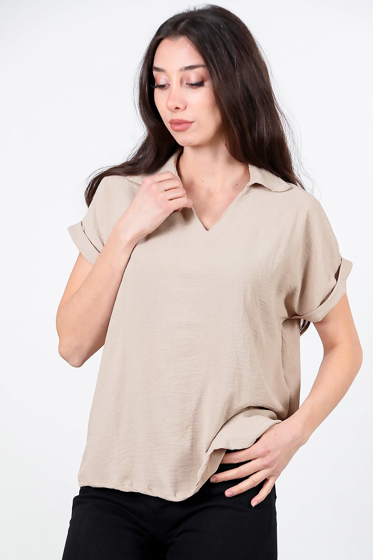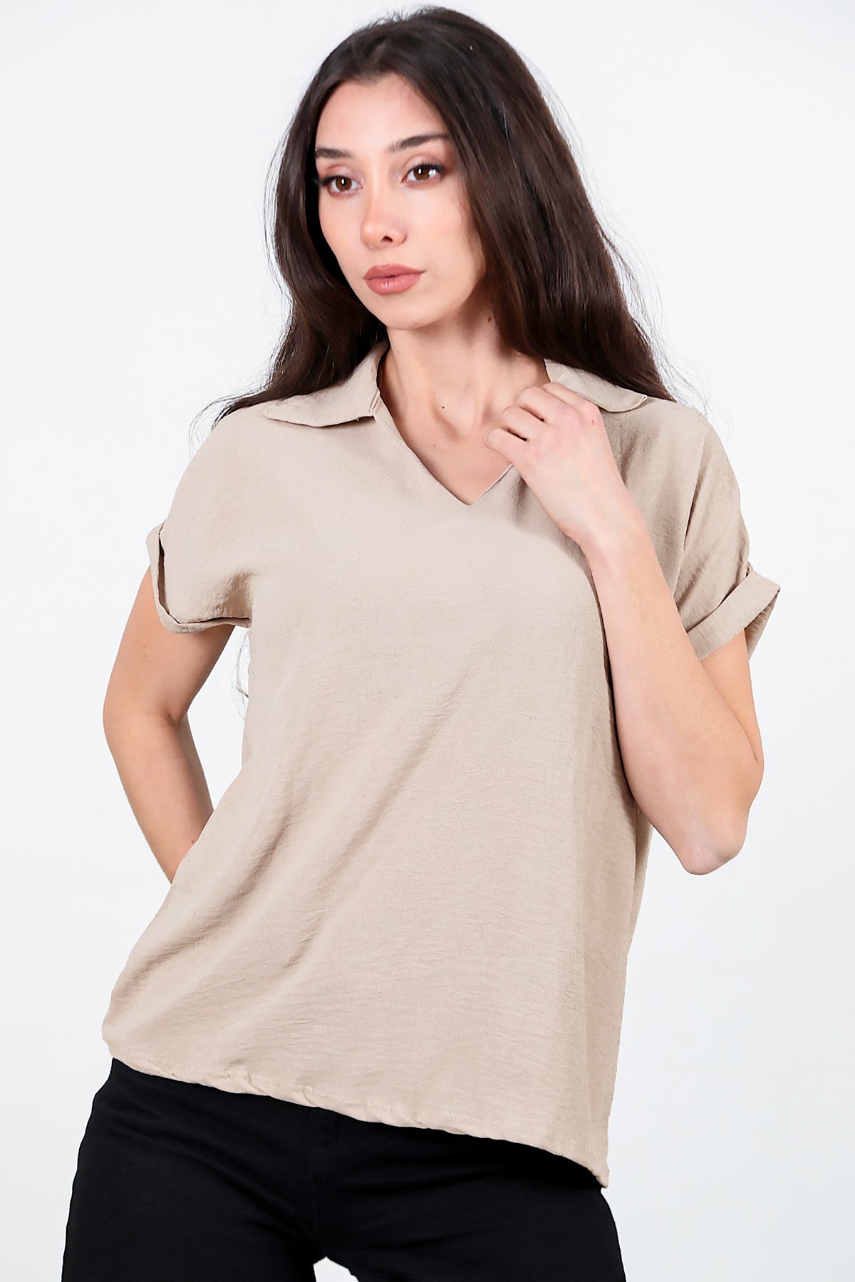 Kadın Ayrobin V Yaka Yakalı Bluz Taş