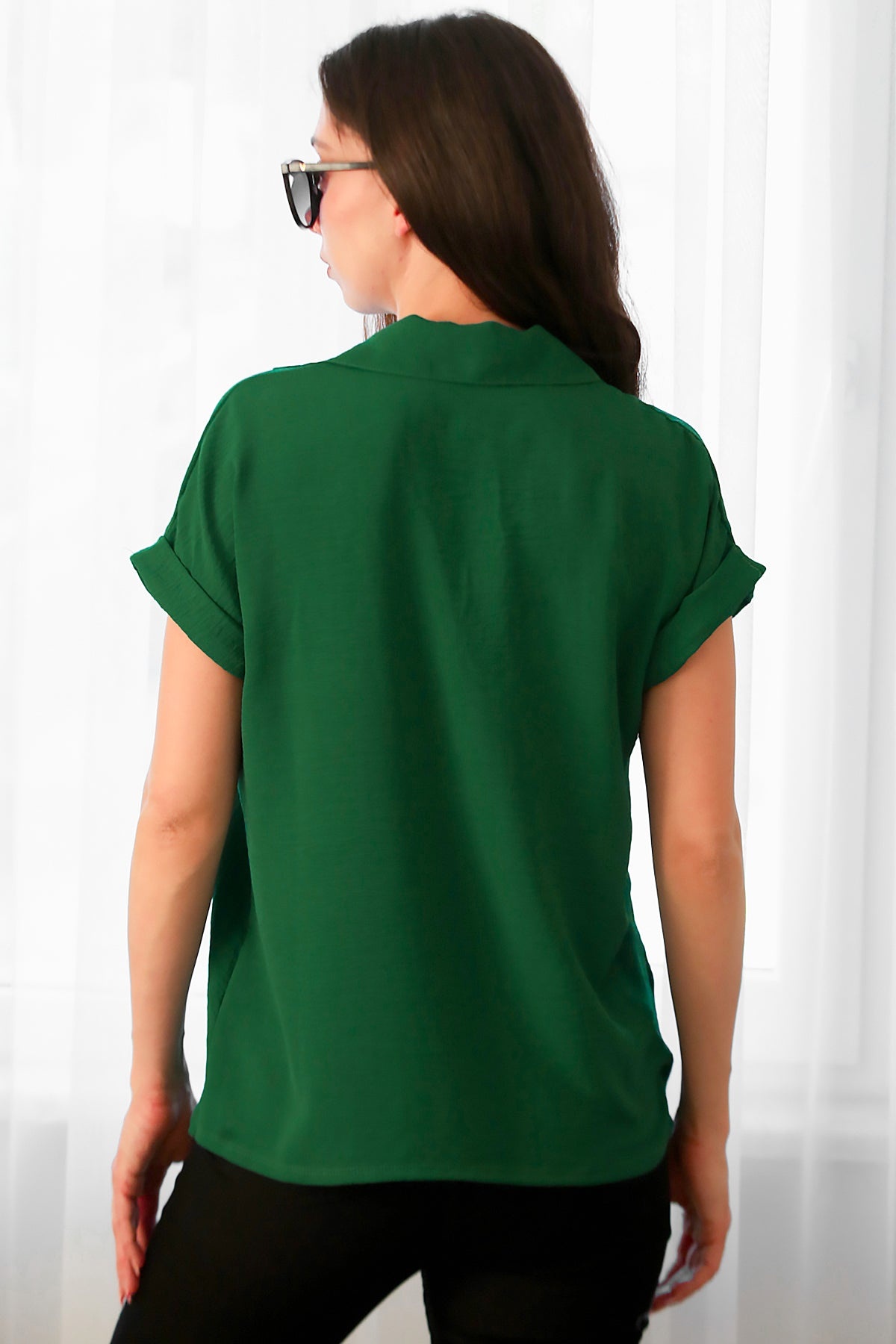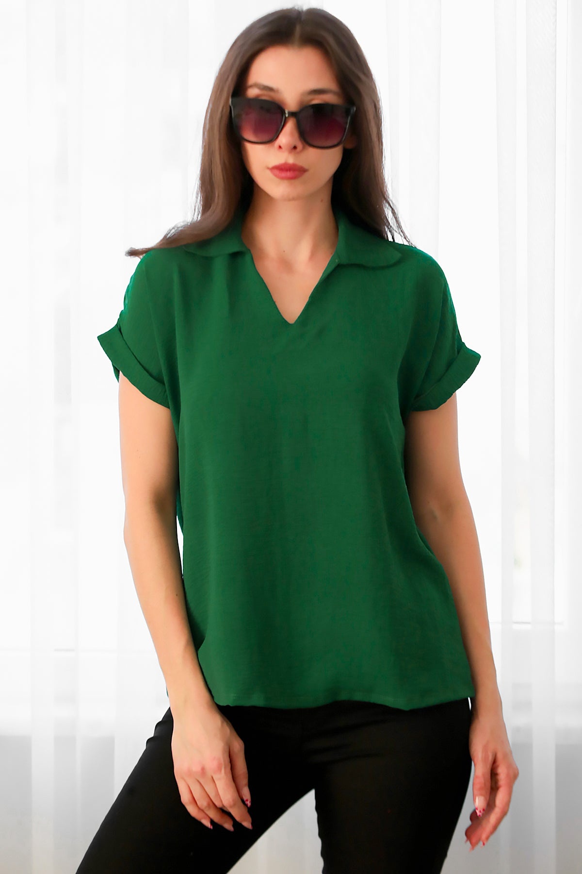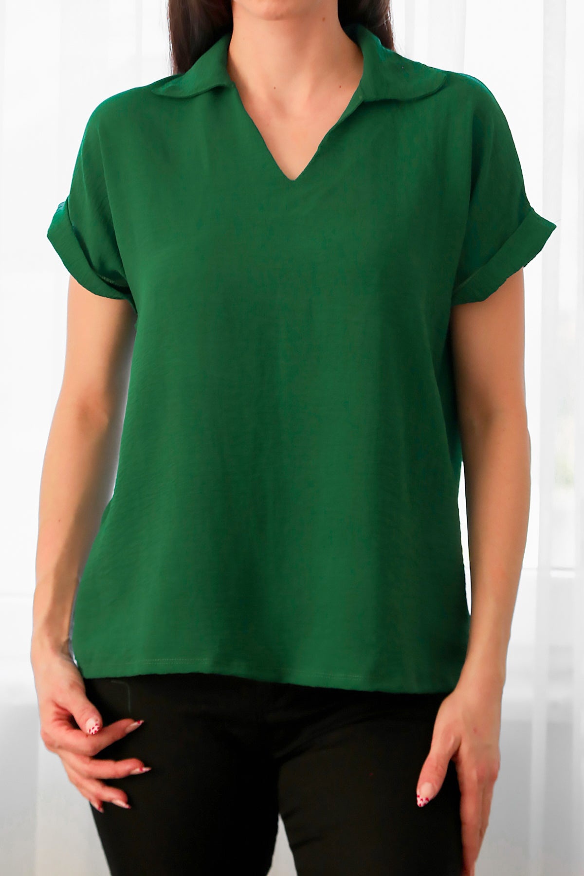 Kadın Ayrobin V Yaka Yakalı Bluz Zümrüt