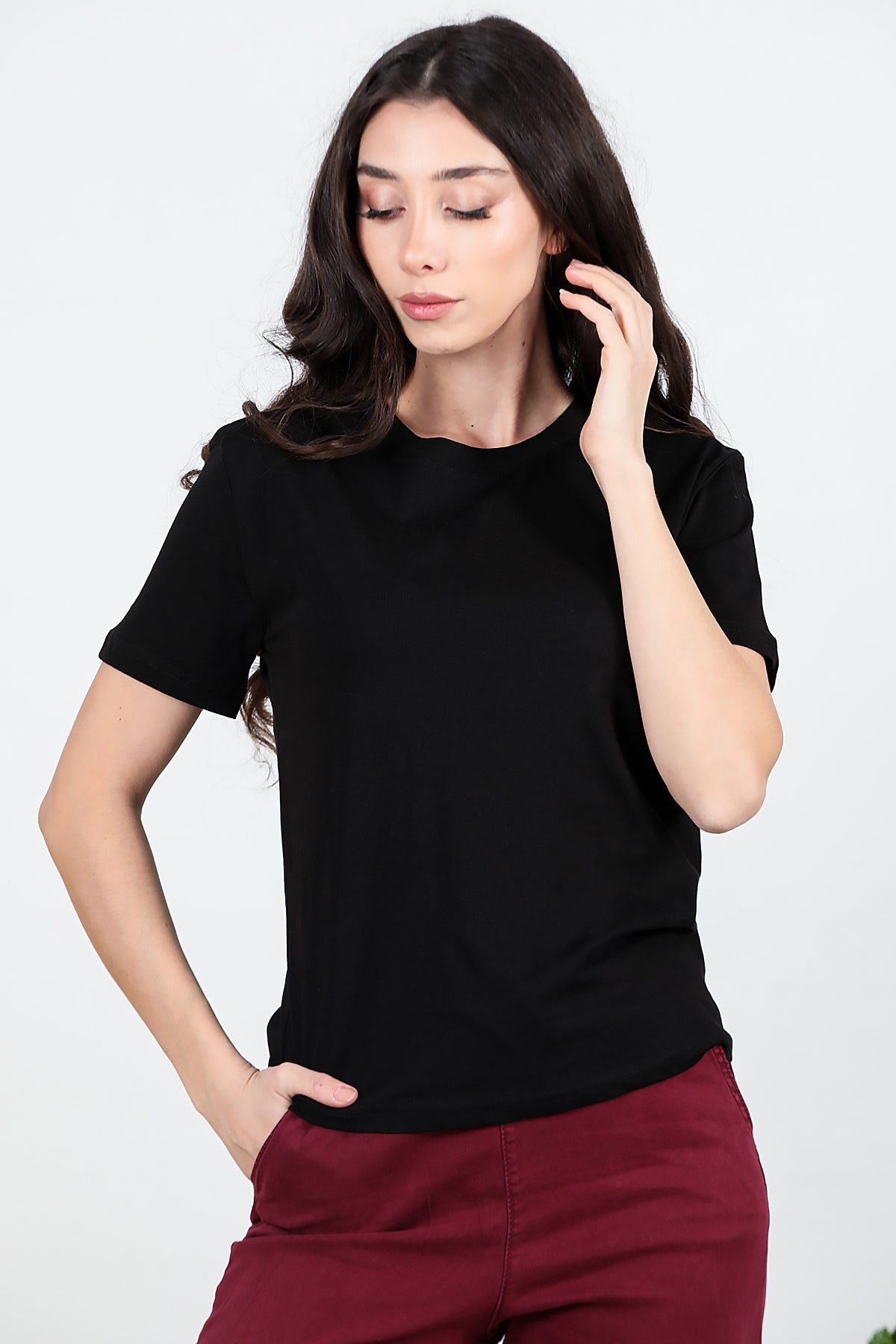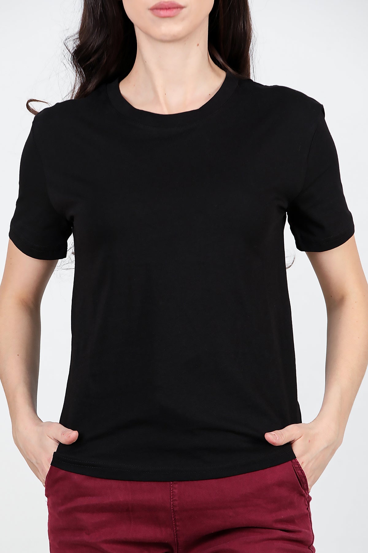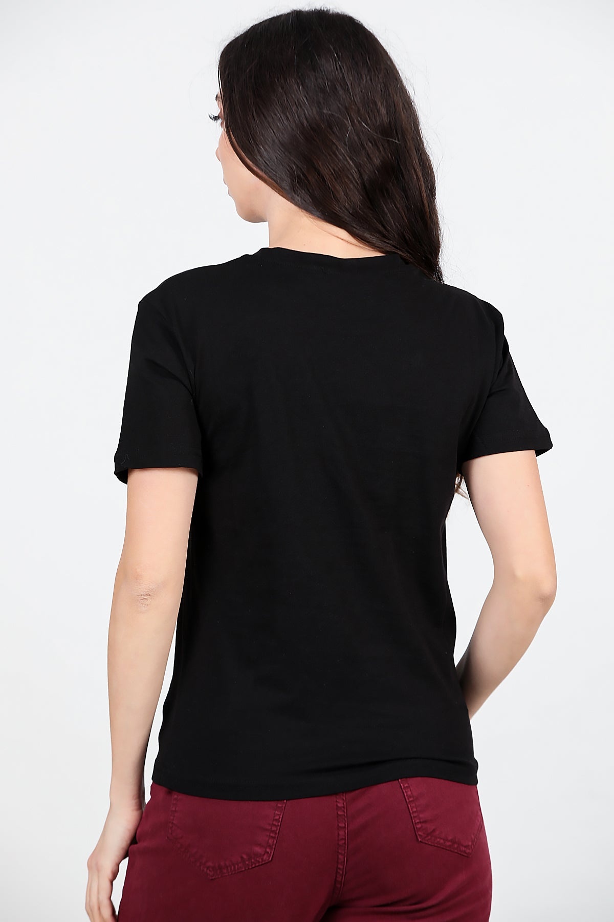 Kadın Bisiklet Yaka T-shırt Siyah
