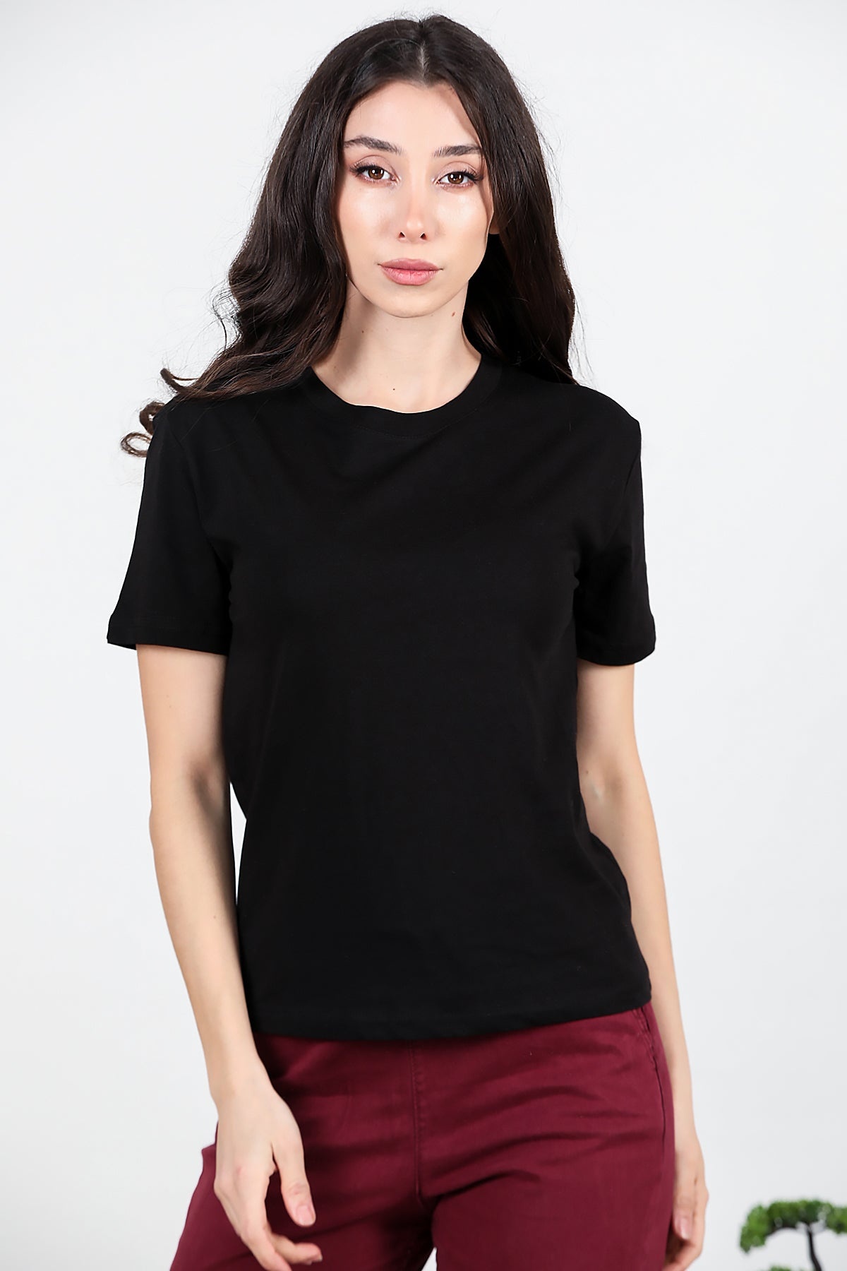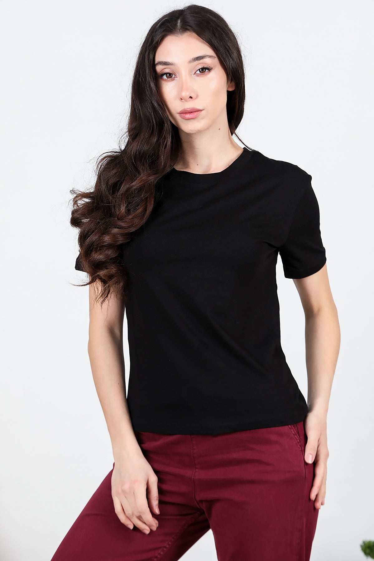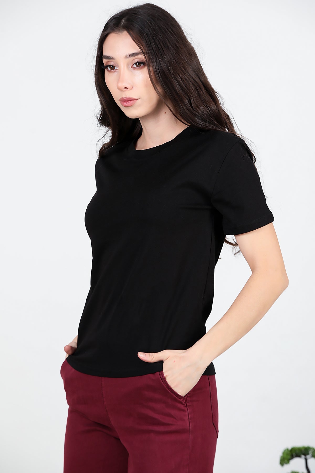 Kadın Bisiklet Yaka T-shırt Siyah