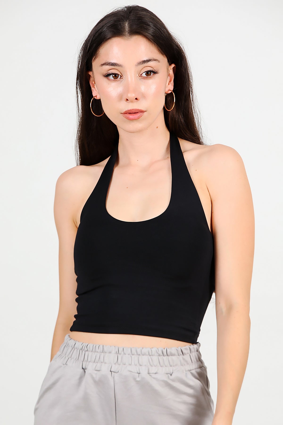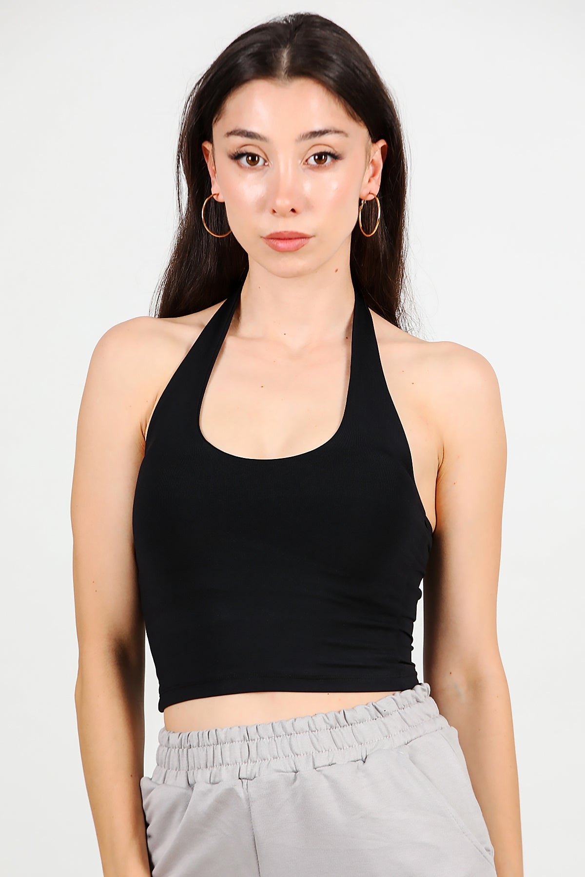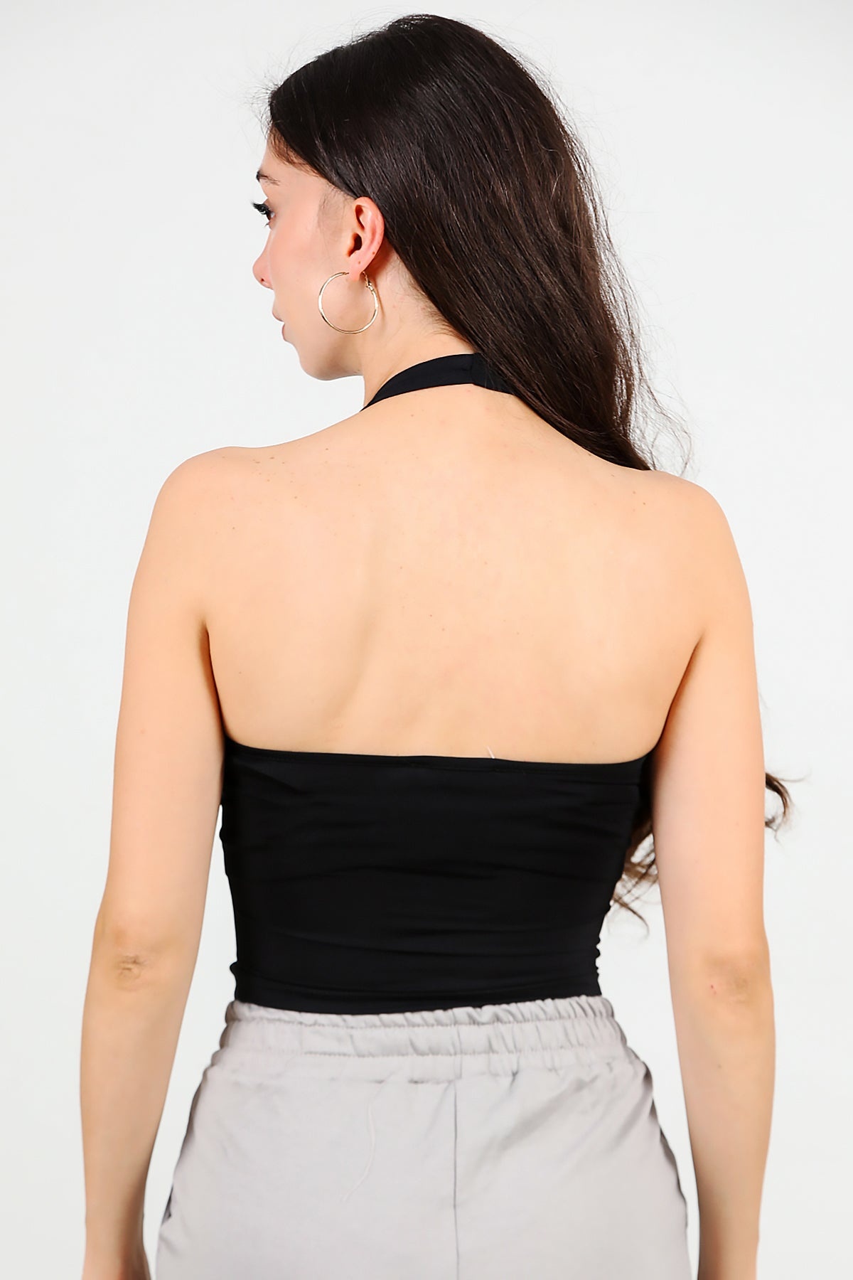 Kadın Boyundan Geçmeli Kısa Bluz Siyah