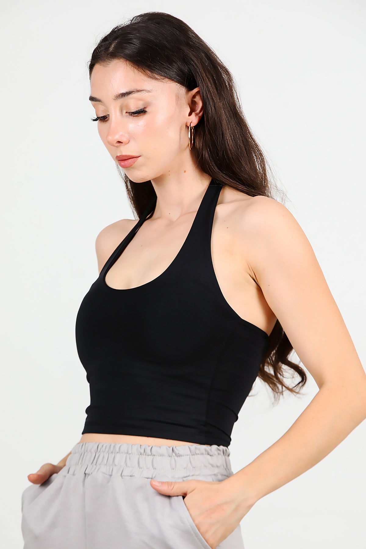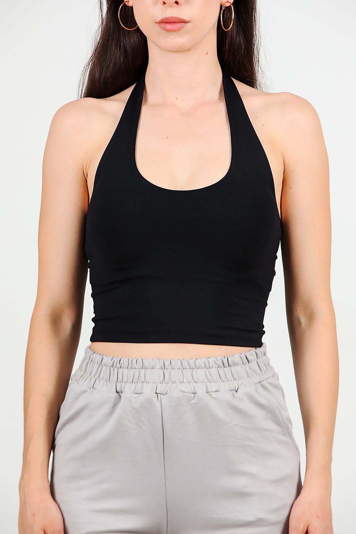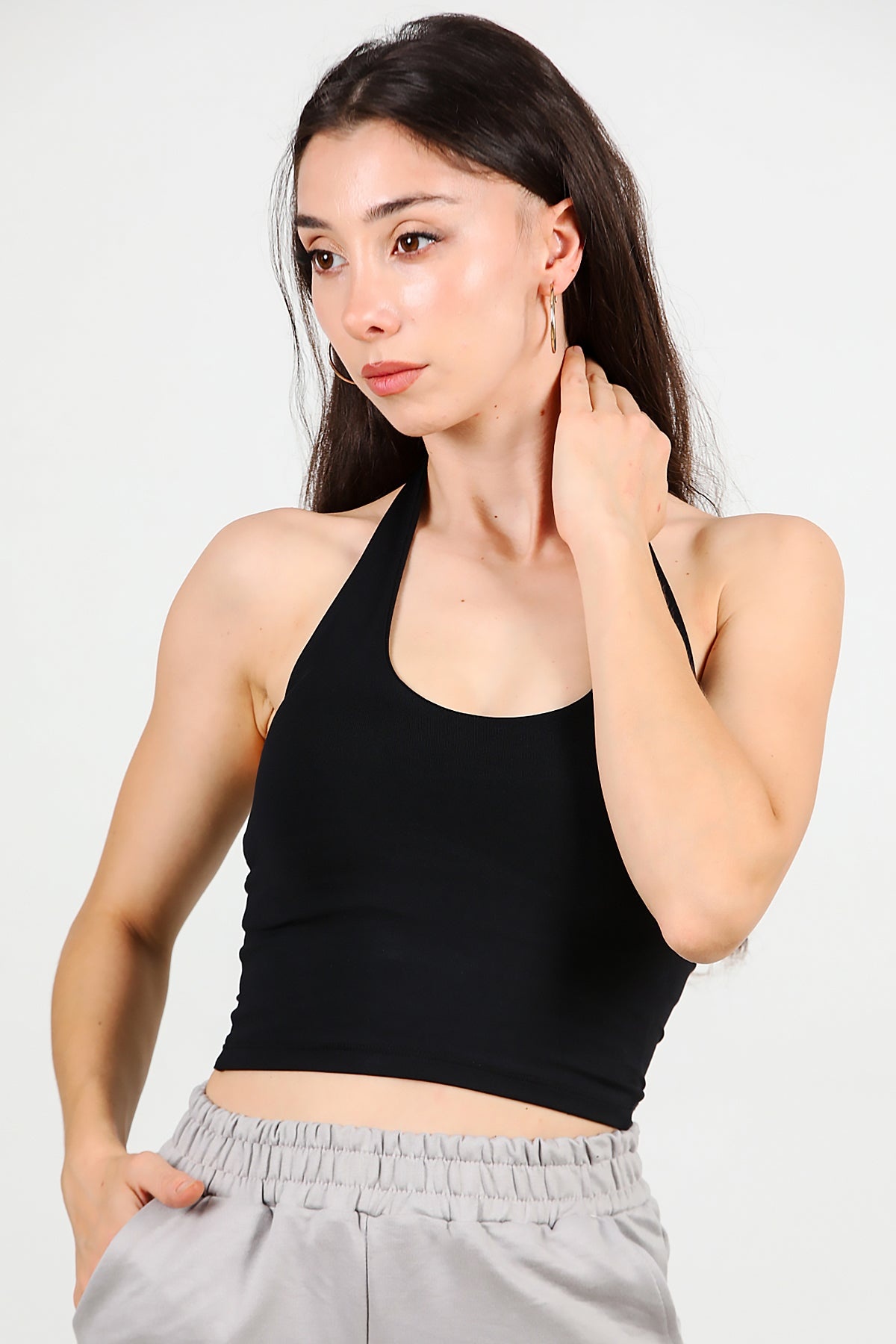 Kadın Boyundan Geçmeli Kısa Bluz Siyah