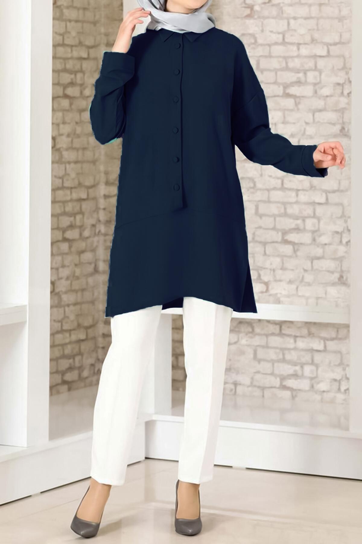 Kadın Düğmeli Tunik Lacivert