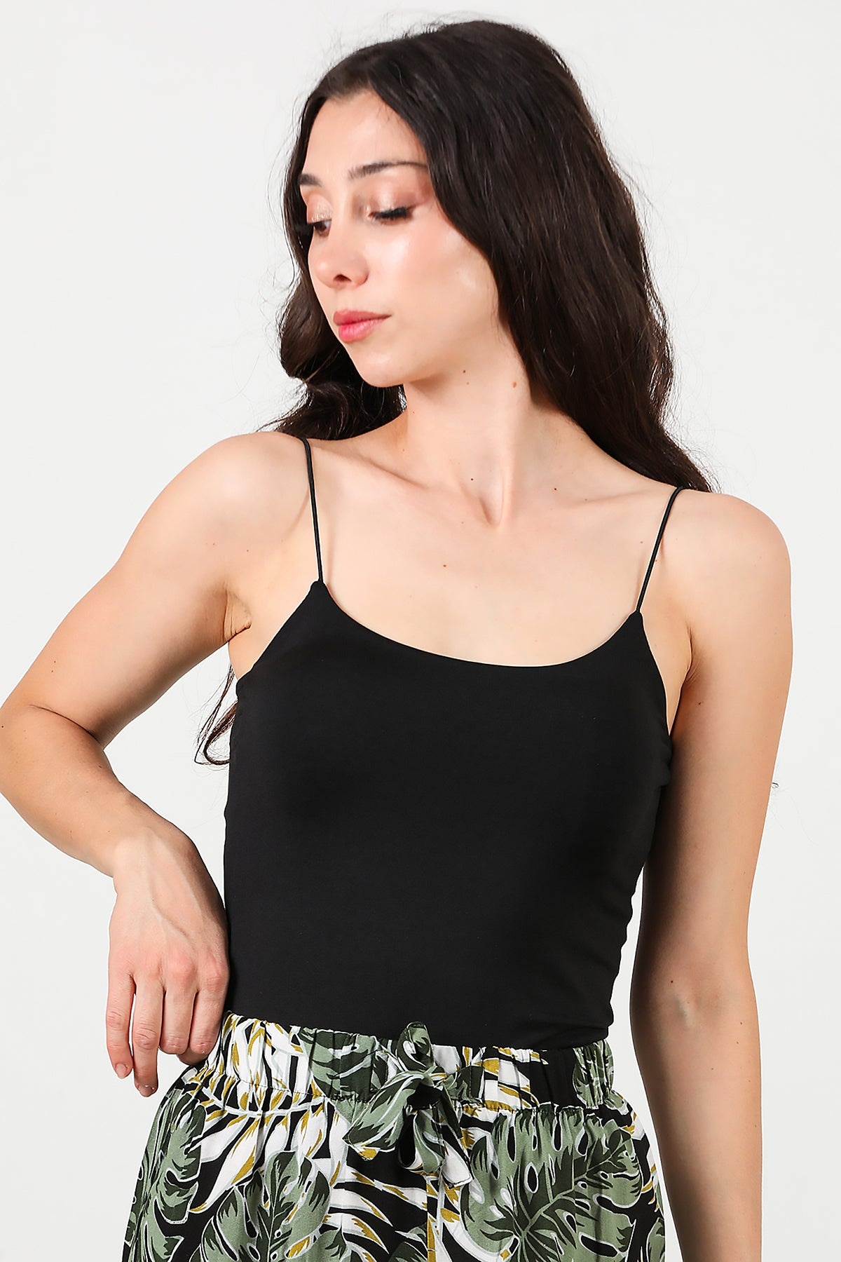 Kadın İp Askılı Bluz Siyah Siyah
