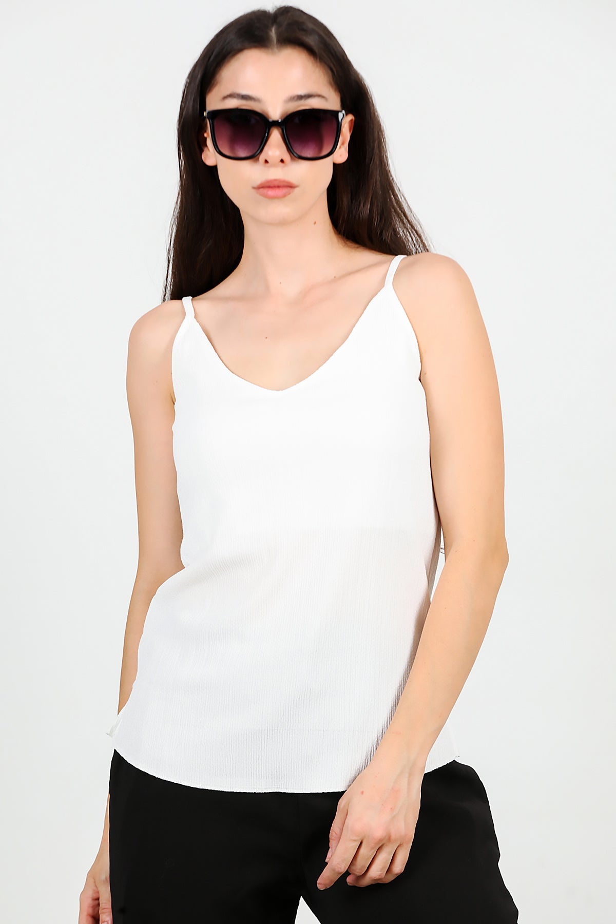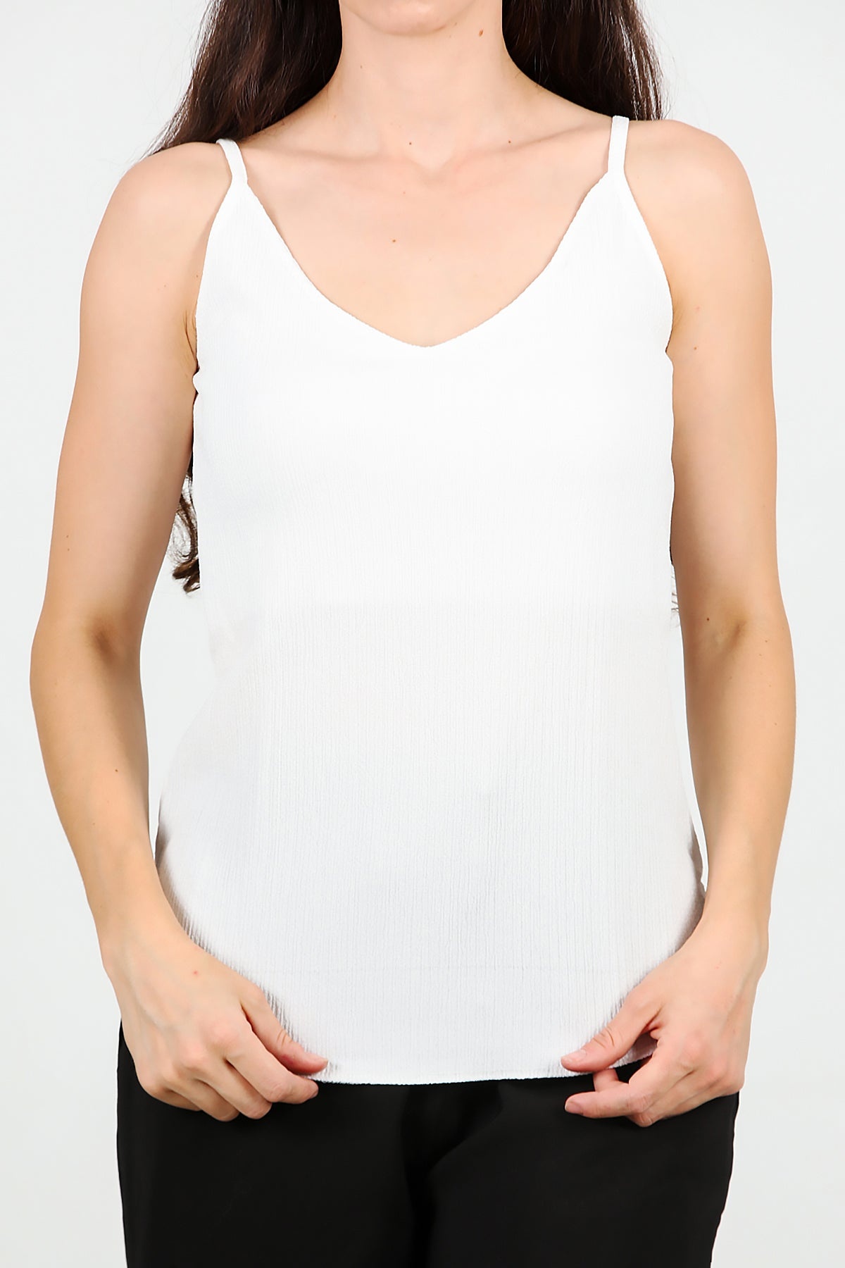 Kadın İp Askılı Krinkıl Bluz Ekru