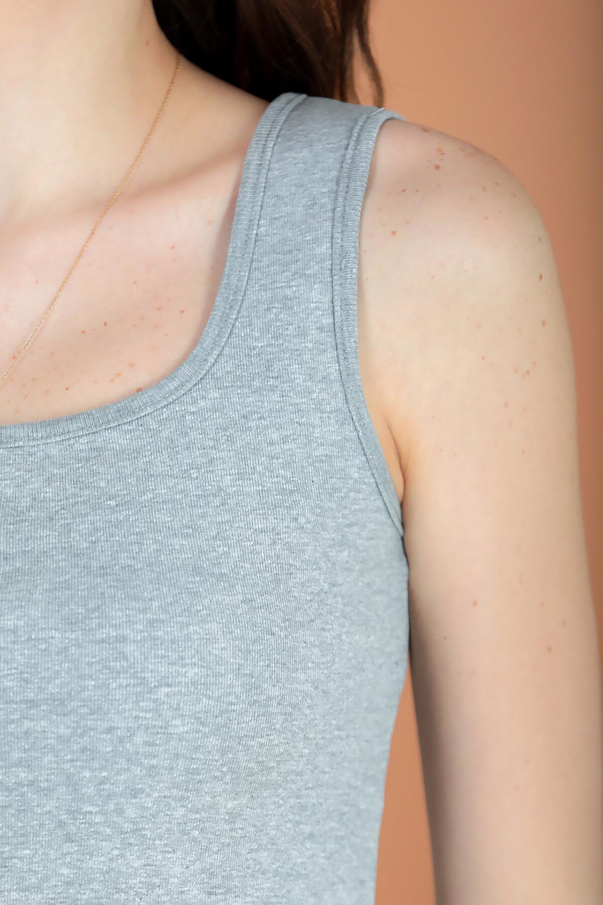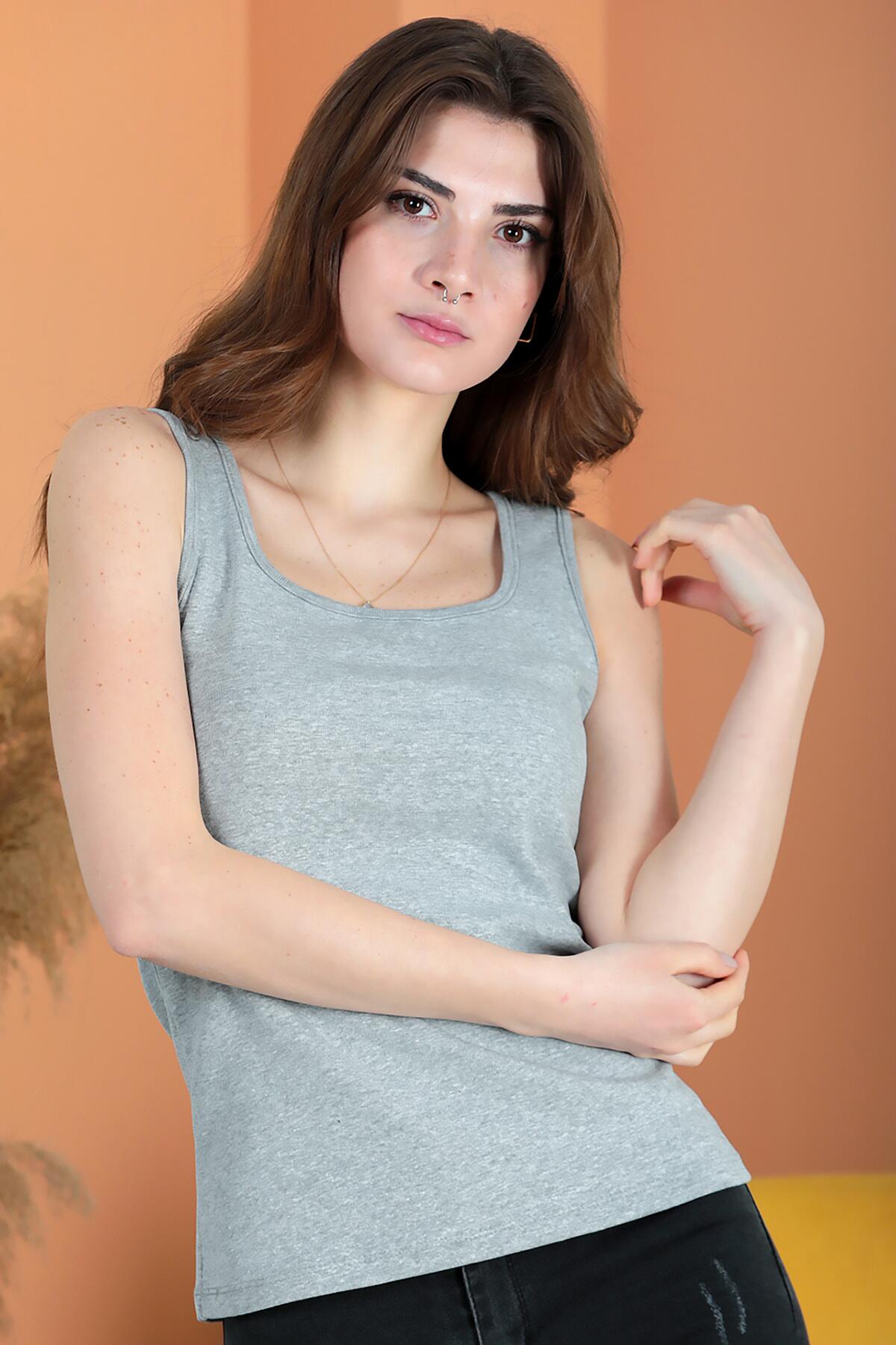Kadın Kalın Askılı Bluz Gri