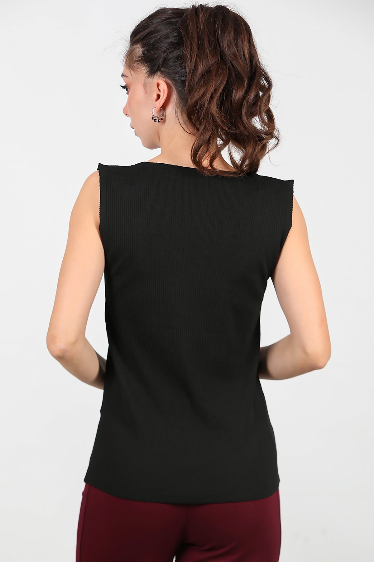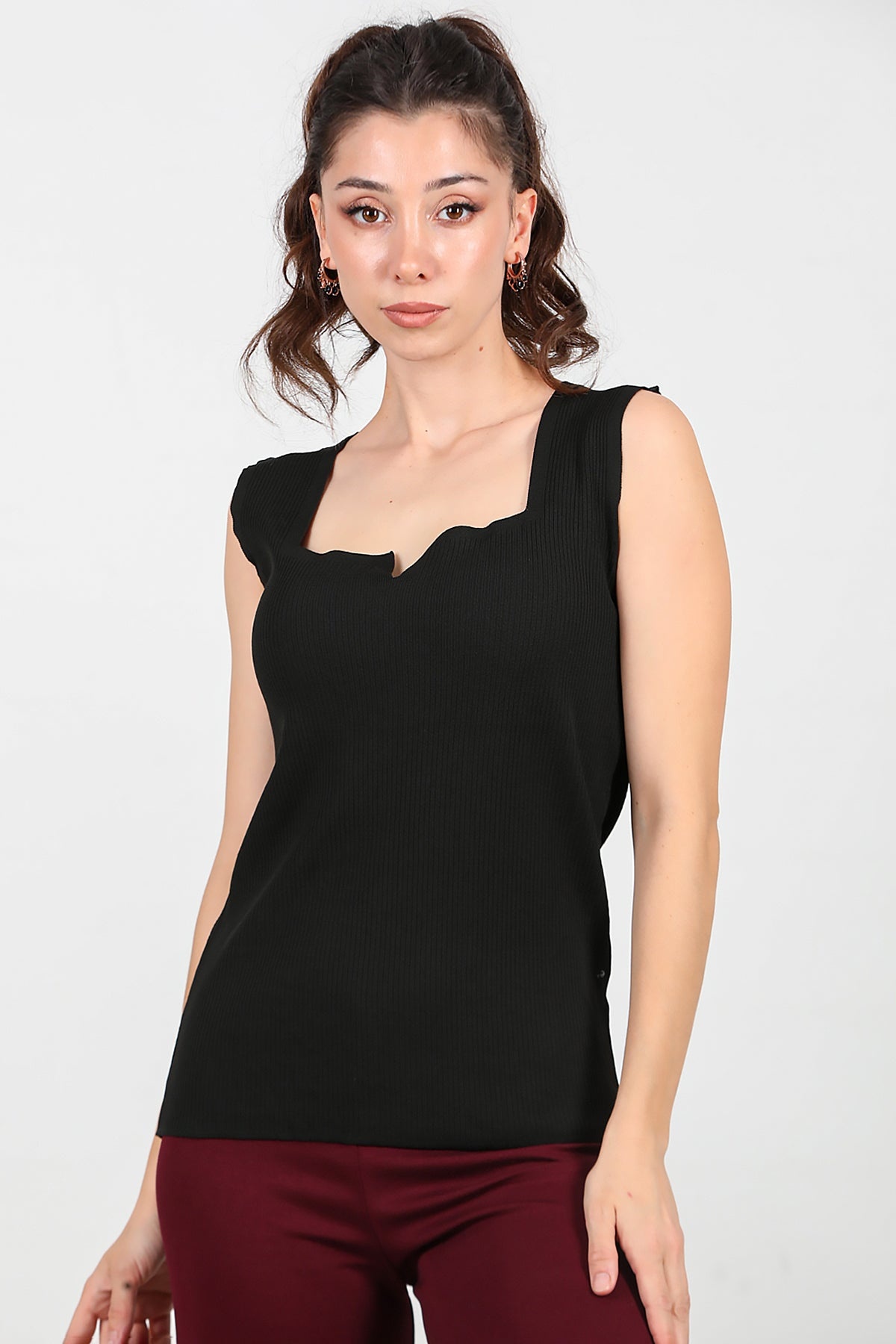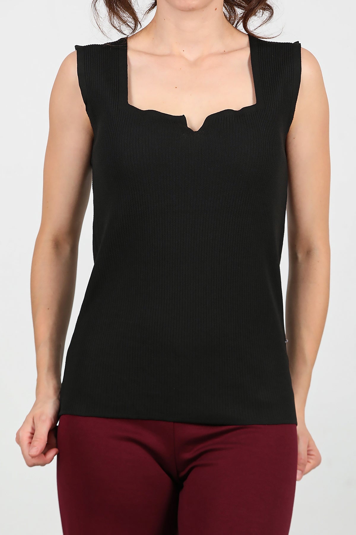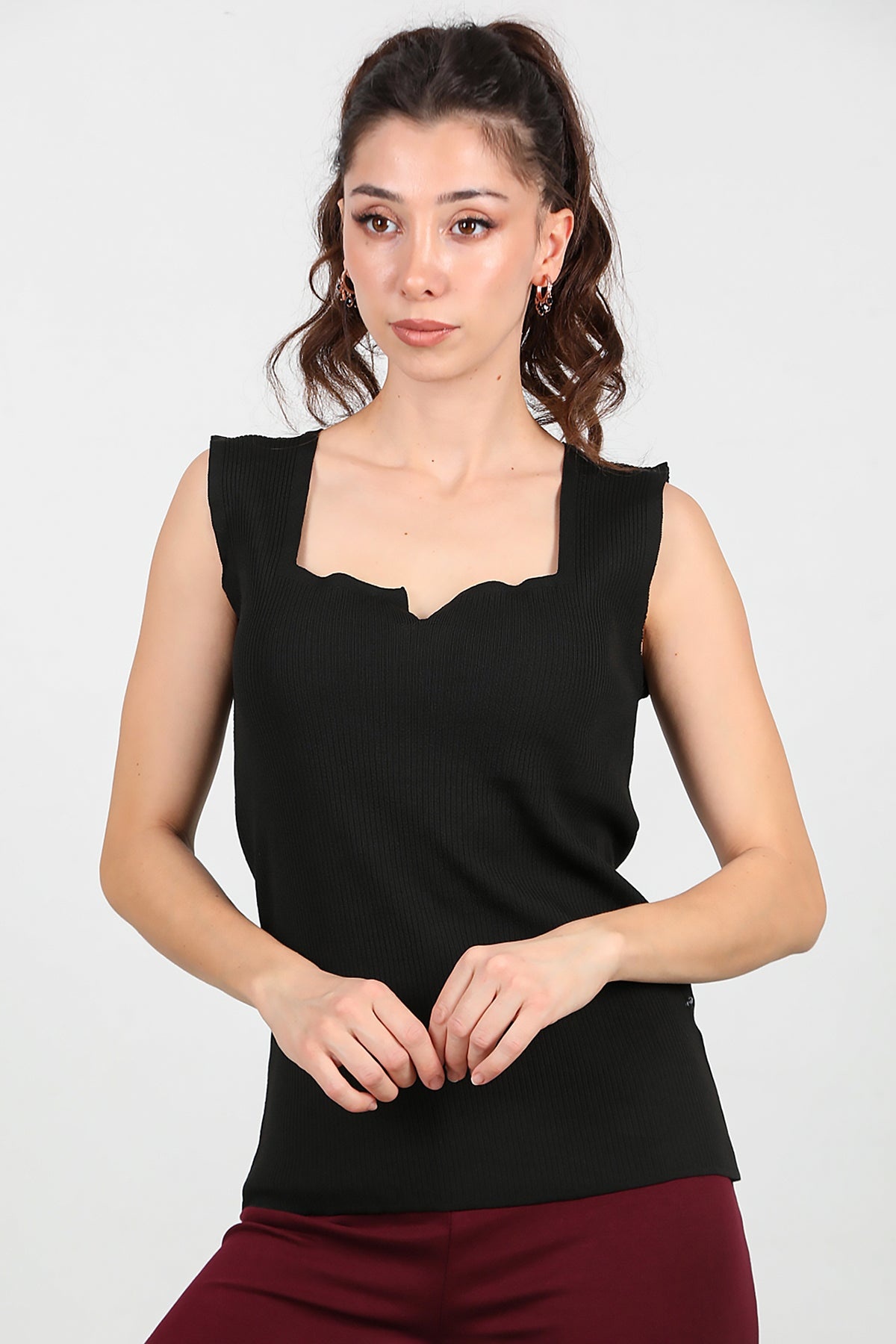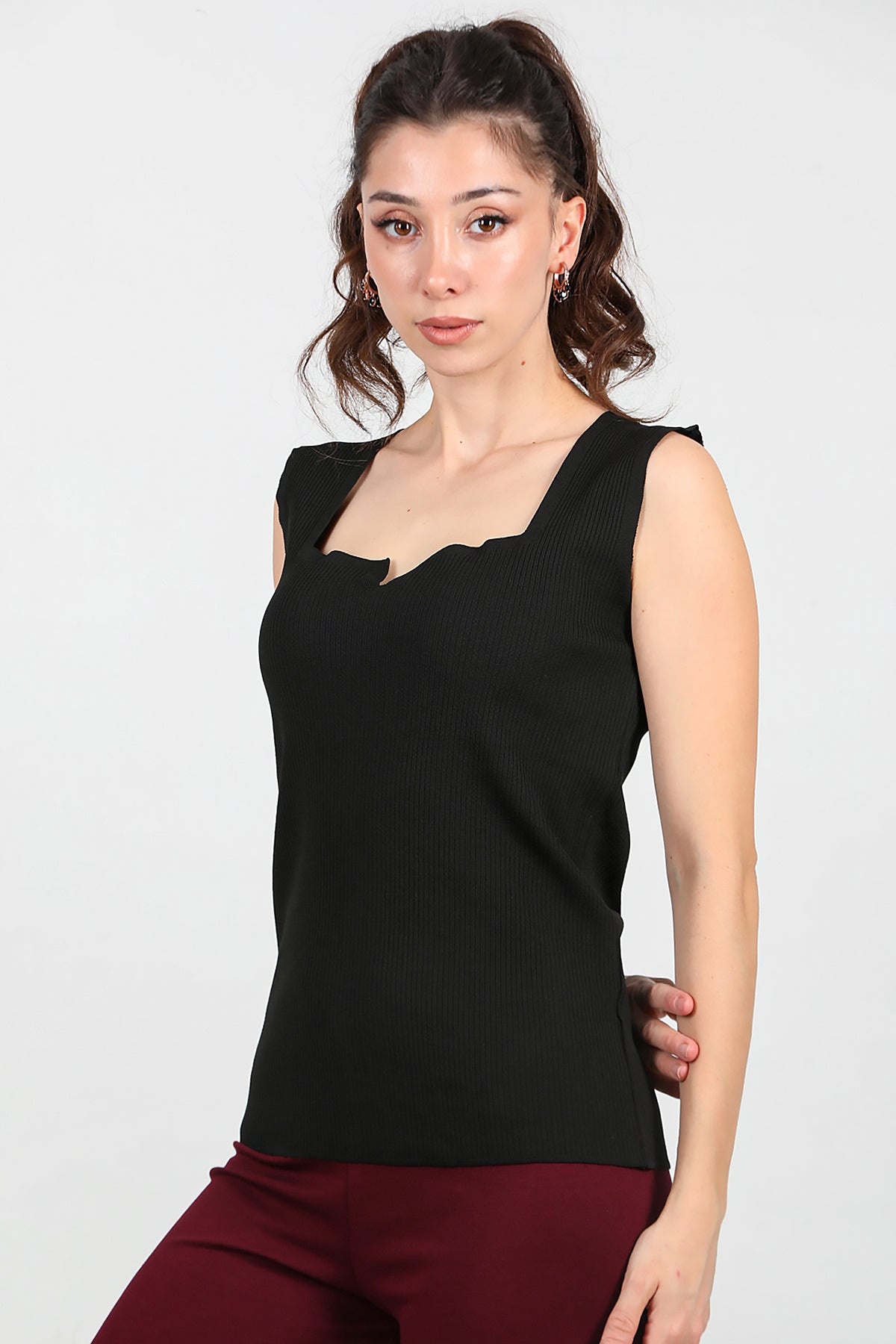 Kadın Kare Yaka Fitilli Bluz Siyah