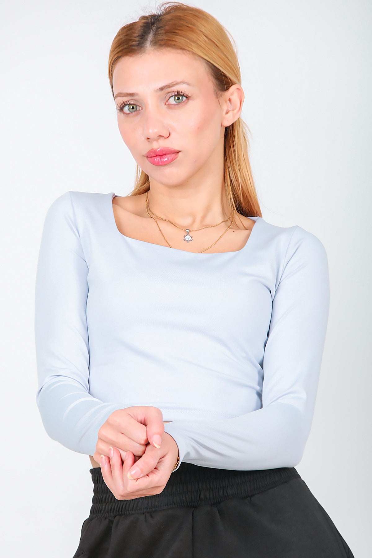 Numune Bedeni: 36Numune Boyu: 37 cmKumaş Tipi: %80 Polyemid %20 ElestanKol: Uzun KolYaka: Kare Yaka