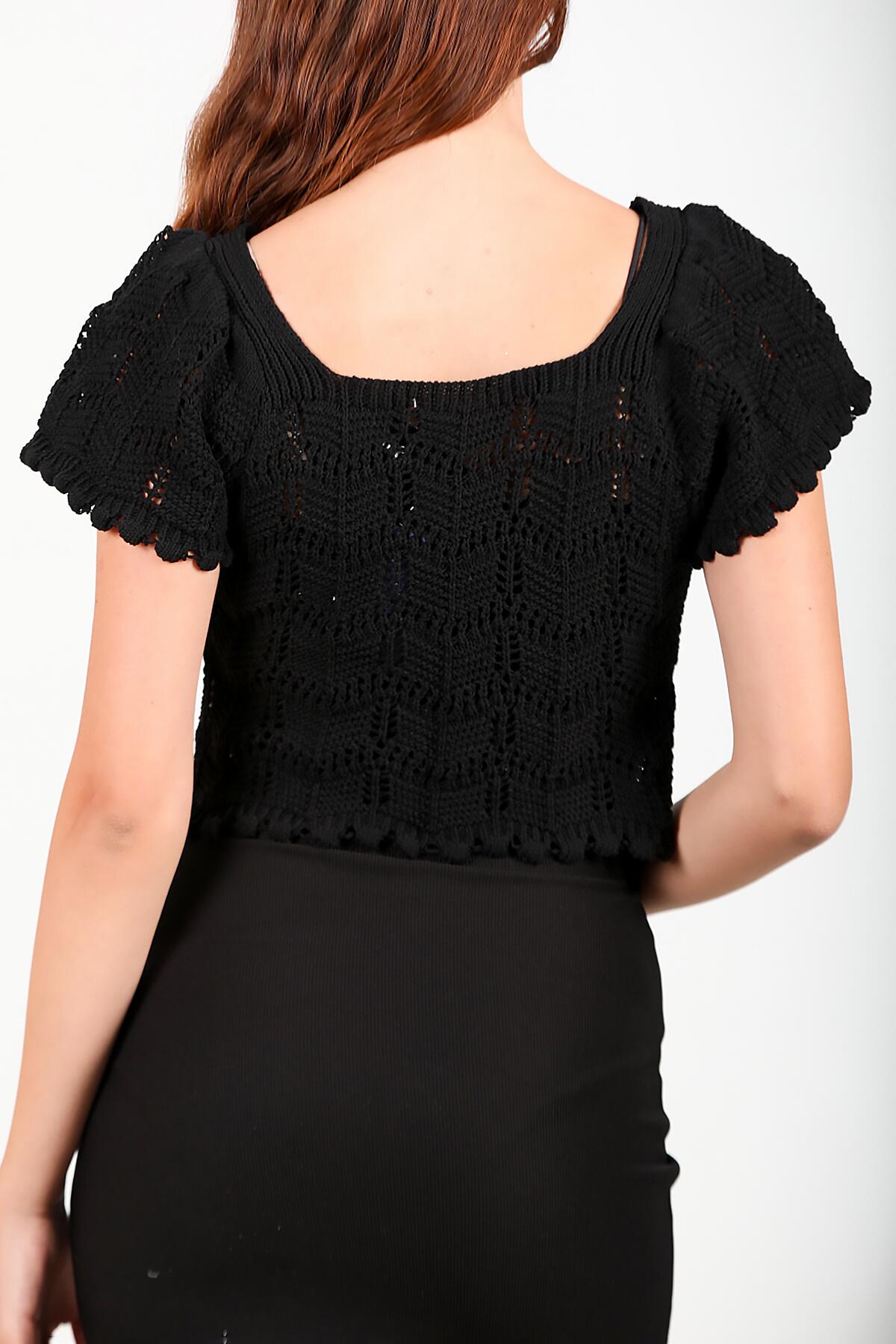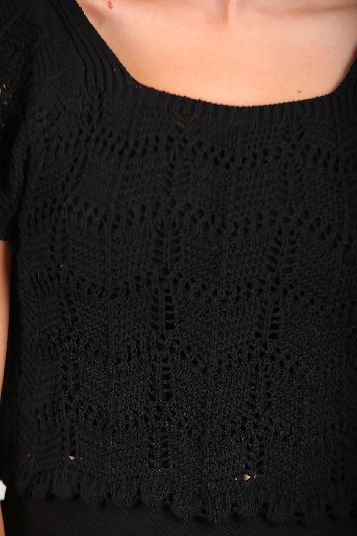 Kadın Kare Yaka Kısa Triko Bluz Siyah