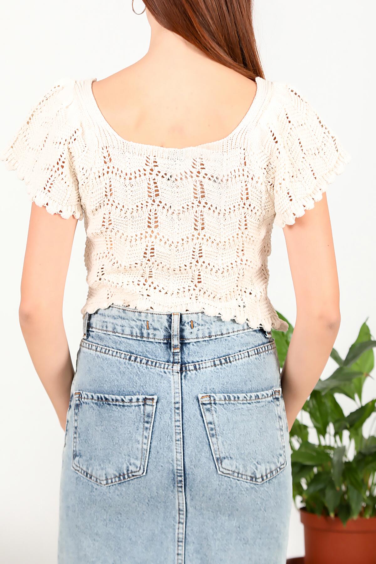 Kadın Kare Yaka Kısa Bluz