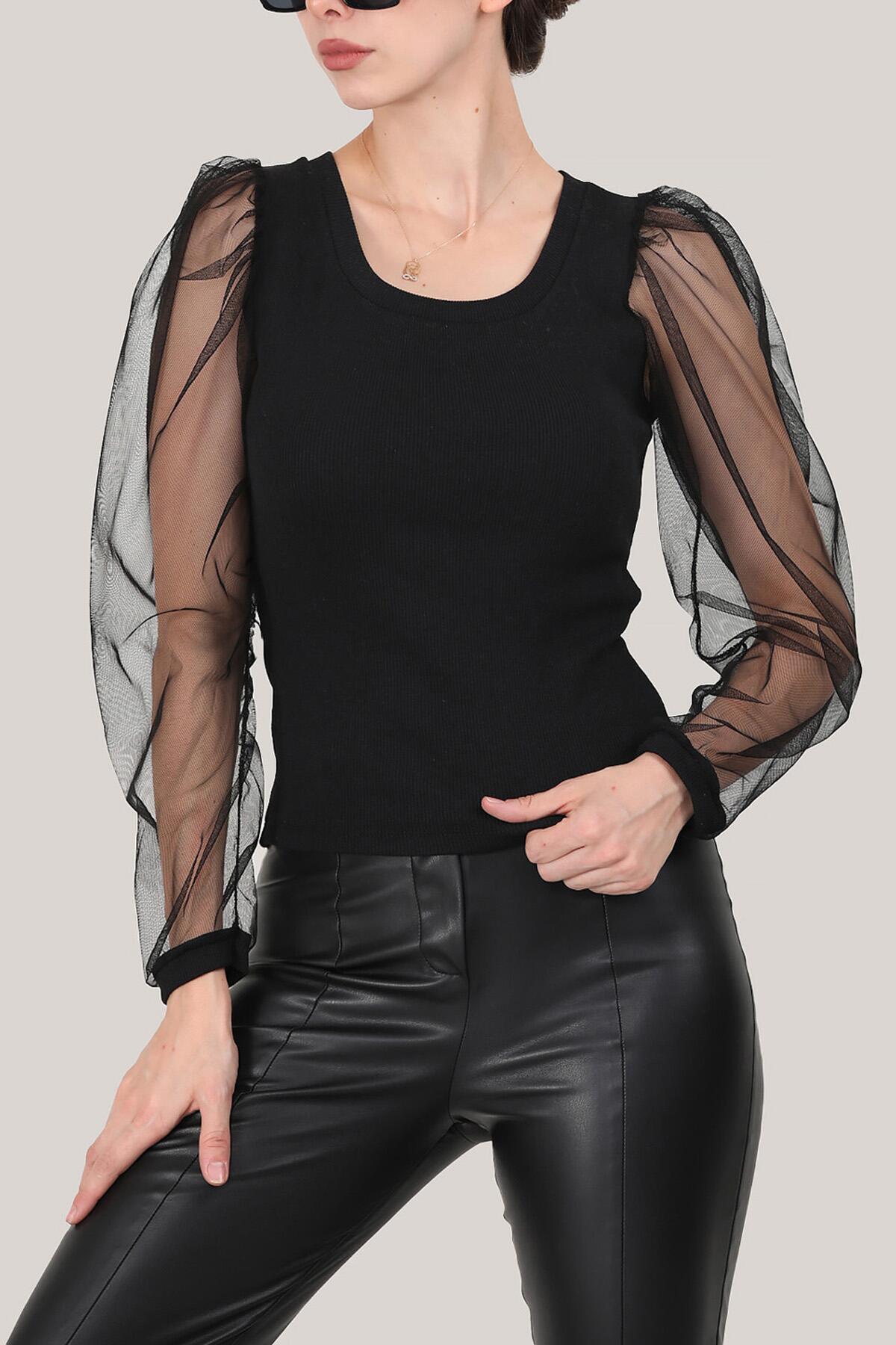 Kadın Parmak Geçmeli Bisiklet Yaka Bluz