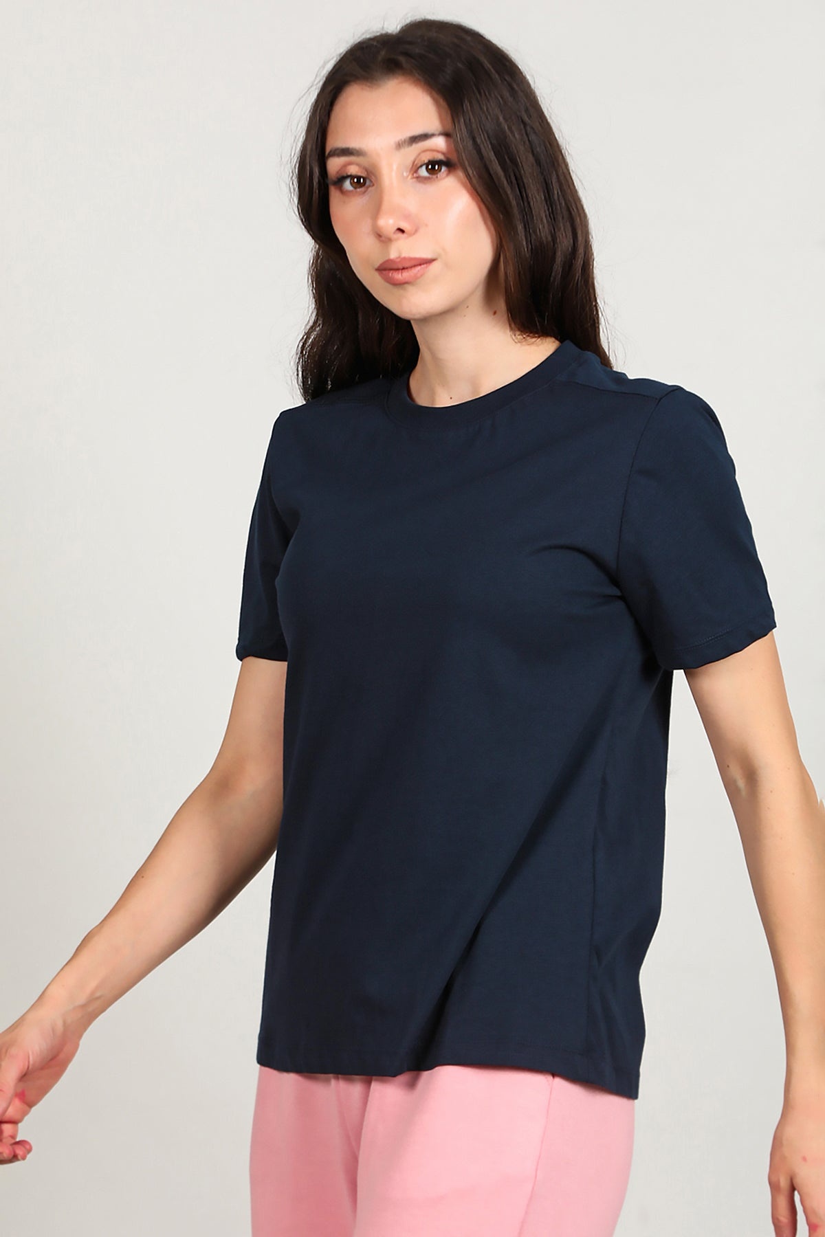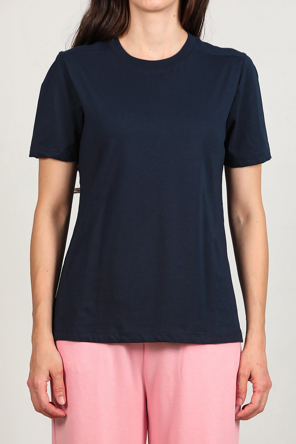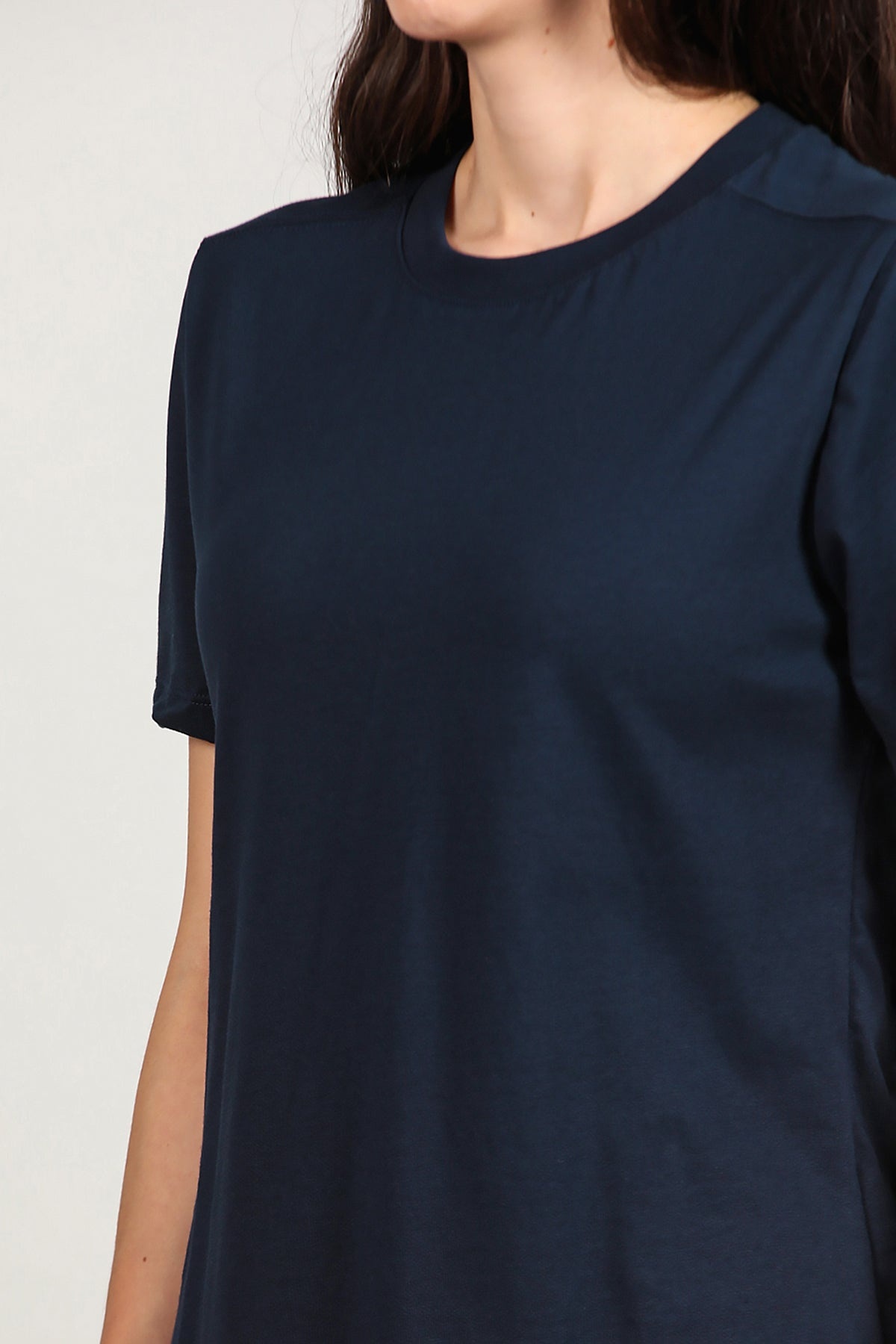 Kadın Omzu Çimalı Basıc Tshırt Lacivert