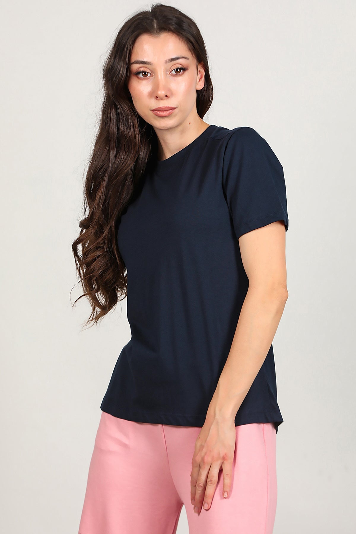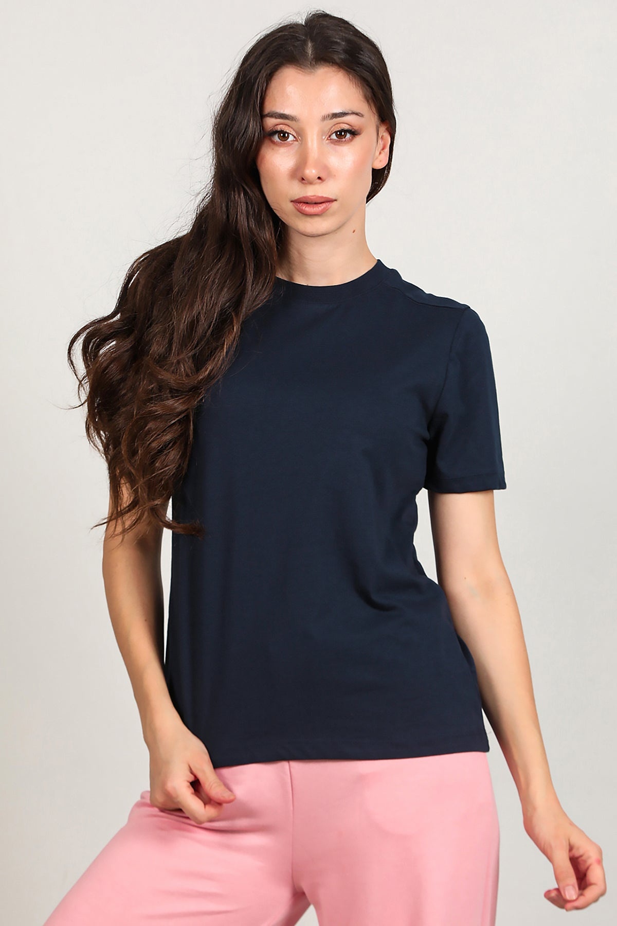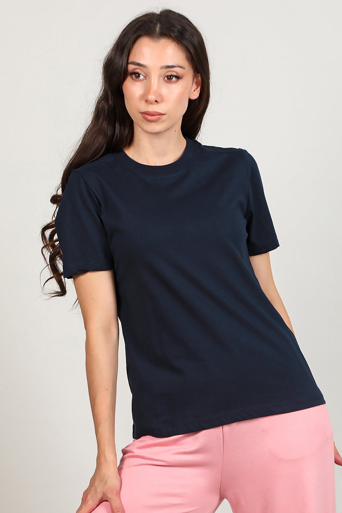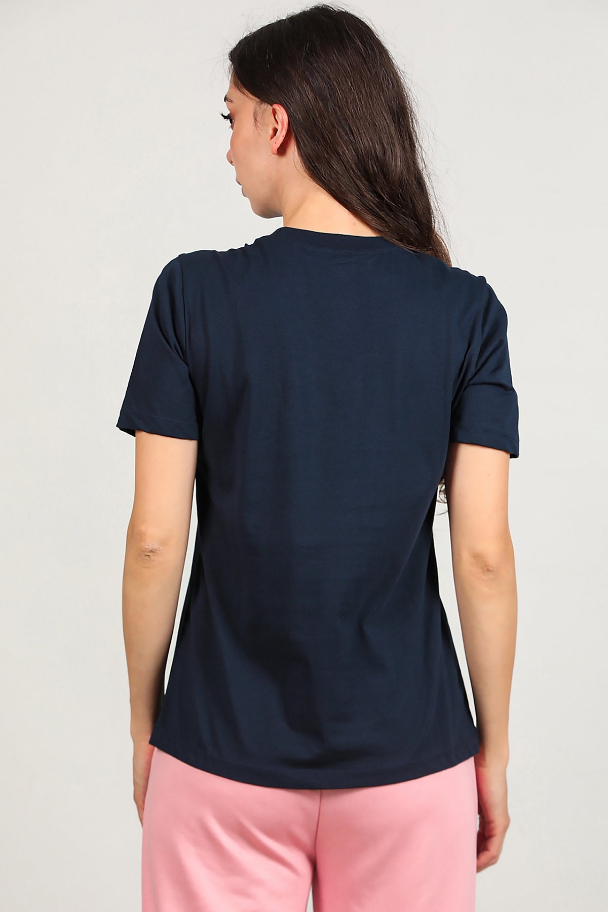 Kadın Omzu Çimalı Basıc Tshırt Lacivert