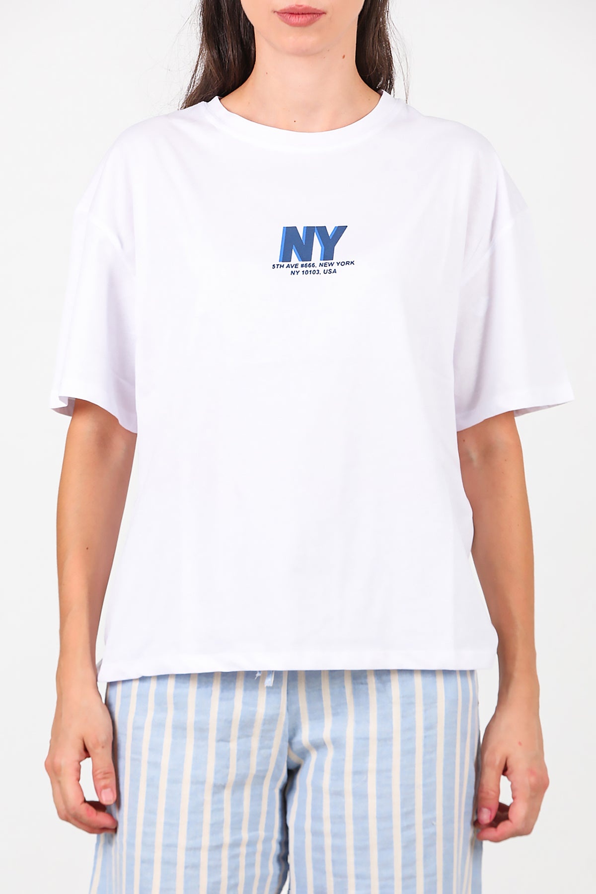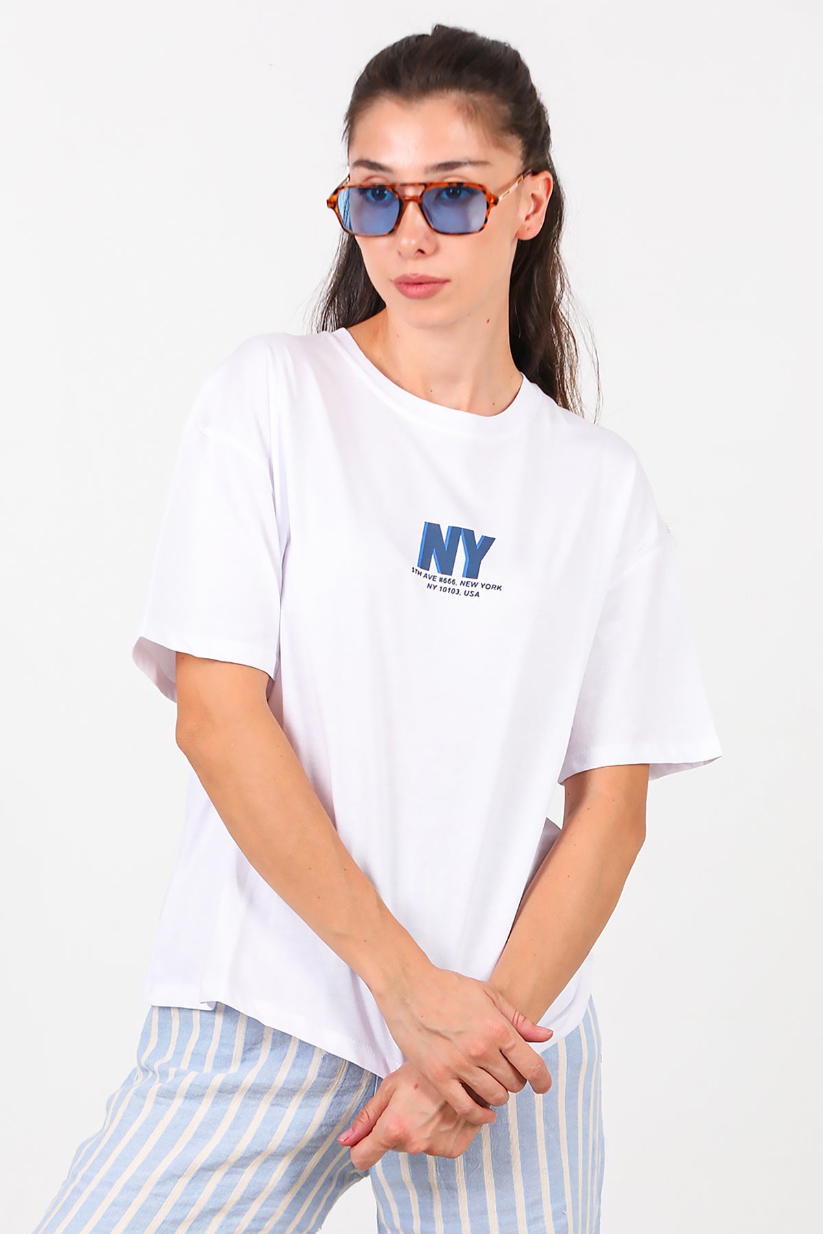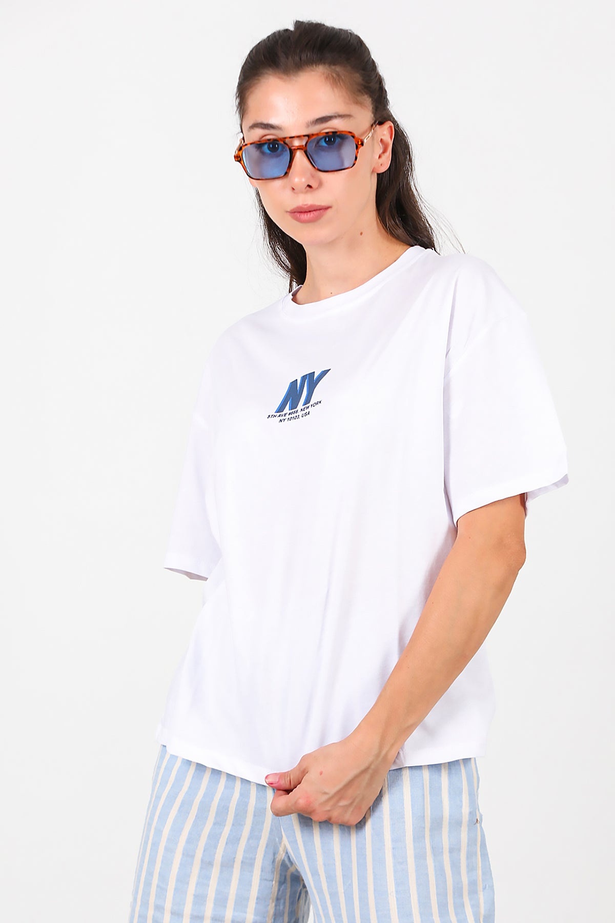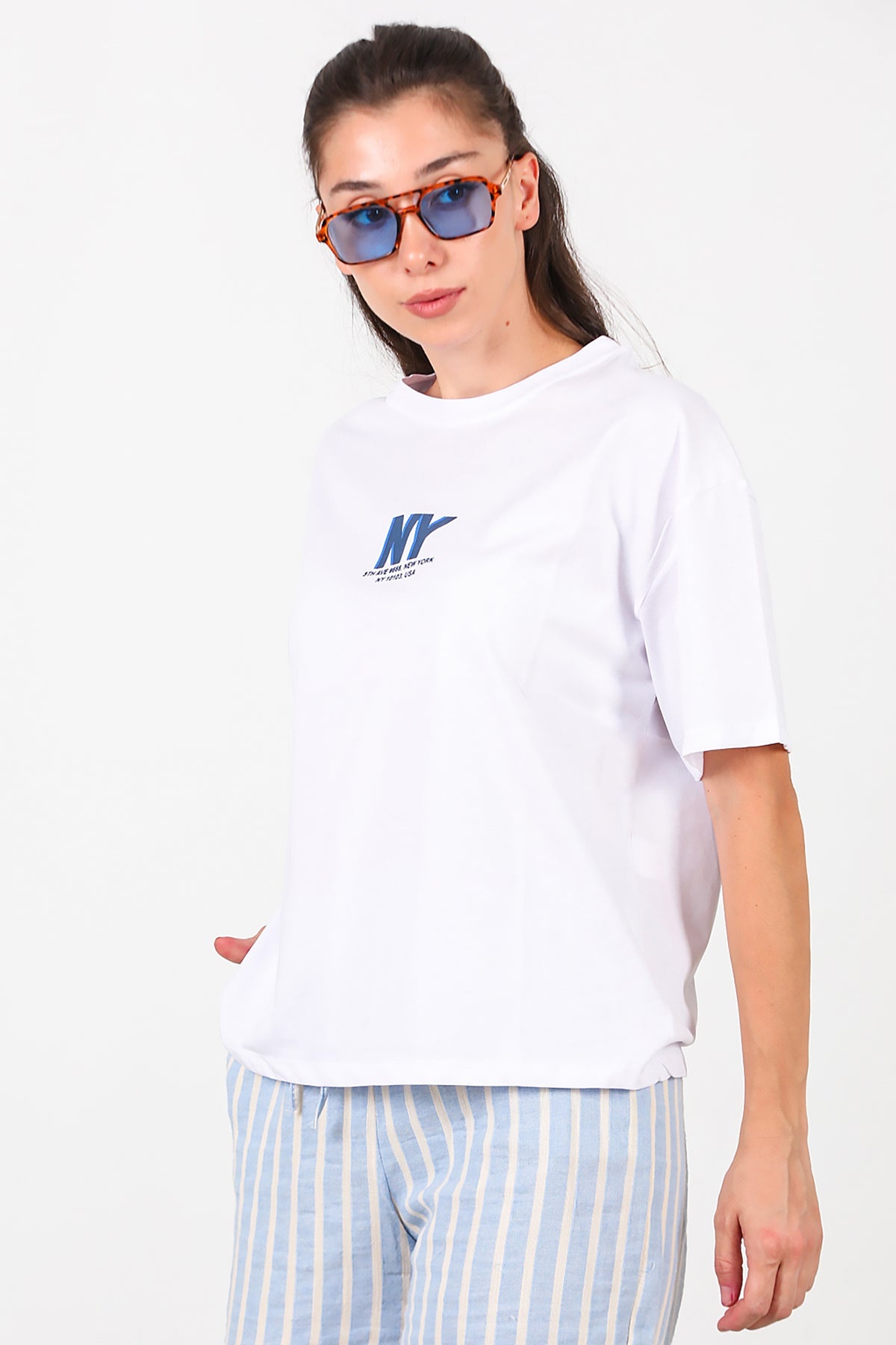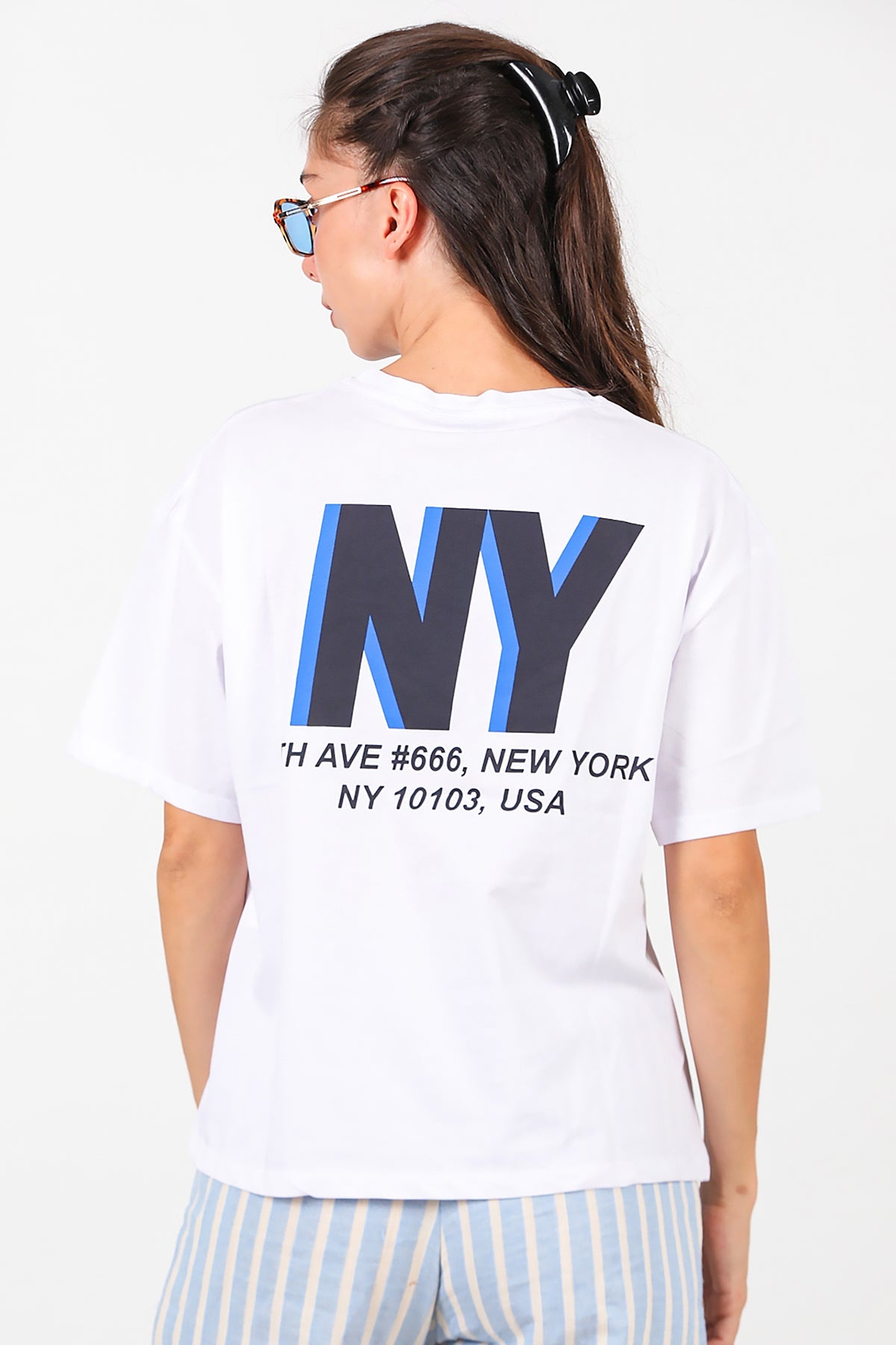 Kadın Ön Arka Baskılı Tshırt Beyaz
