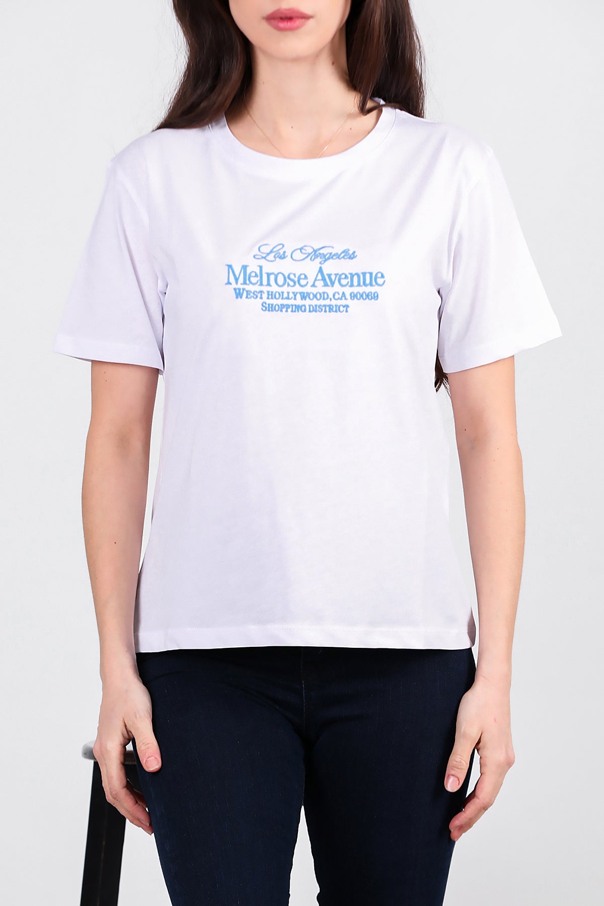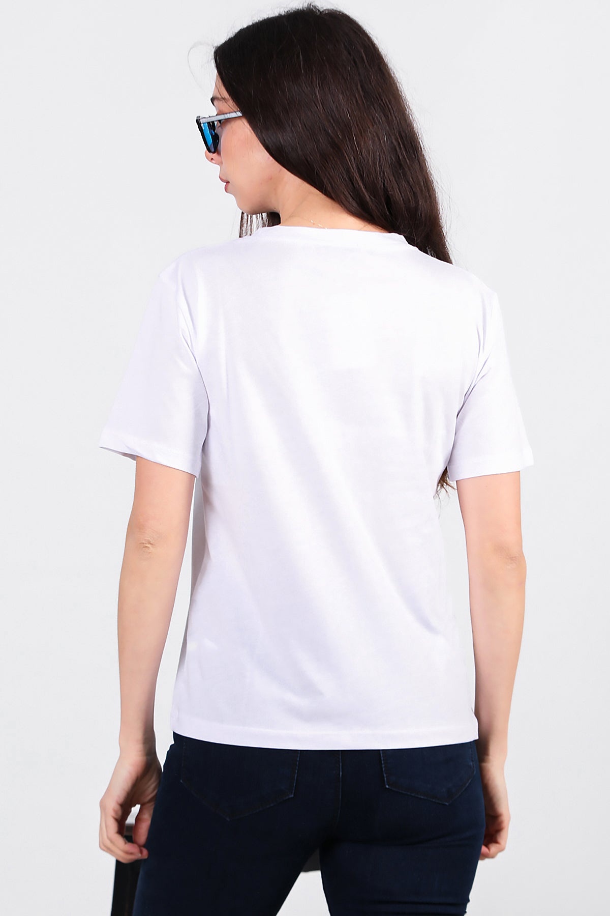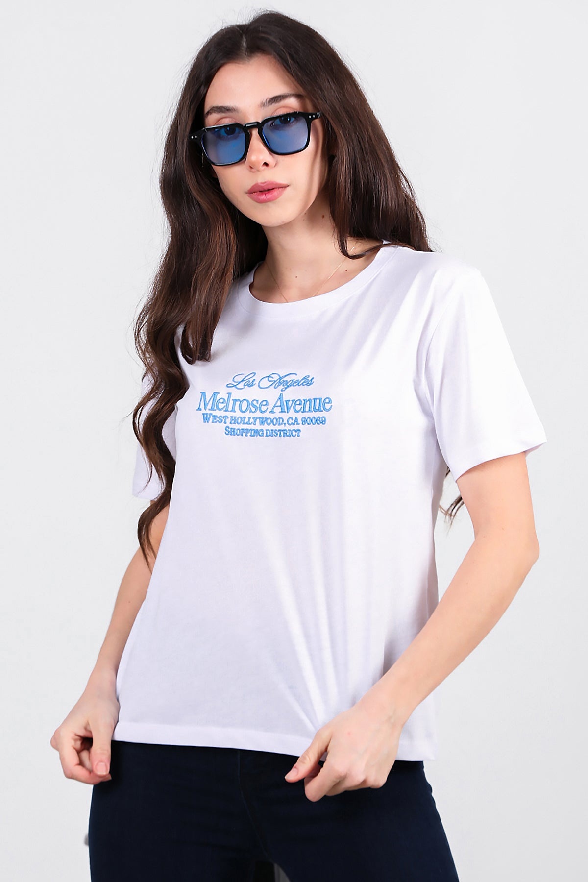 Kadın Ön Nakışlı Penye Tshırt Ekru