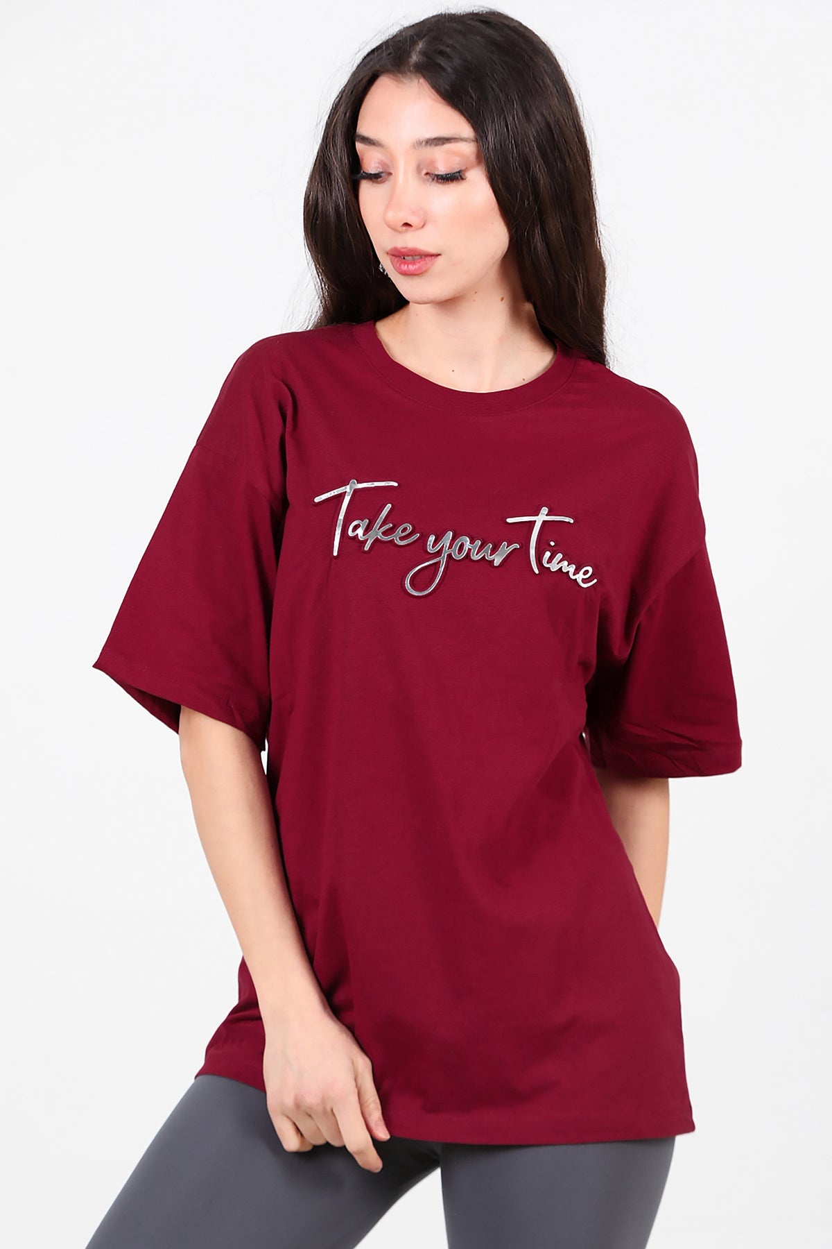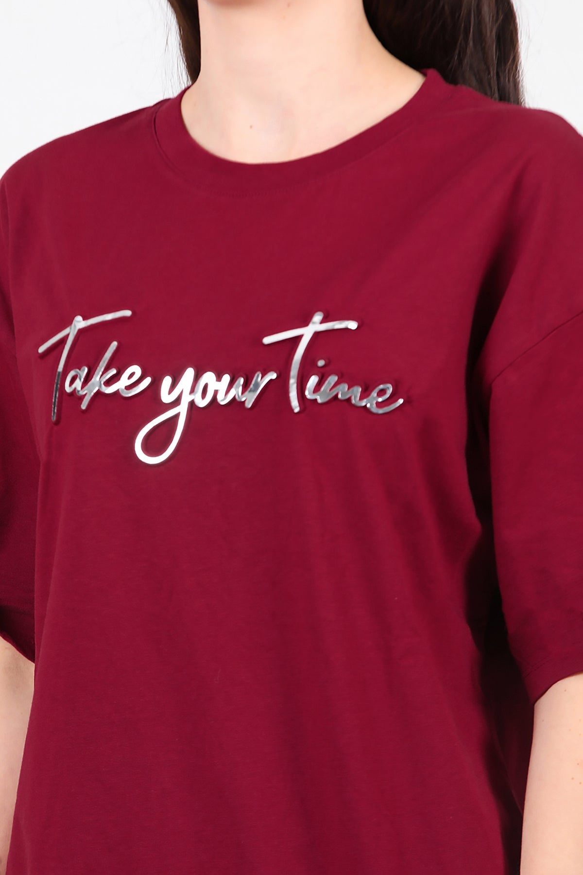 Kadın Ön Yazılı T-shirt Bordo