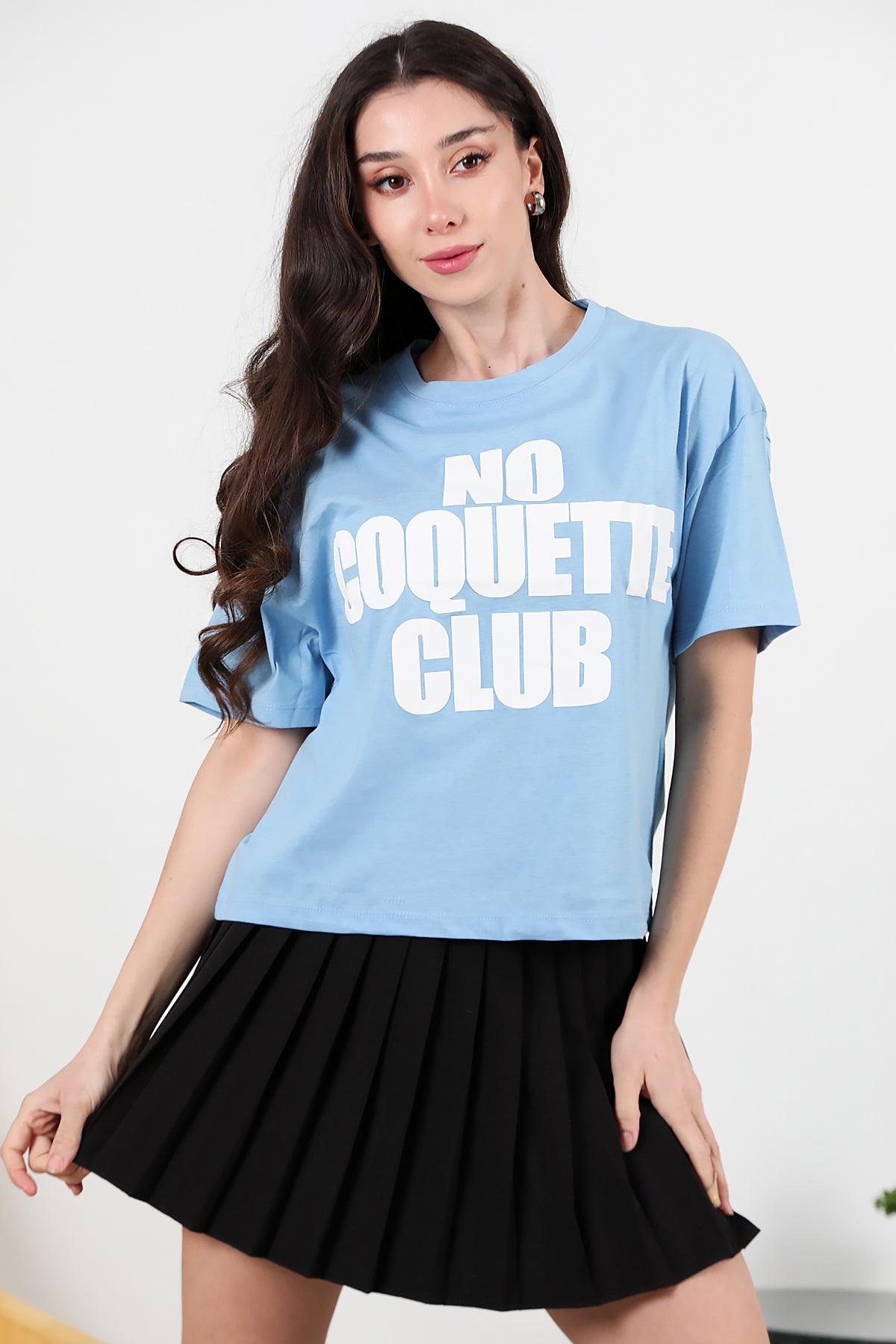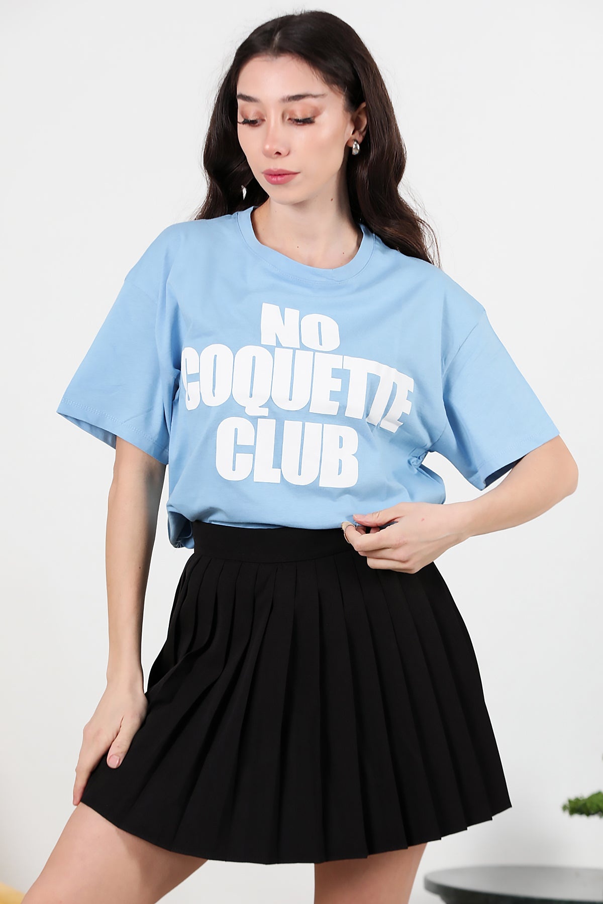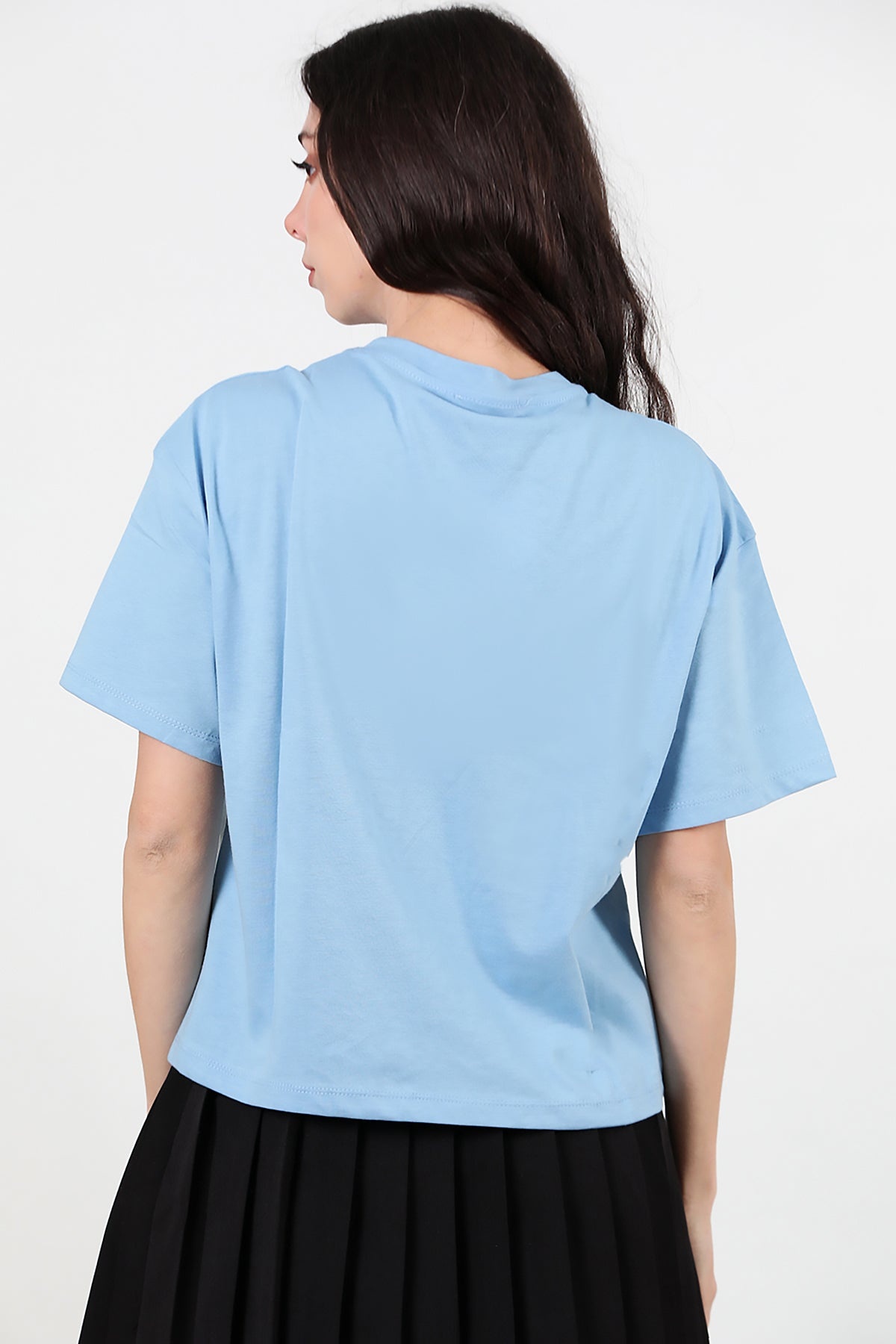 Kadın Önü Baskılı Oversize T-shirt Mavi
