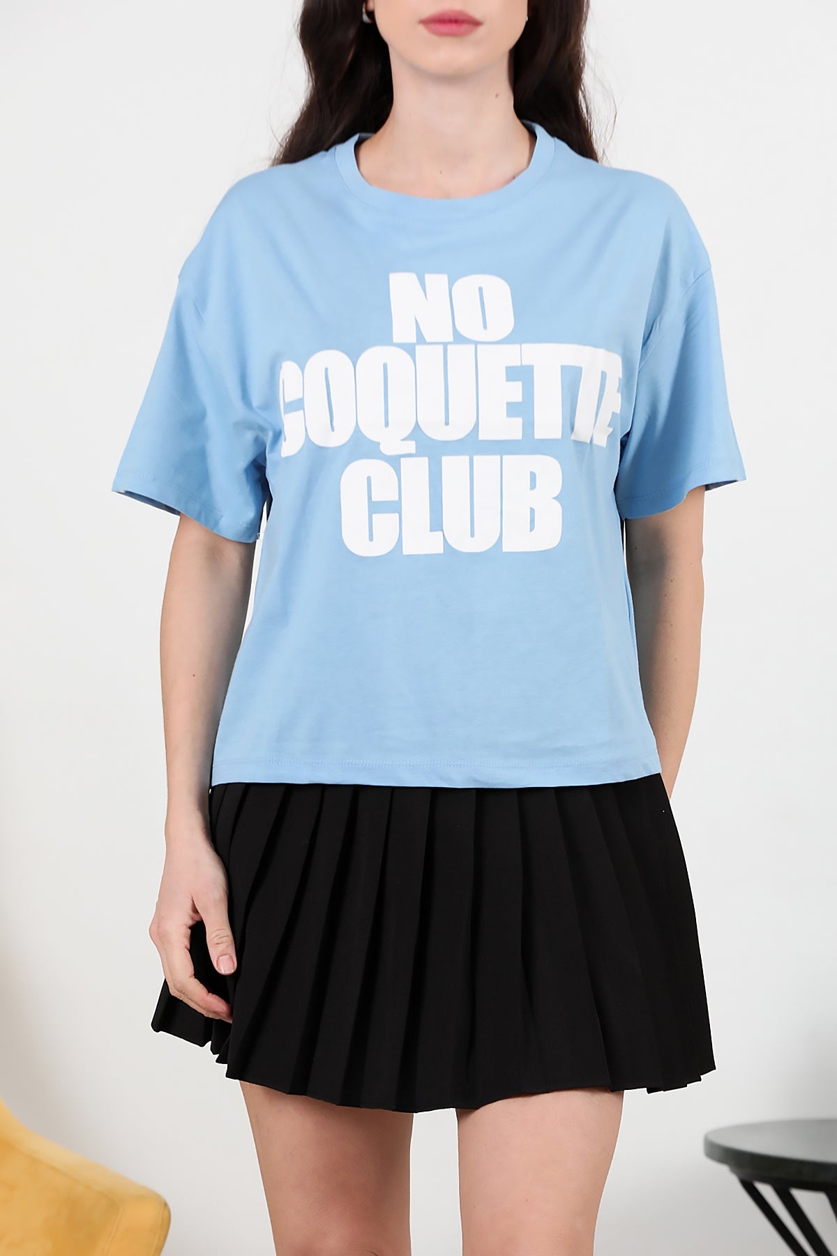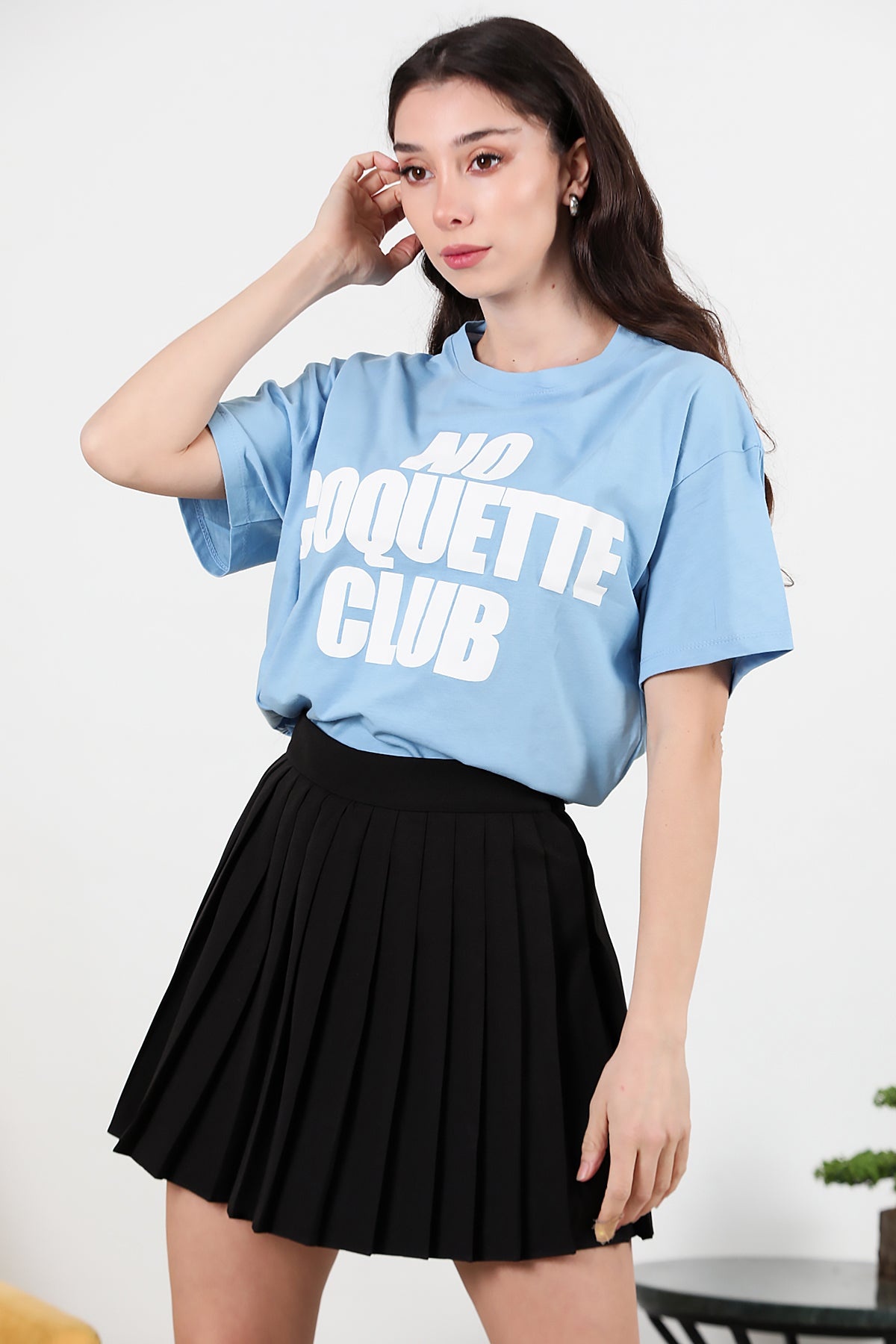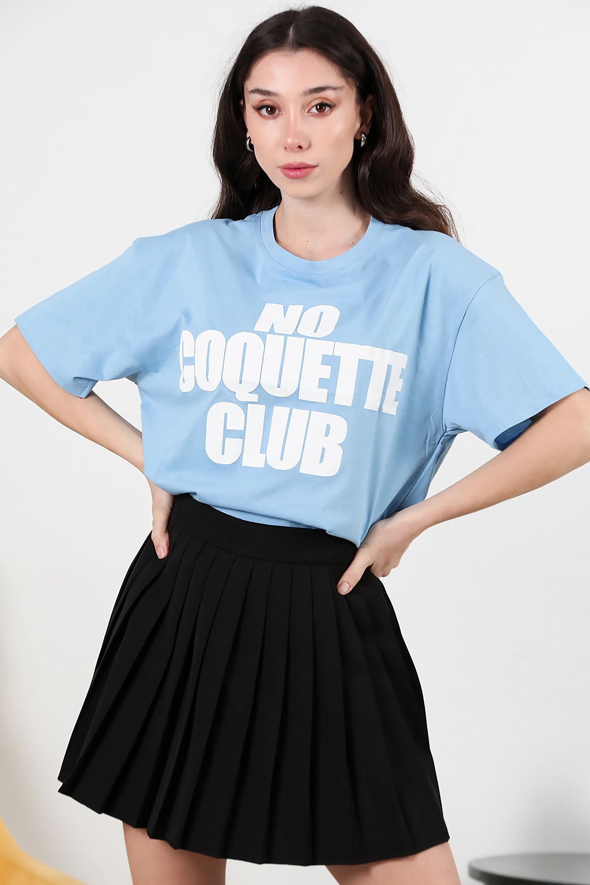 Kadın Önü Baskılı Oversize T-shirt Mavi