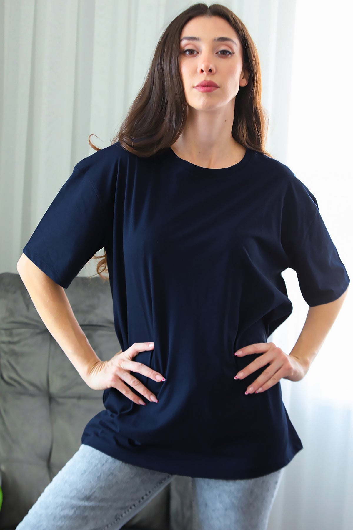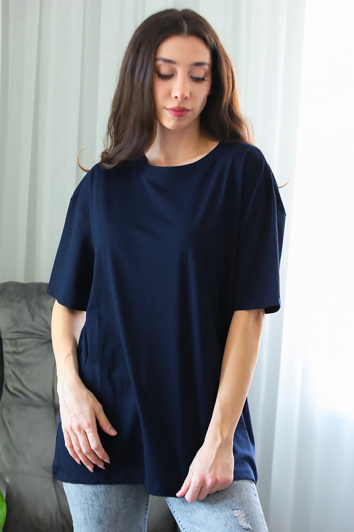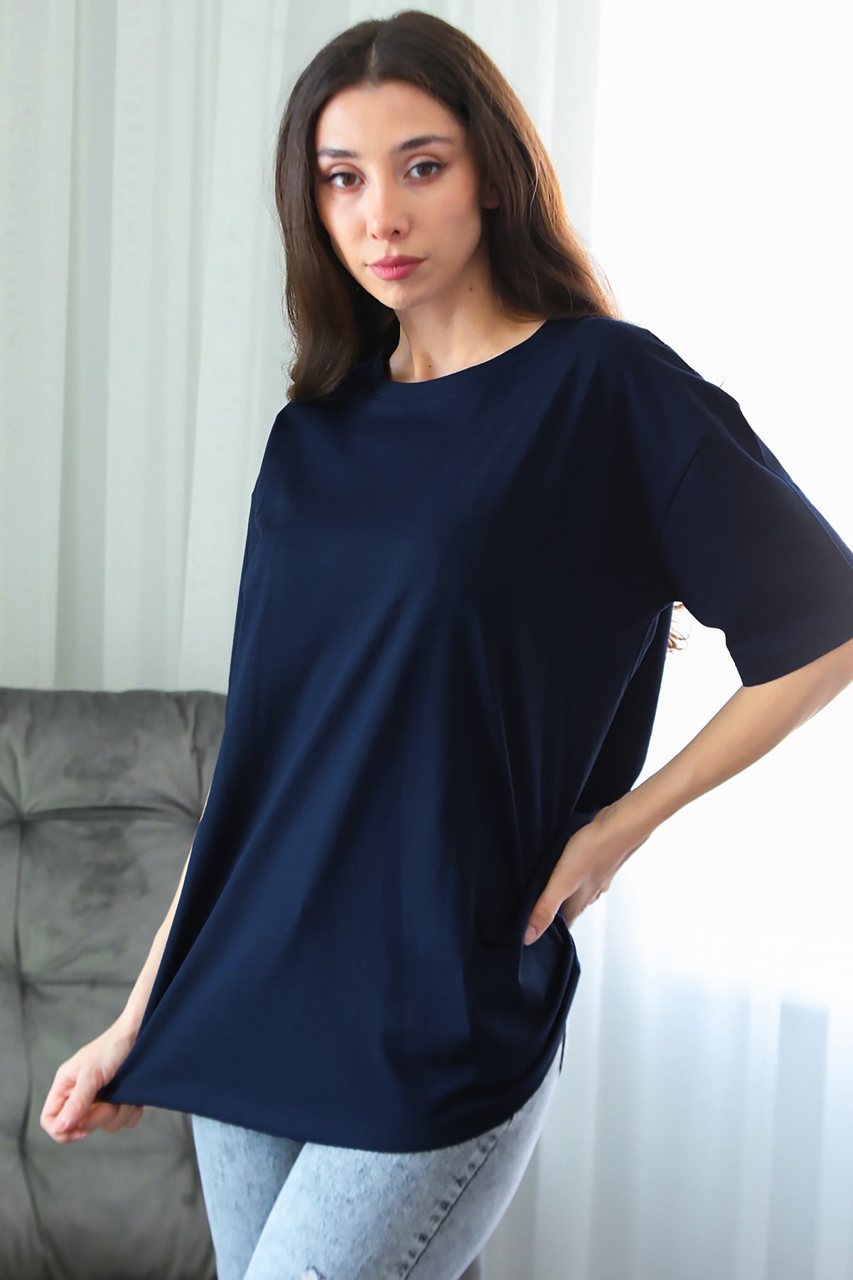 Kadın Oversize T-shirt Lacivert