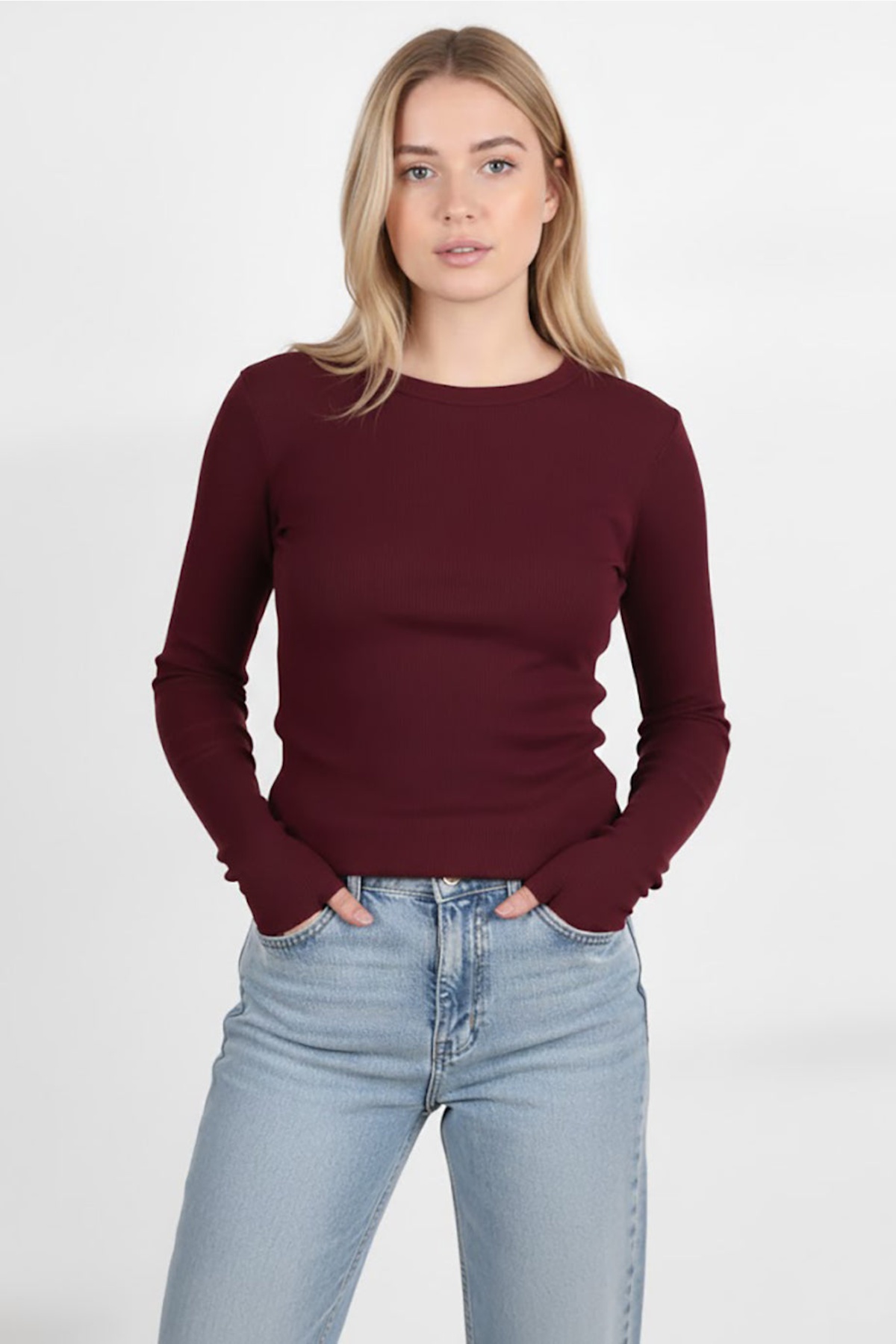 Kadın Parmak Geçmeli Bluz Bordo