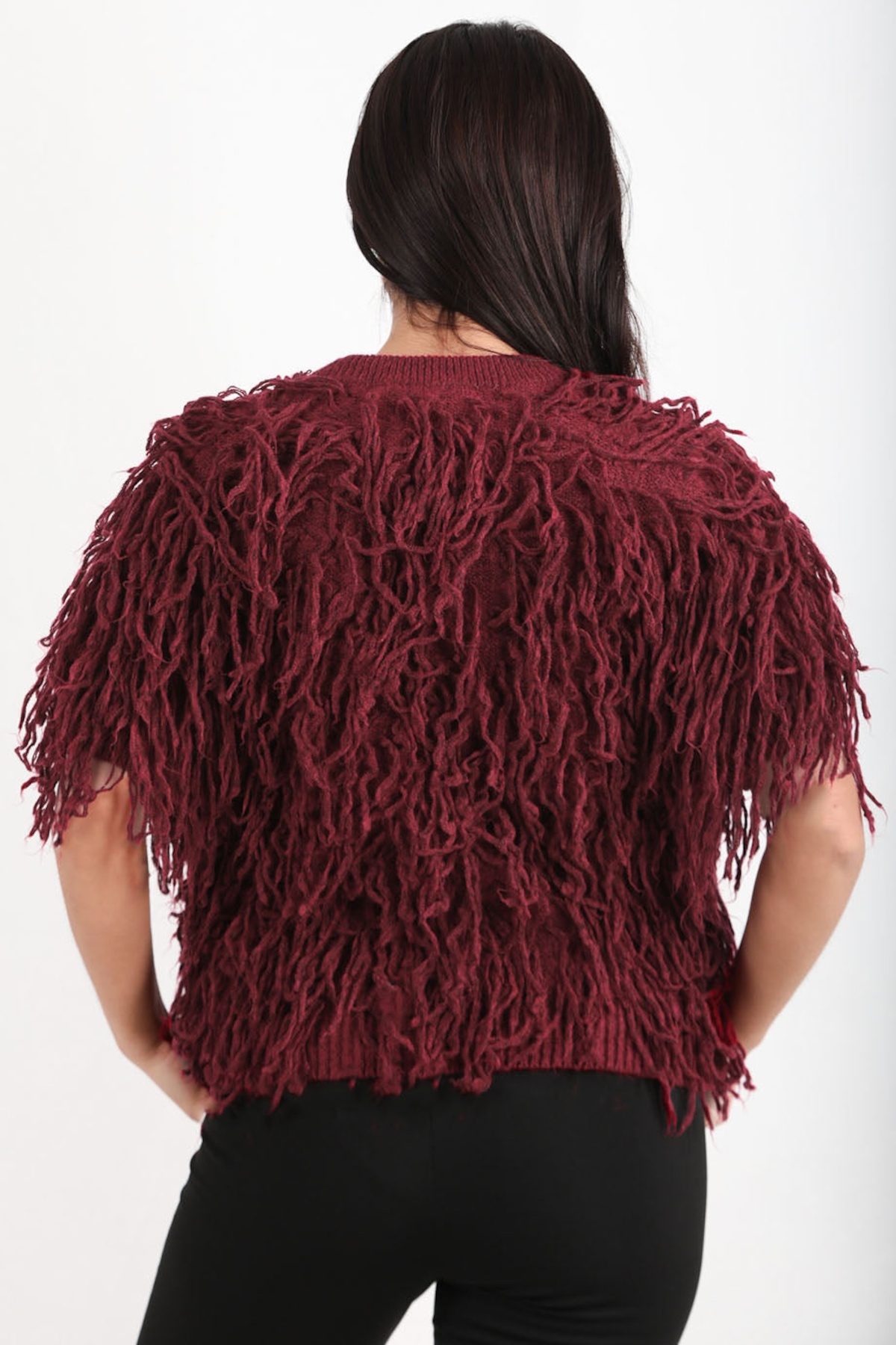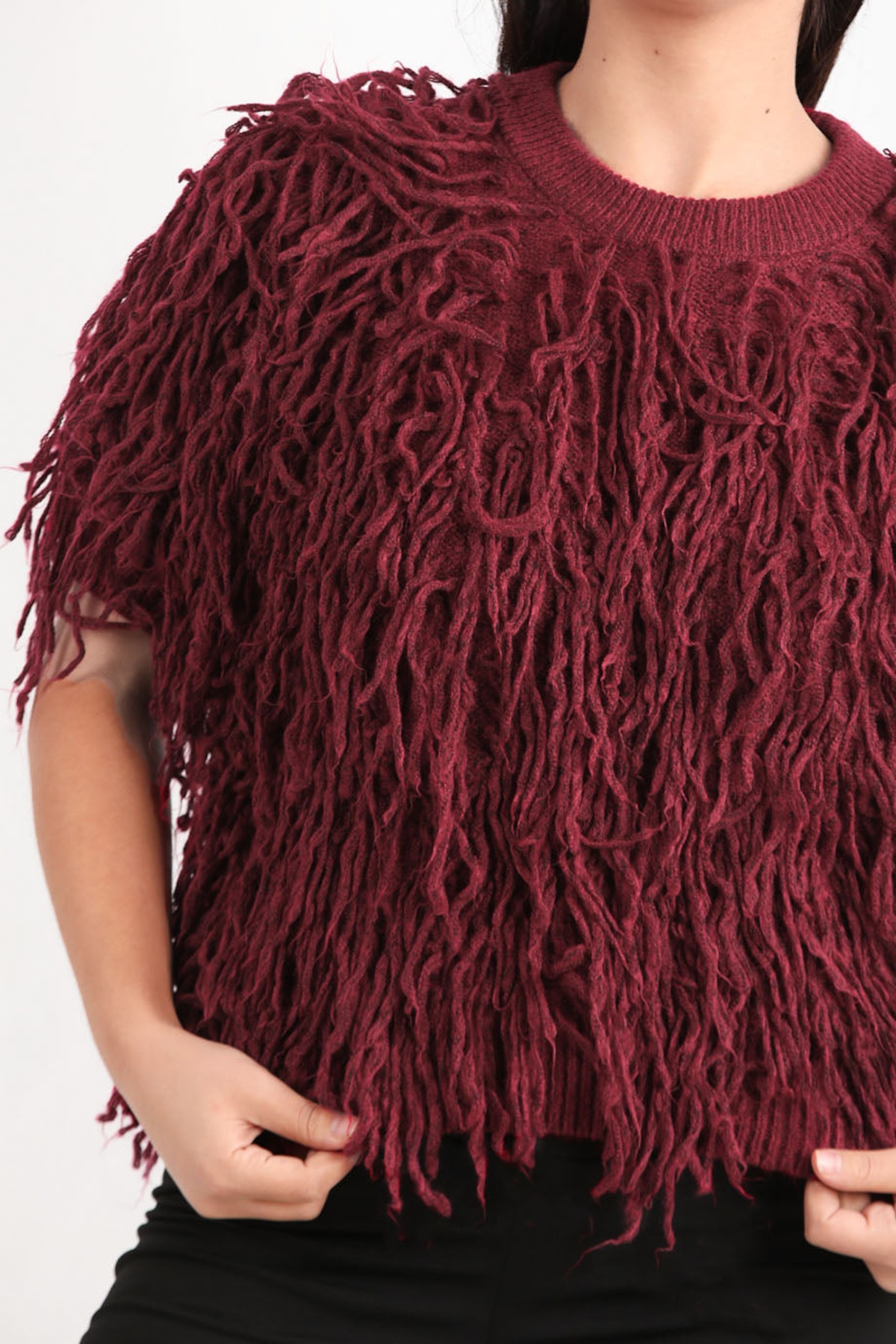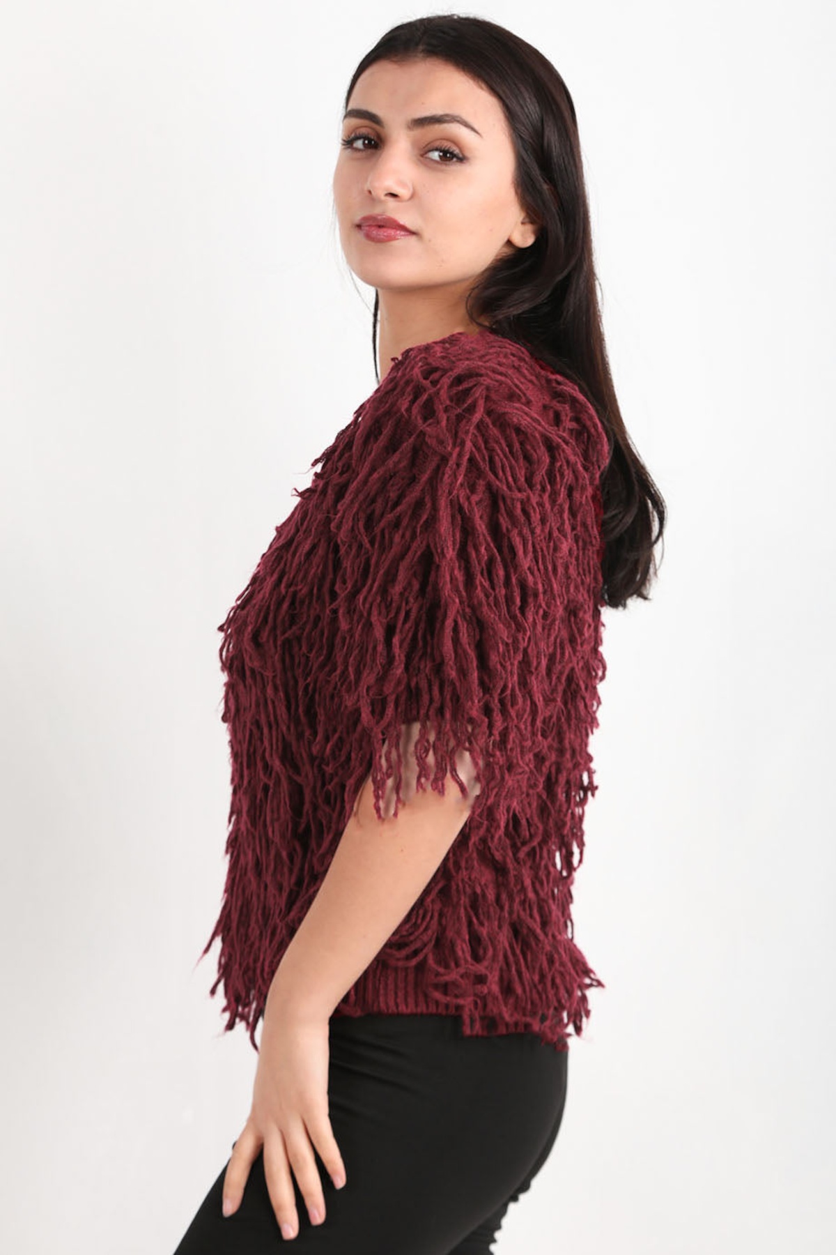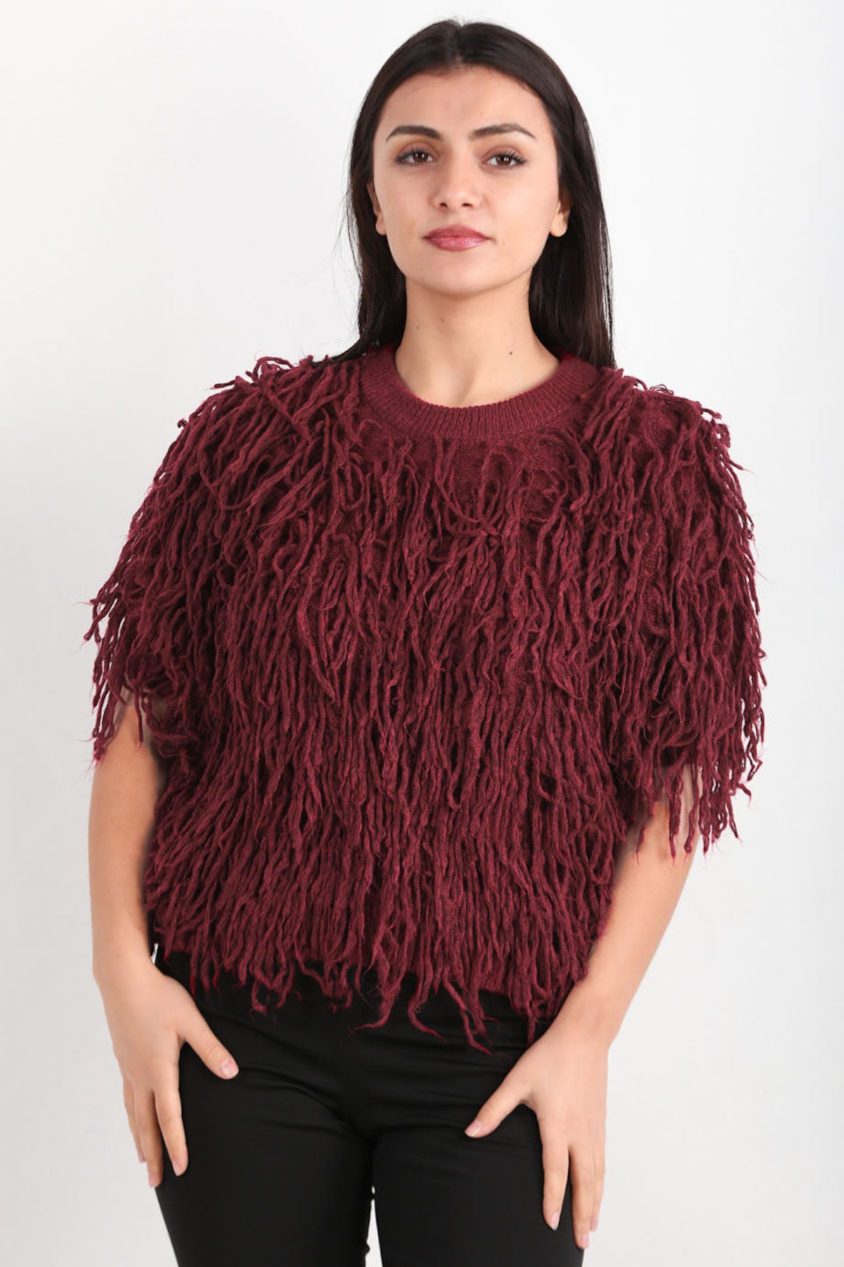 Kadın Püsküllü Triko Kazak Bordo