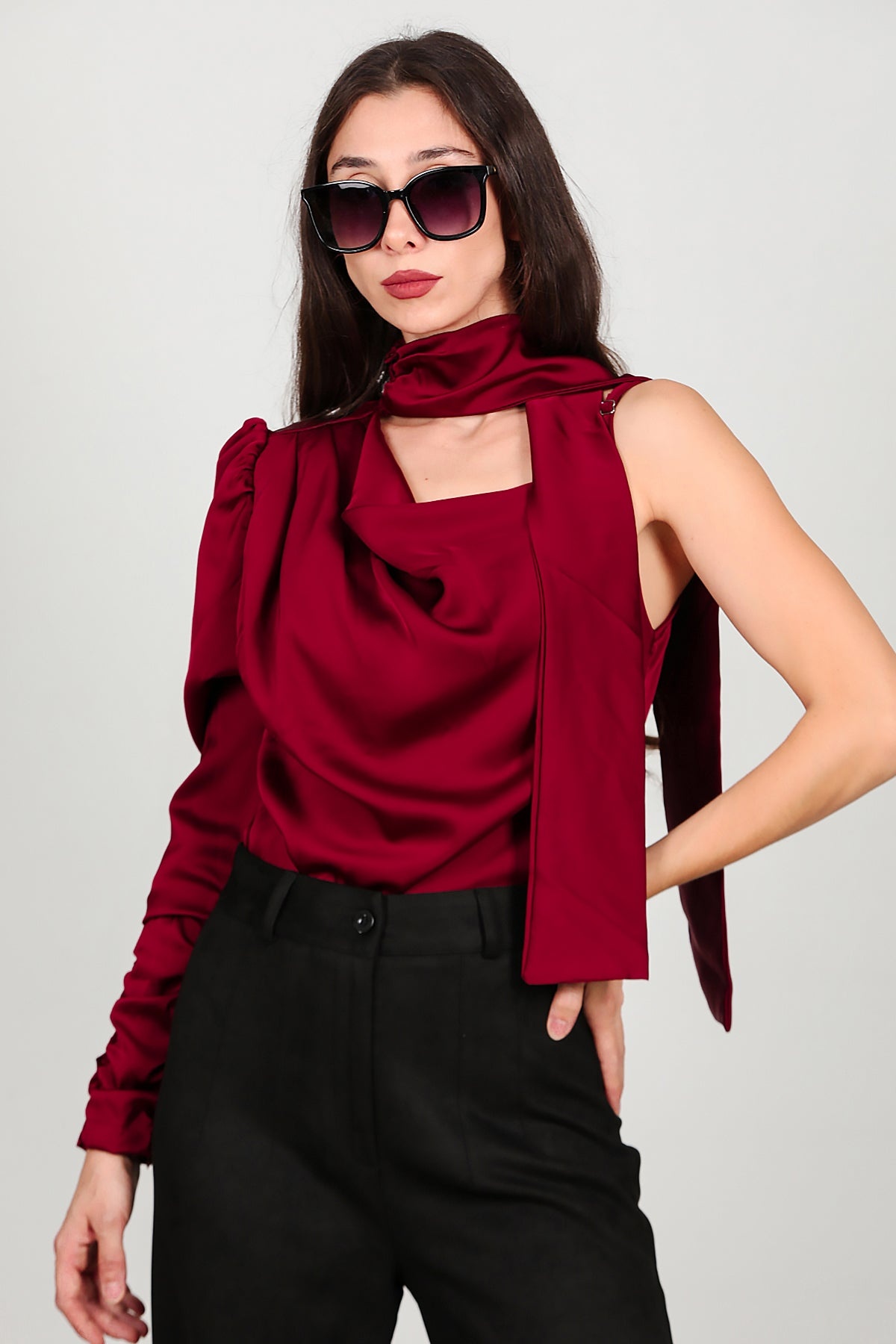 Kol:  Tek Kol Büzgülü ve Fermuarlı Diğer Kol İp Askılı